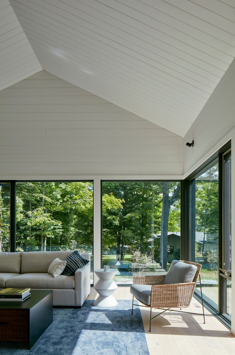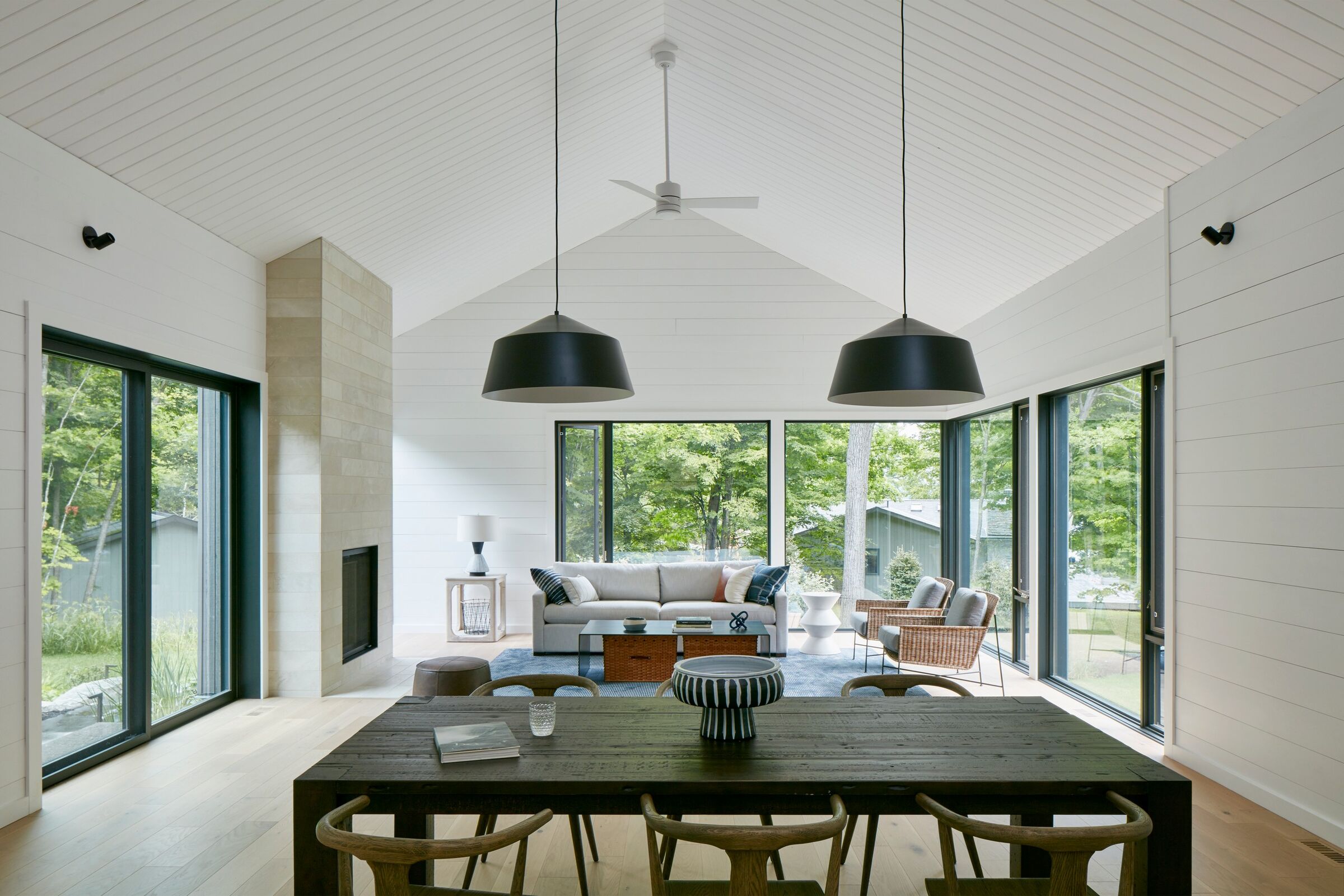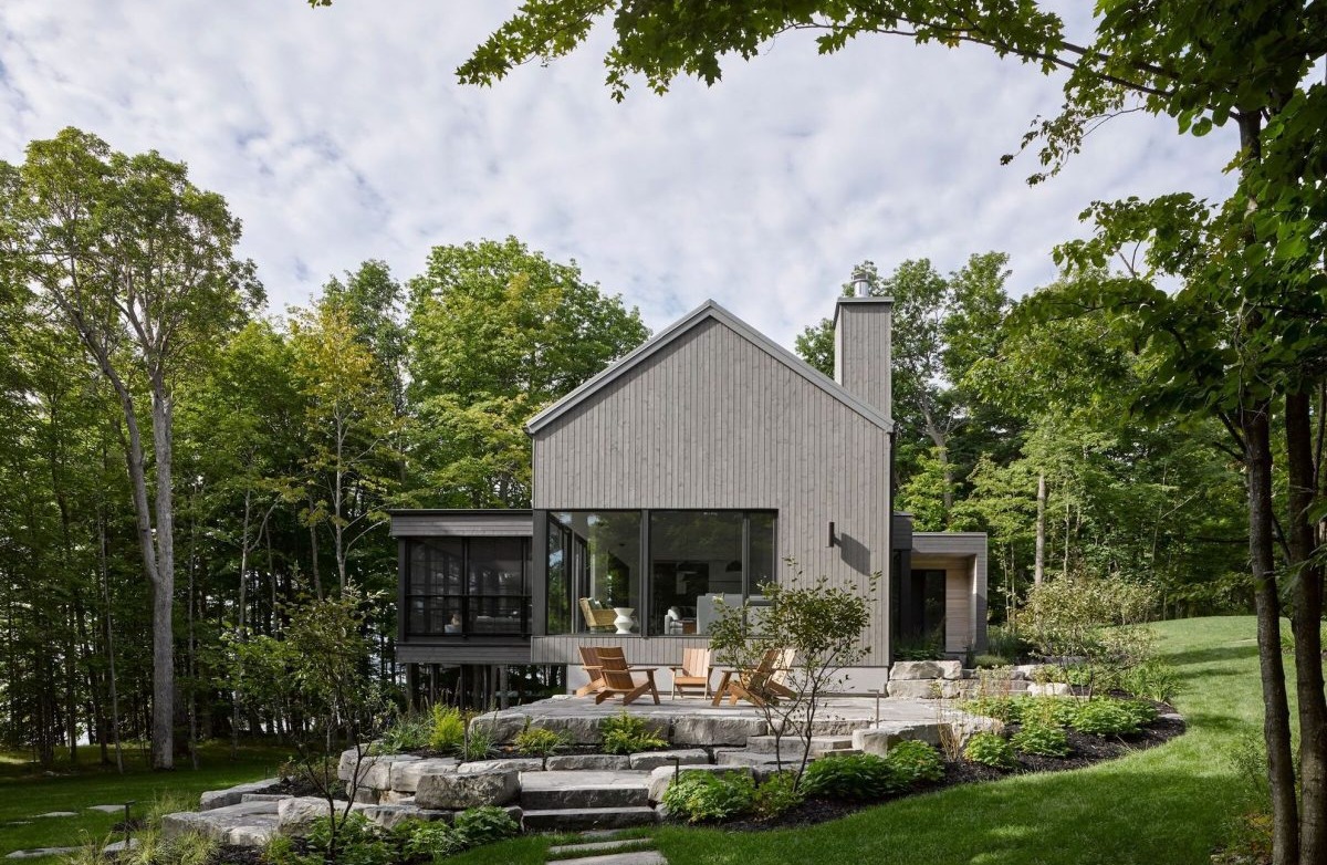 Big Rideau Lakehouse to współczesna interpretacja domu wiejskiego – nowoczesna stodoła nad jeziorem, która łączy funkcjonalność, estetykę, naturalne materiały i pełne otwarcie na krajobraz.