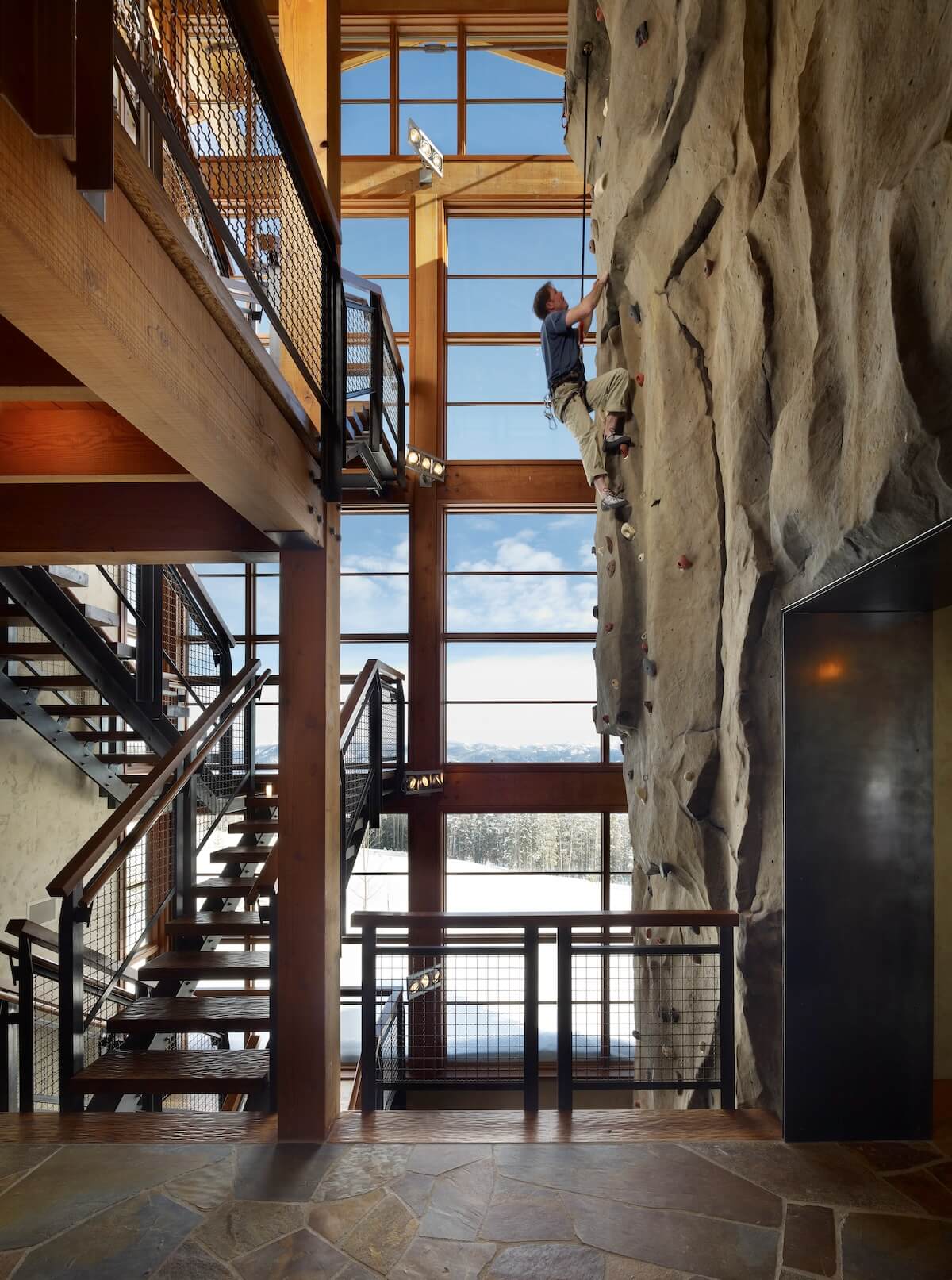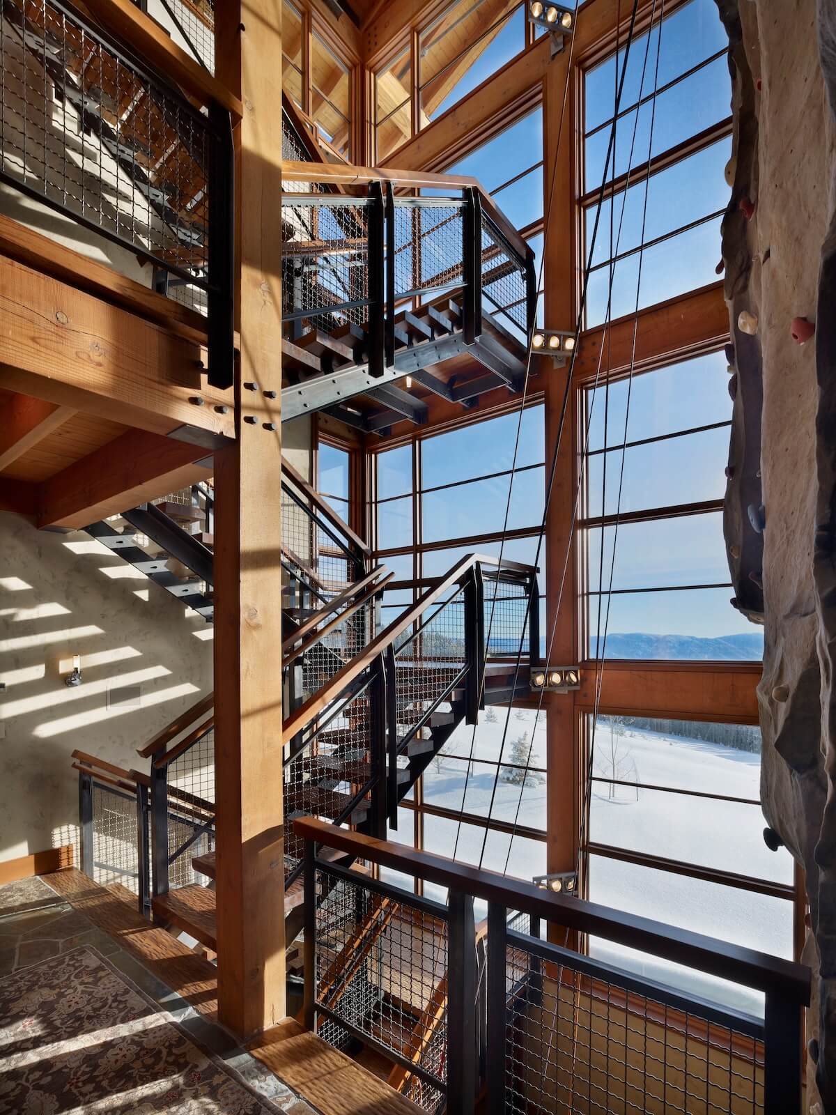 Ośrodek o powierzchni 1242 metrów kwadratowych łączy w sobie przestrzeń wewnętrzną i zewnętrzną dzięki ogromnym oknom z każdej strony. Energooszczędne ogrzewanie geotermalne zapewnia komfort w środku. Podział części mieszkalnej na osobne skrzydła i poziomy, w tym apartament główny połączony ogrzewanym i przeszklonym mostem, pozwala pomieścić nawet trzydziestu gości. Przyciągającym wzrok elementem centralnym są czteropiętrowe schody ze szklanymi ścianami i ścianką wspinaczkową zaprojektowaną tak, aby odzwierciedlała lokalne formacje geologiczne.