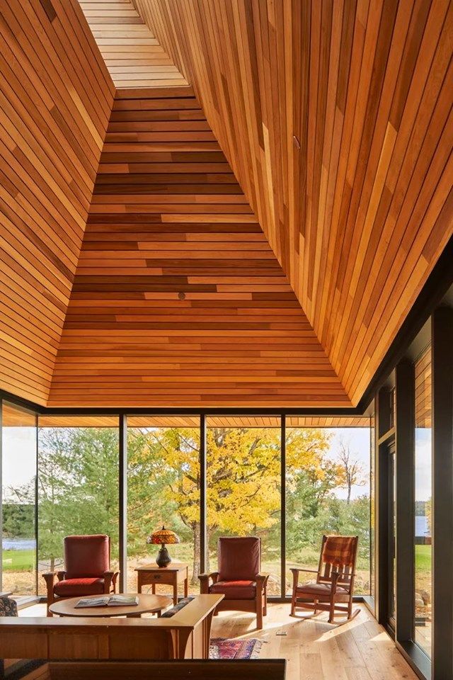 Kształty domków wynikają ze specyfikacji miejsca, ale architekci czerpali też inspirację z typowych form domów z regionu Muskoka. Charakteryzują je werandy, monolityczny kształt i dachy kryte gontem. Ważnym elementem projektów stały się wysokie sufity i drewniane podbicie, paleniska i przeszklone elementy werandy. Taka strategia projektowa miała podkreślić leśny charakter domów i wzmocnić ich więź z naturalnym otoczeniem.