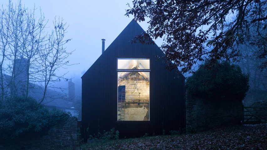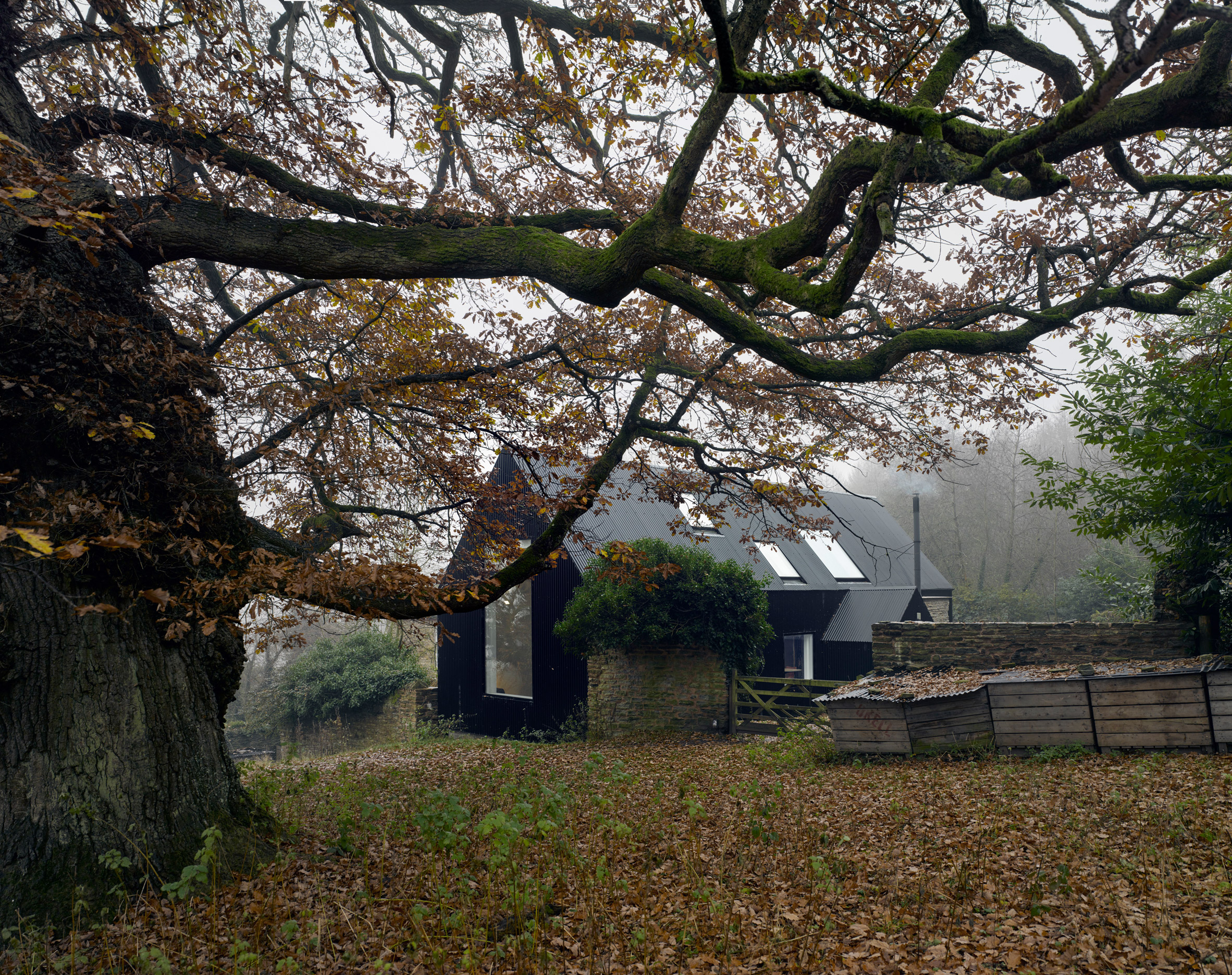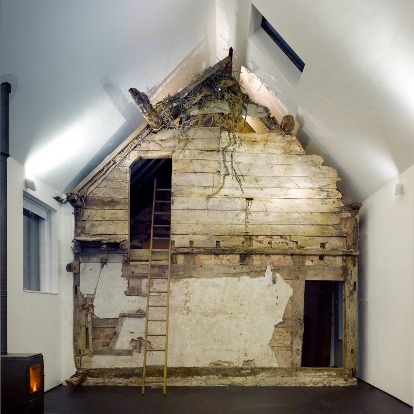 Projekt obejmował ochronę ruiny XVIII-wiecznej chaty i budowę nowoczesnego domu wraz z pracownią. Zamiast remontować 300-letni budynek, postanowiono go zachować w jego obecnym stanie, włączając w to zniszczone belki, martwe bluszcze, ptasie gniazda, pajęczyny i kurz.
