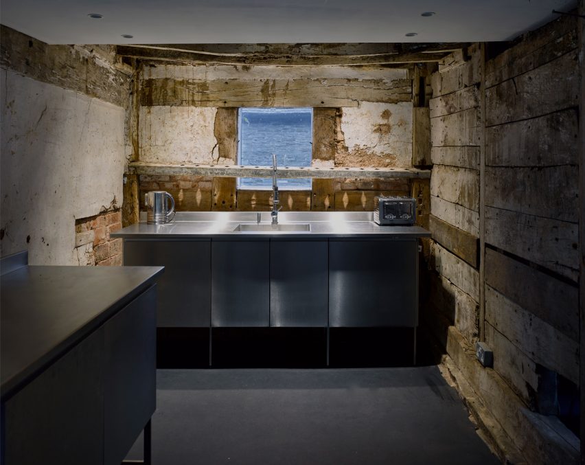 Chata została zabezpieczona przed warunkami atmosferycznymi dzięki nowoczesnej, wysokowydajnej osłonie zewnętrznej, tworzącej podwójne ściany, okna i dachy – stare i nowe. Przestrzeń została zaprojektowana jako funkcjonalna pracownia z możliwością przekształcenia w przyszłości w dom z trzema sypialniami i dwoma łazienkami.