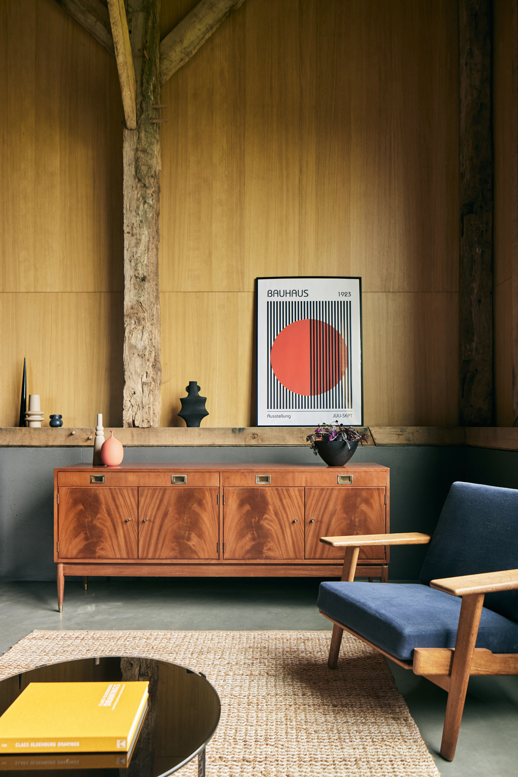 Podczas rekonstrukcji stodoły szczególną uwagę zwrócono na zachowanie oryginalnych dębowych ram, które stanowiły podstawowy element konstrukcji. W nowej wersji stodoły, połączono oryginalne drewno z nowymi elementami, tworząc konstrukcję, która oddziela nowe od starego, jednocześnie zachowując przejrzystość renowacji. Zewnętrzne deski drewniane zostały docierane, aby nawiązywać do tradycyjnego wykończenia stodoły, a dach pokryto użytkową blachą falistą. Nowoczesne akcenty, takie jak duże przeszklenia oraz minimalistyczne detale, wprowadziły subtelne zmiany w klasycznej sylwetce budynku, nadając mu nowoczesnego charakteru.