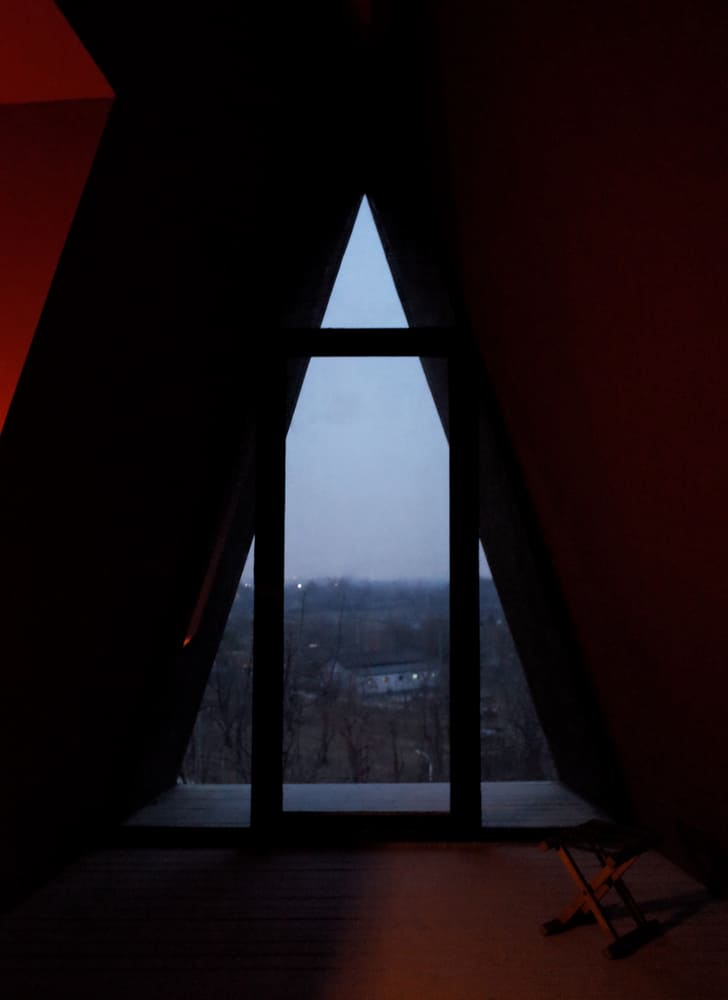 Projekt wyróżnia się nietypową geometrią – z jednej strony nie widać, co kryje druga. W dachu umieszczono duże boczne okno skierowane na wschód-południe, a od południowego zachodu budynek otwiera się na krajobraz przez trójkątne przeszklenie, wpuszczając do wnętrza obfite naturalne światło. Cały dom został uniesiony nad ziemią, co pozwala zachować naturalną roślinność pod podłogą i minimalizuje ingerencję w ekosystem. Black House to przykład nowoczesnego, ekologicznego mikrodomu, który harmonijnie wpisuje się w otoczenie.