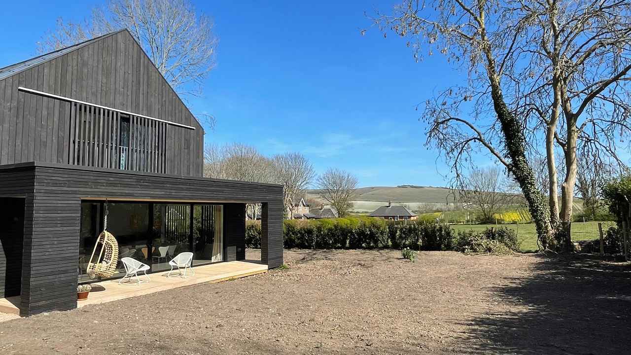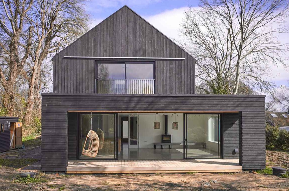 Black Timber House, położony w Rodmell w sercu Parku Narodowego South Downs, to współczesny dom ekologiczny, który łączy tradycję angielskiej wsi z nowoczesną architekturą. Projekt autorstwa HAPA Architects opiera się na dwóch połączonych bryłach, które tworzą interesujące zadaszenia i dynamiczne przestrzenie dachowe. Jasna, drewniana weranda kontrastuje z resztą fasady wykończonej czarnymi deskami układanymi pionowo i poziomo, co nawiązuje do lokalnych stodół, jednocześnie budując bardziej współczesny charakter zbliżony do estetyki, jaką reprezentuje nowoczesna stodoła.