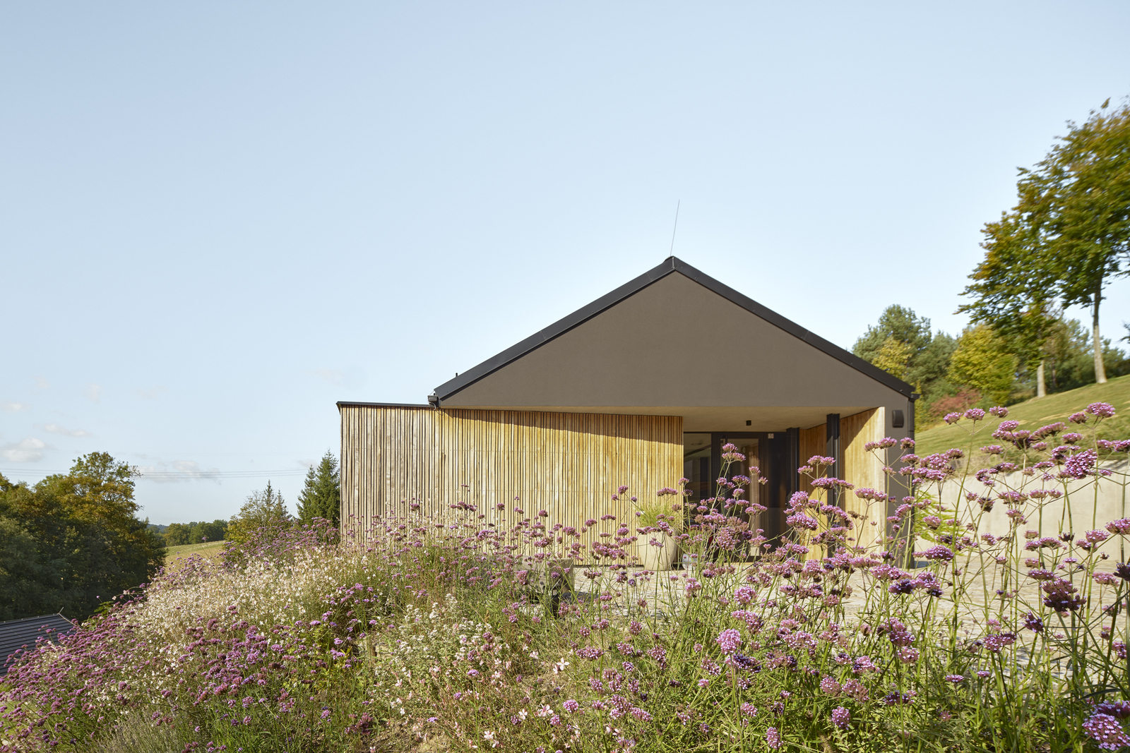 Ten dom jednorodzinny zaprojektowany przez ATELIER KUNC architects powstał w niezwykle malowniczym krajobrazie Czeskiego Raju. Kluczowym założeniem projektu było maksymalne wykorzystanie potencjału działki – południowo nachylonego terenu z szerokim widokiem na dolinę. Architektura od początku miała pozostawać w ścisłym dialogu z otoczeniem, nie dominując go, lecz naturalnie się w nie wpisując.