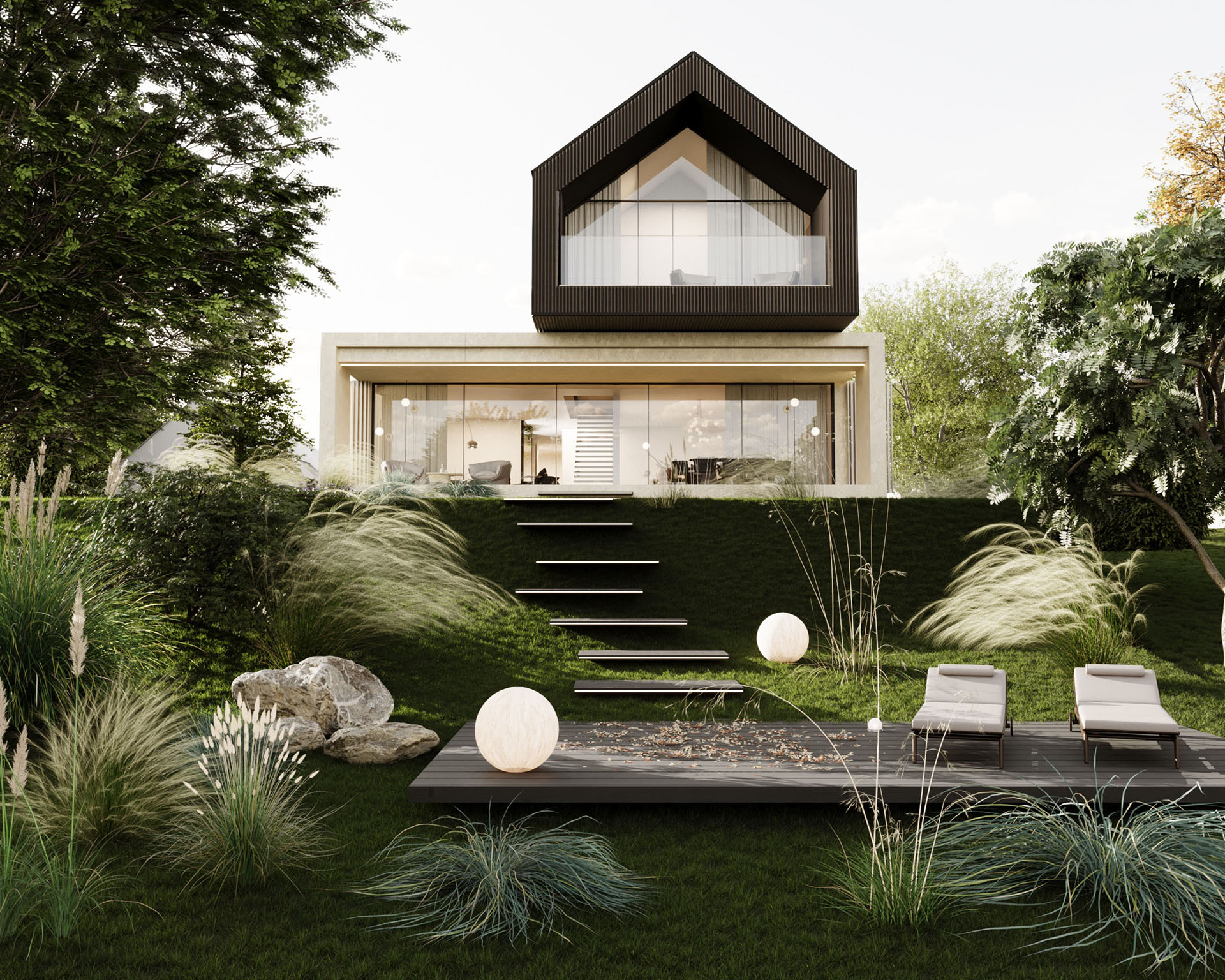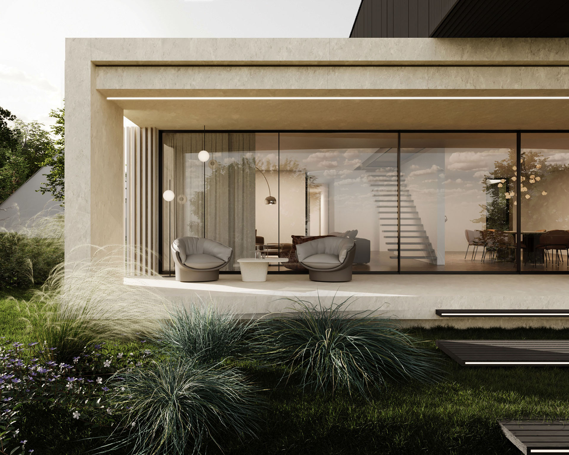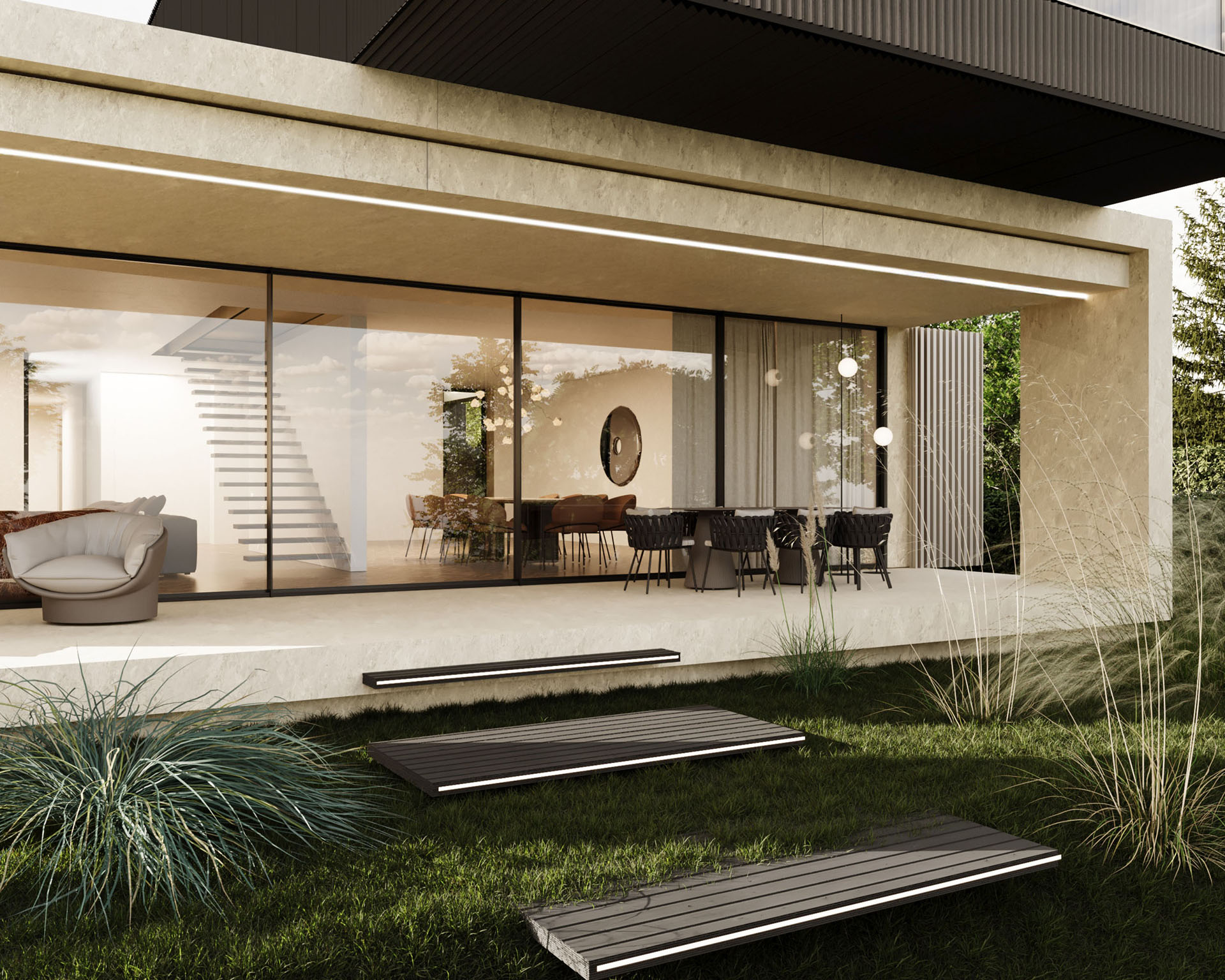 Blackridge House powstał z myślą o użytkownikach, którzy cenią minimalistyczną estetykę, naturalne, szlachetne materiały oraz poczucie harmonii z otoczeniem. Duże przeszklenia i przemyślany układ funkcjonalny zapewniają wygodę na co dzień, a wyraźny podział na strefę dzienną i prywatną odpowiada współczesnym potrzebom domowników. Projekt odzwierciedla charakterystyczne dla MOKAA podejście do tworzenia „domów szytych na miarę” — miejsc, w których komfort, estetyka i indywidualne potrzeby inwestorów tworzą spójną, dopracowaną całość.