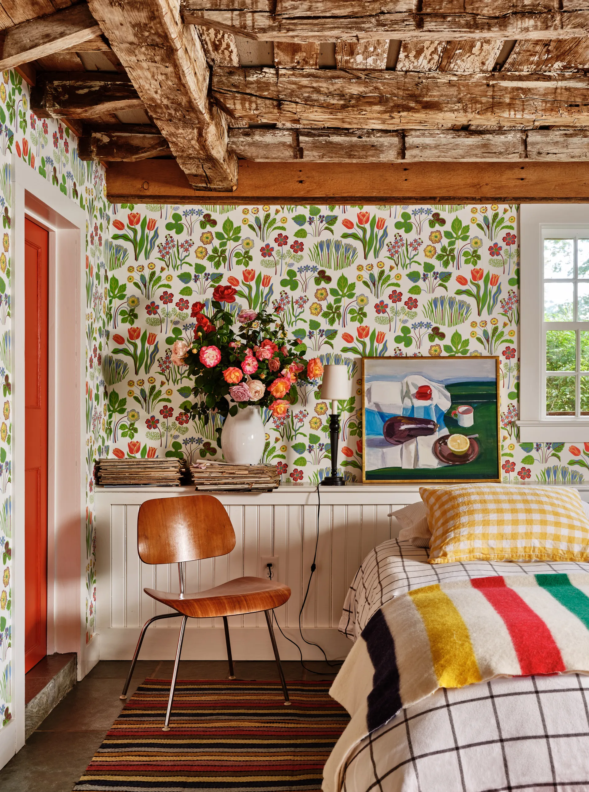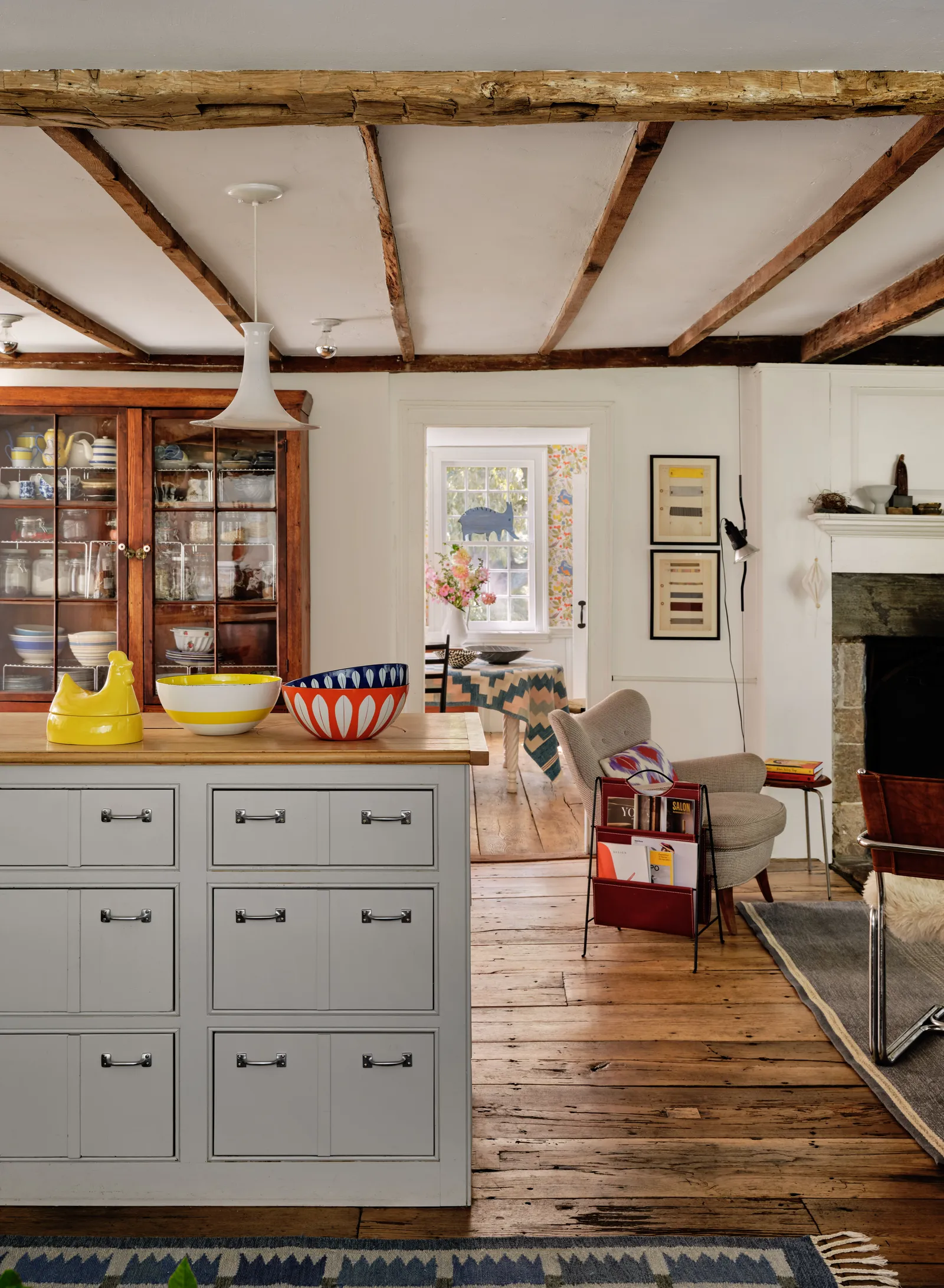 Został kupiony jako dom wakacyjny, aby zapewnić sobie wytchnienie od ich bazy w Nowym Jorku, ale po tym, jak para mieszkała tam przez dwa lata w czasie pandemii, byli tak zauroczeni, że postanowili uczynić go swoim głównym domem. Chociaż wprowadzono drobne zmiany konstrukcyjne, takie jak wyburzenie ściany w tym, co wcześniej było sypialnią na parterze, aby stworzyć „letni” salon, wymagana praca miała głównie charakter kosmetyczny. „Naszym mottem projektowym było nic nie dodawać, a zamiast tego odjąć lub edytować” — mówi Nate. W tym celu uznano, że garderoba na parterze jest zbędna, biorąc pod uwagę pobliską łazienkę, a jej usunięcie zapewniło więcej światła w przestrzeni życiowej.