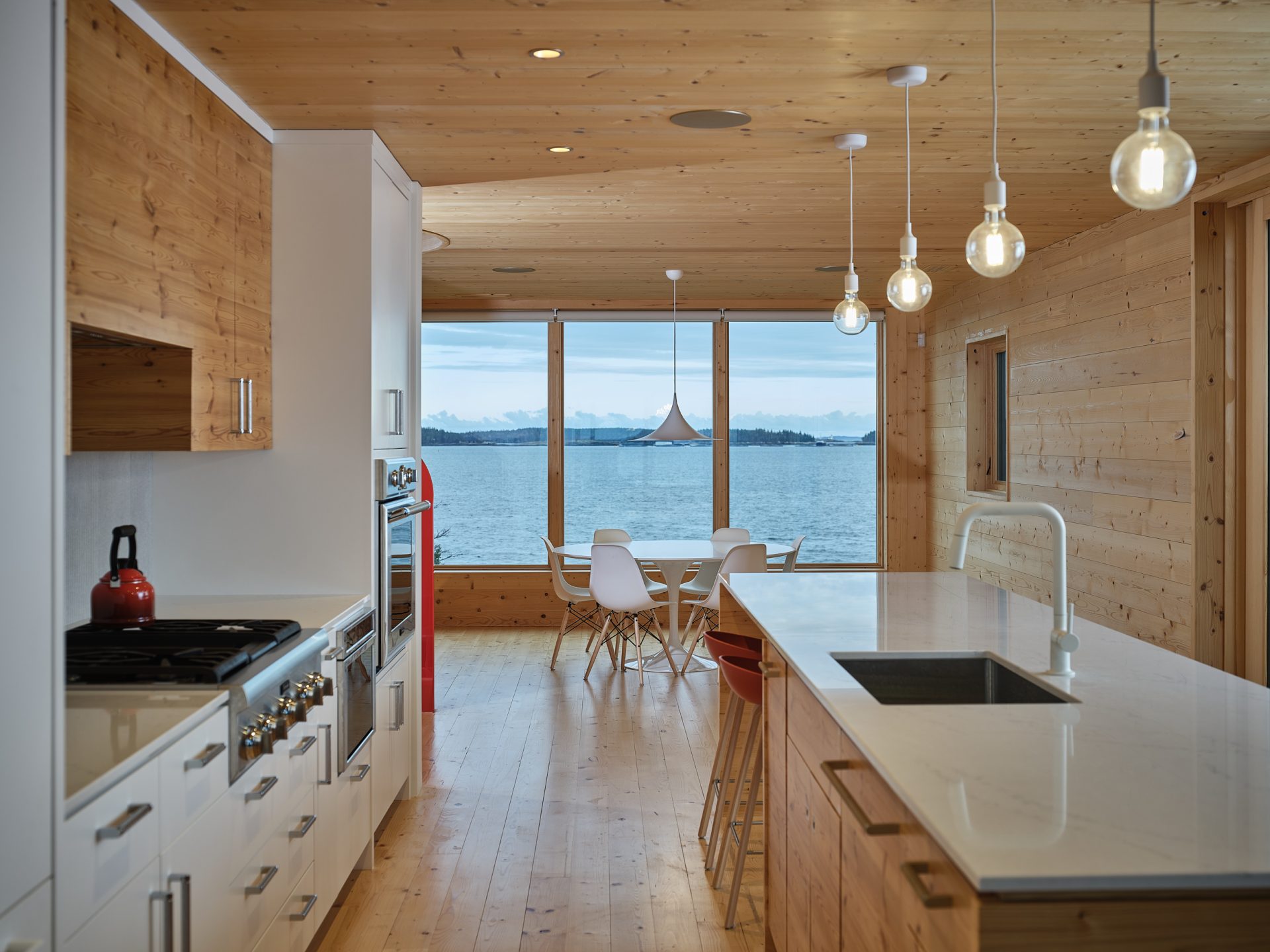 Duże przeszklenia ukierunkowano w stronę wody, co wpuszcza naturalne światło i niezakłócony widok na okolice. Dzięki temu Boat Shed harmonijnie łączy się z otoczeniem, a użytkownicy mogą poczuć ciągłość między wnętrzem a zewnętrzem – niezależnie czy pracują, relaksują się, czy uruchamiają łódź.