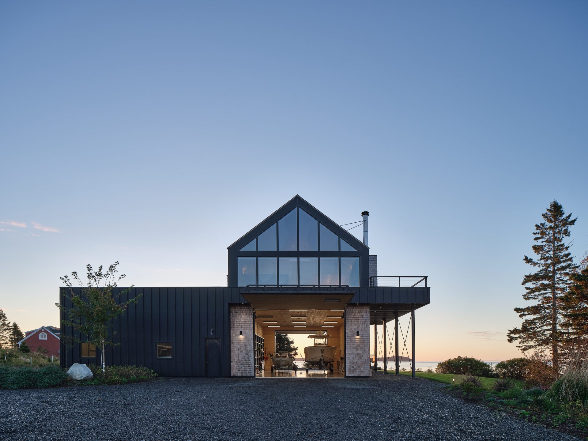 Na wybrzeżu Nowego Brunszwiku, inspirowani lokalnym krajobrazem i swoim wcześniejszym projektem Sheds of Charlotte County, architekci z Acre stworzyli powściągliwą i mocną formę – Boat Shed. Na parterze mieści się przestronny garaż na łodzie i auta, a góra została zaprojektowana jako funkcjonalne studio lub pracownia, otwarta na panoramiczny widok.