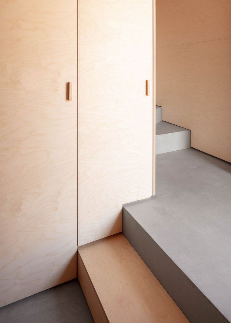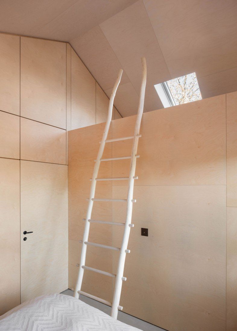 Nowy budynek ma dwa poziomy połączone złożonym systemem schodów i przejść, które tworzą sekwencję widoków i przestrzeni zachęcających do codziennego odkrywania domu na nowo. Wnętrza wykończono deskami brzozowymi, nadając im ciepły, naturalny i przytulny charakter, mimo niewielkiego metrażu. Architektura nie jest tu jedynie tłem, lecz aktywnym uczestnikiem codziennego życia, reagującym na ruch, światło i obecność mieszkańców. Projekt BUREAU pokazuje, że renowacja małego domu może stać się narzędziem do tworzenia głębokich, wielowarstwowych doświadczeń przestrzennych przy zachowaniu prostoty formy.