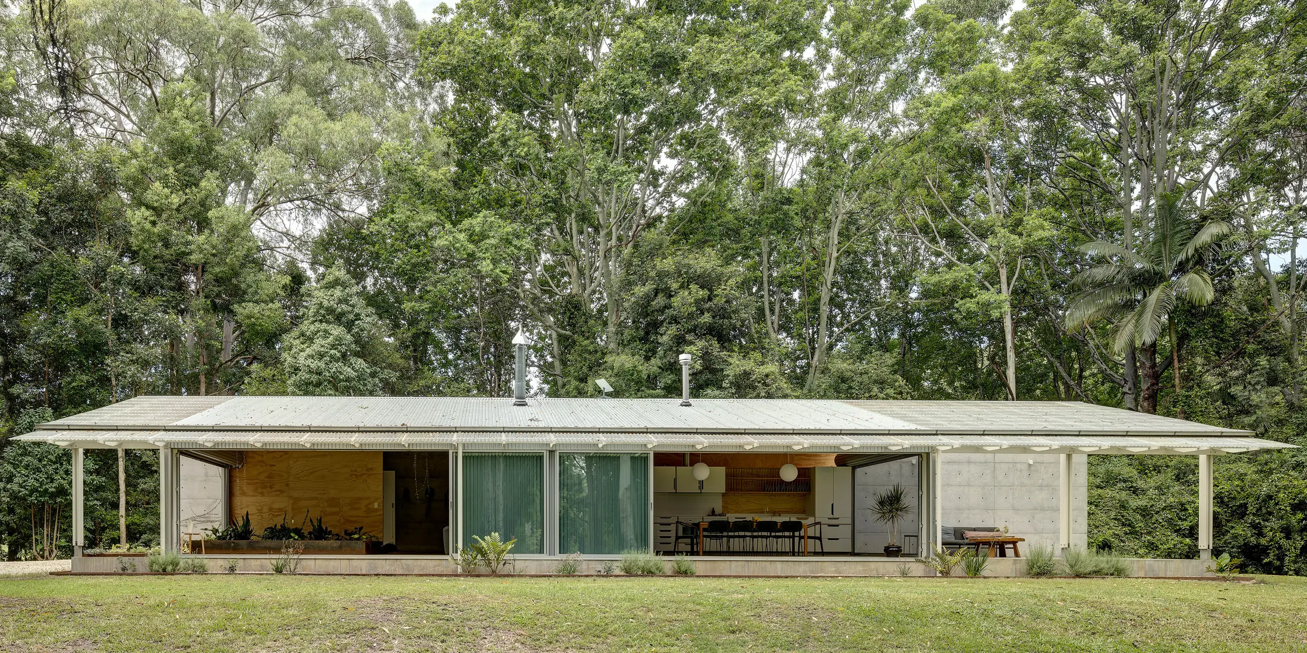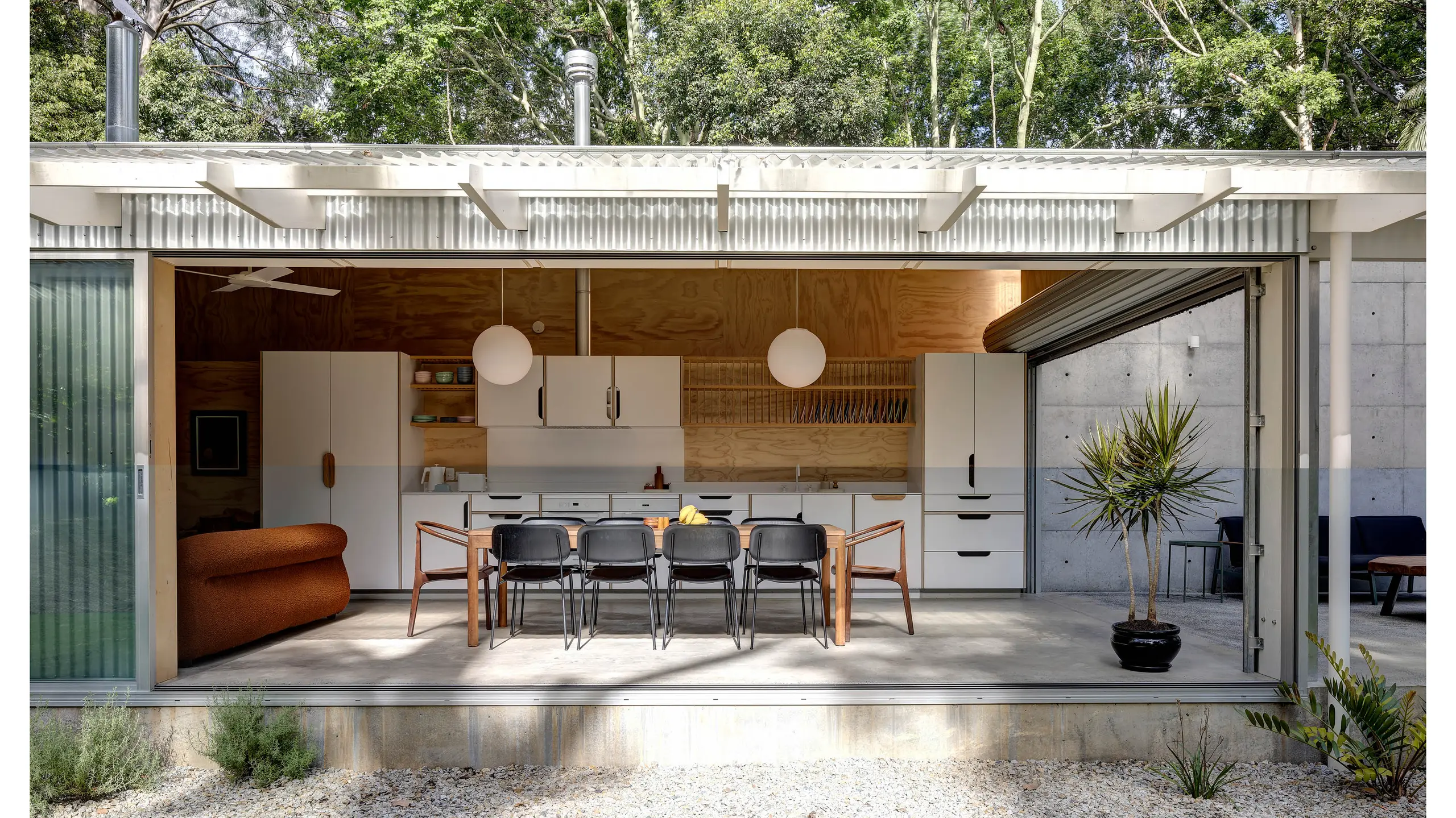 Architektura Bonville Bush Retreat czerpie inspirację z amerykańskich Case Study Houses – eksperymentalnych projektów powstających w latach 1945–1966, które badały możliwości tworzenia prostych, przystępnych cenowo i nowoczesnych domów. Jednocześnie twórcy odwołali się do tradycyjnej architektury japońskiej, znanej z harmonii z naturą i szczerości materiału, łącząc ją z estetyką australijskich stodół i warsztatów.