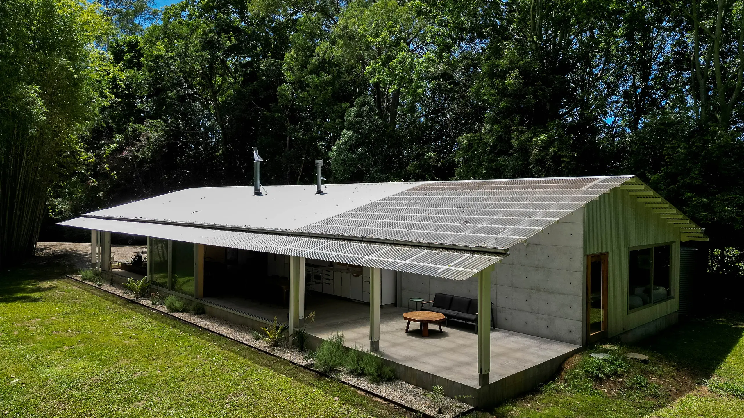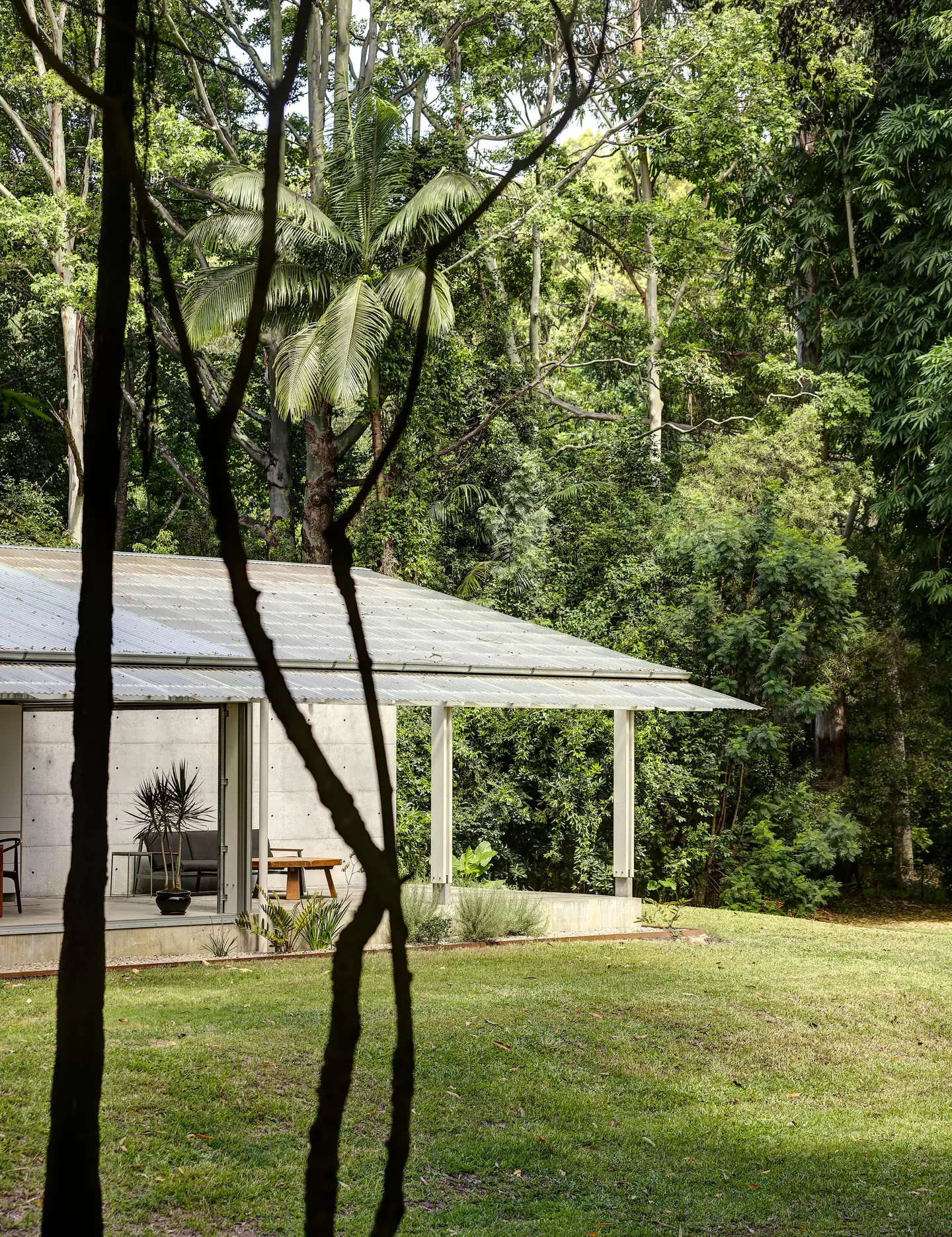 Działka o powierzchni pięciu akrów była niegdyś częścią tętniącej życiem szkółki drzew. Kiedy teren podzielono na mniejsze parcele, budowniczy i dyrektor firmy HAUSES, Adam Haughey, dostrzegł w nim idealne miejsce na wakacyjny dom. „Zachwyciło mnie połączenie bujnej zieleni i bliskości oceanu – to idealna przestrzeń, by odetchnąć od miasta”, wspomina.