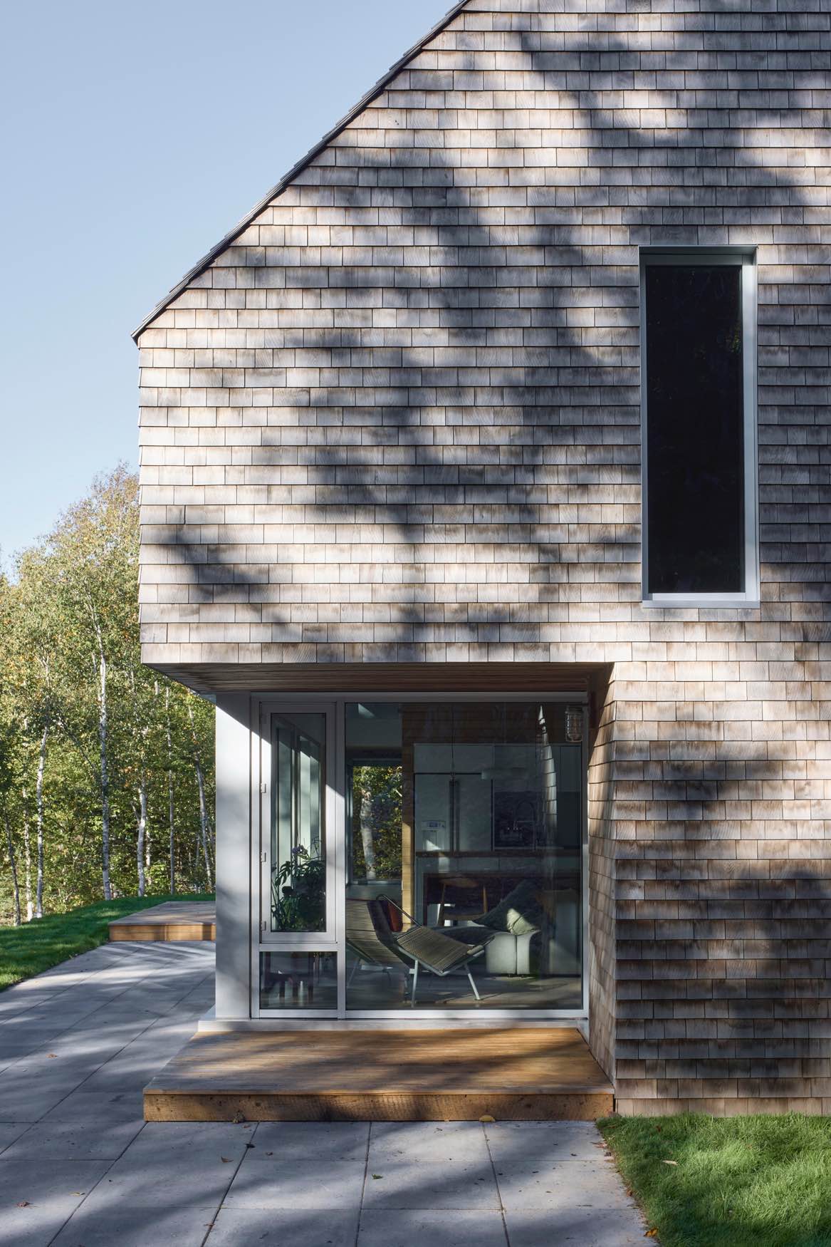Elewacje i wnętrza wykończono cedrowym szalunkiem, który z czasem nabiera srebrzystej patyny, harmonizując z otoczeniem. Przeszklone elewacje i liczne otwarcia wizualne zapewniają nieustanny kontakt z krajobrazem – jezioro jest obecne w każdym kadrze: przez okna salonu, z tarasu czy z poziomu wanny z widokiem na wodę.