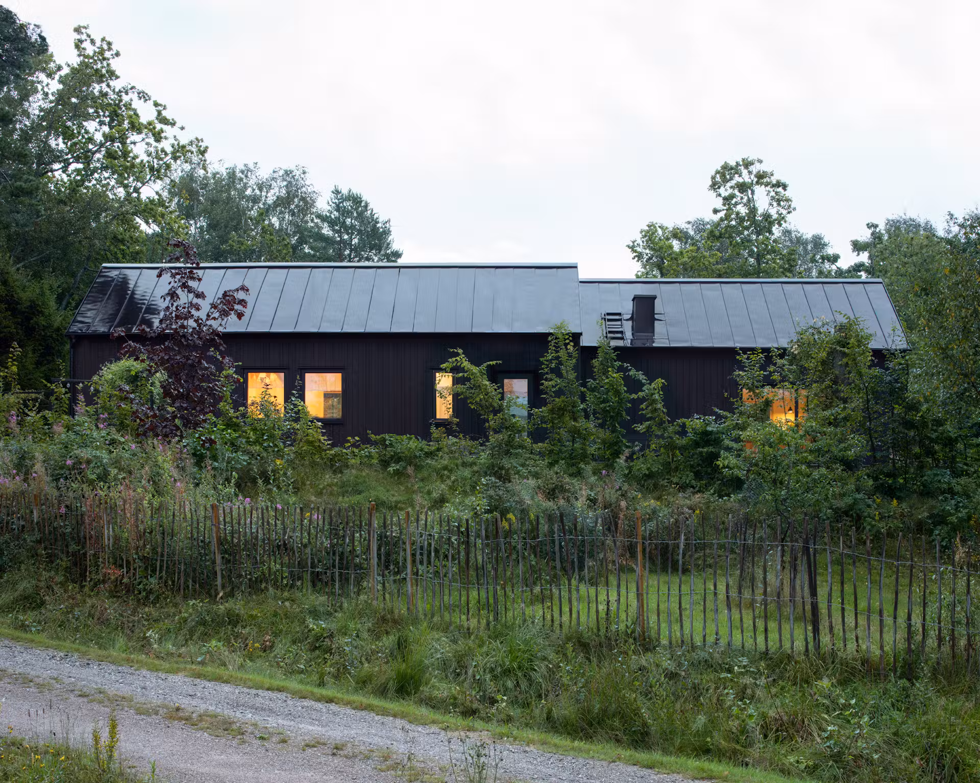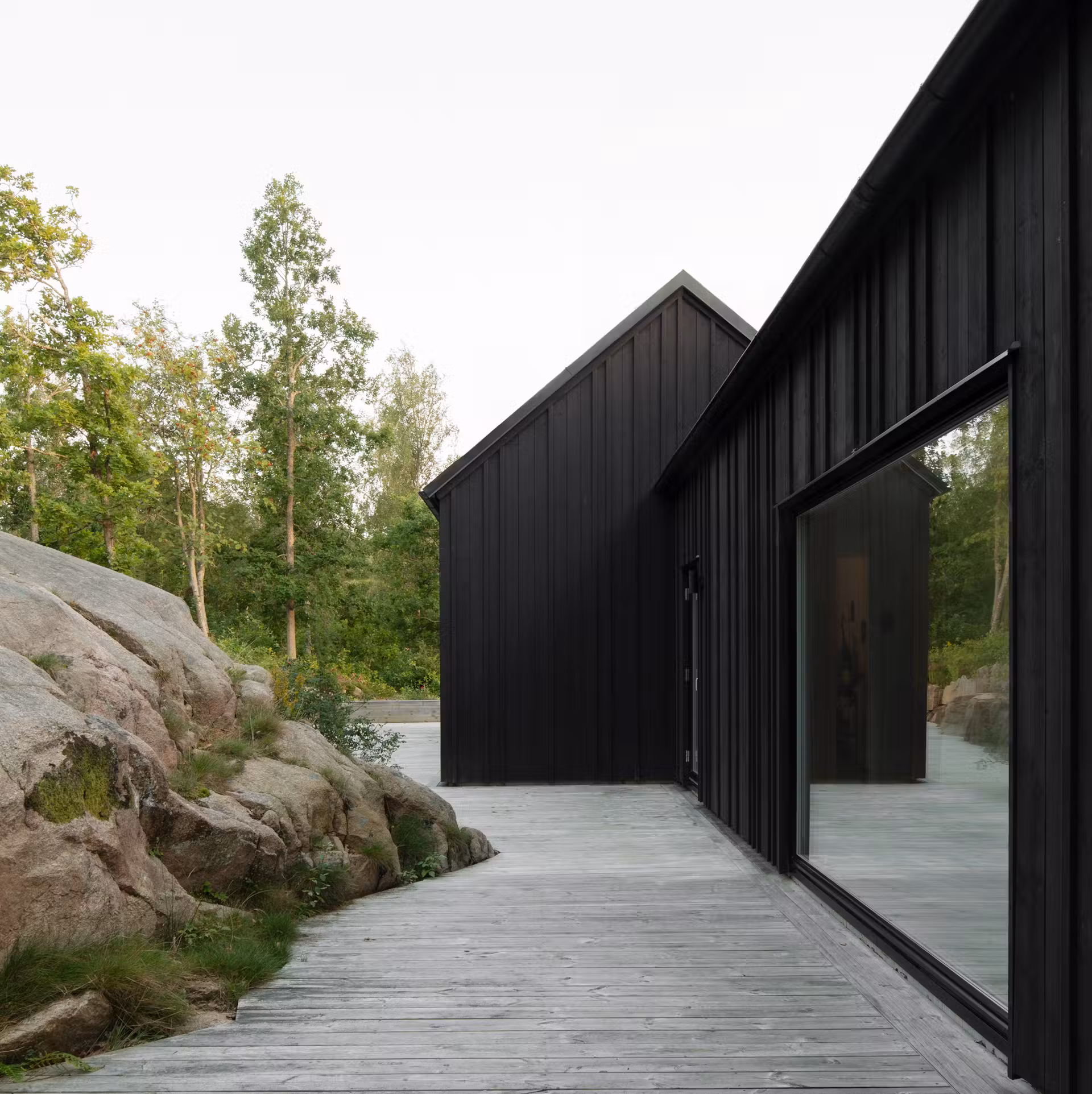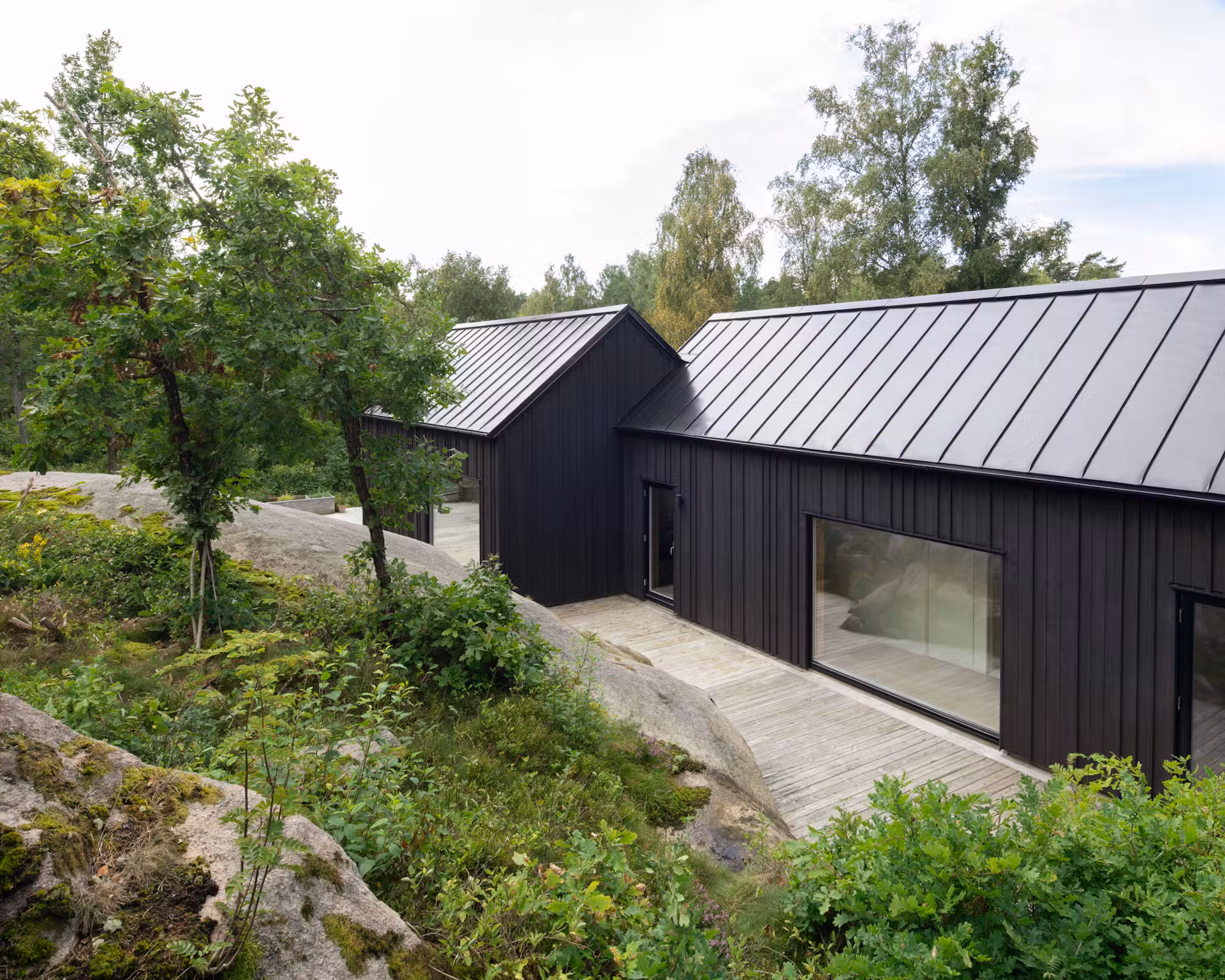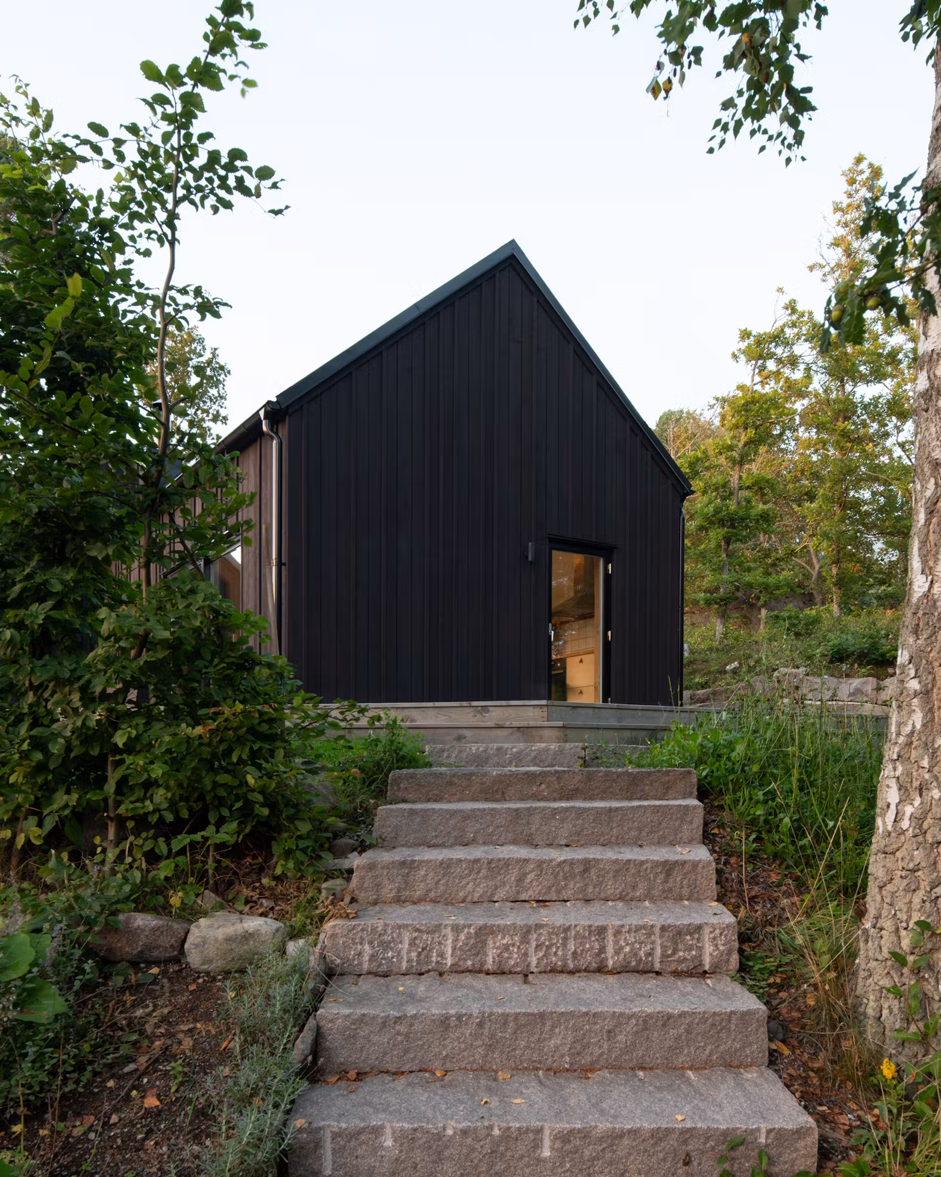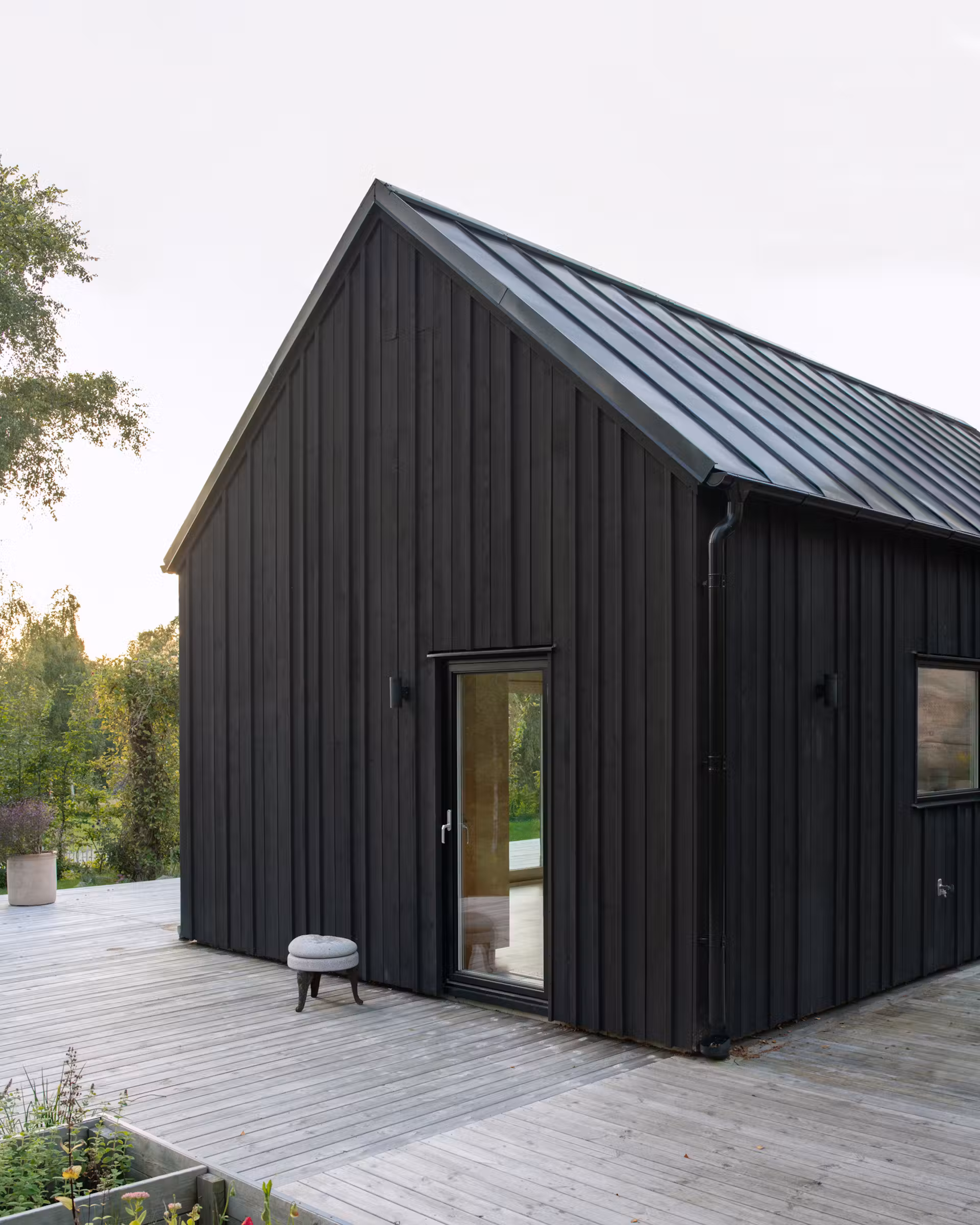 "Chciałam mieć miejsce w swoim kraju, gdzie mogłabym spędzać czas z dziećmi," mówi Helena. "Przeżyliśmy cudowne chwile w naszym pierwszym domku, ale nie byliśmy całkowicie zadowoleni z lokalizacji przy ruchliwej drodze ani z faktu, że słońce znikało za lasem już wczesnym wieczorem." Dlatego zlecili Ringnér zaprojektowanie nowego domu letniego—na działce położonej zaledwie kilka kilometrów dalej—który lepiej odpowiadałby ich stylowi życia. Główne założenia dla projektu były proste: dom miał harmonijnie wkomponować się w naturalny krajobraz, spełniać rygorystyczne szwedzkie przepisy budowlane dla domów wakacyjnych oraz zapewniać przestrzeń dla licznych spotkań rodzinnych i towarzyskich.
