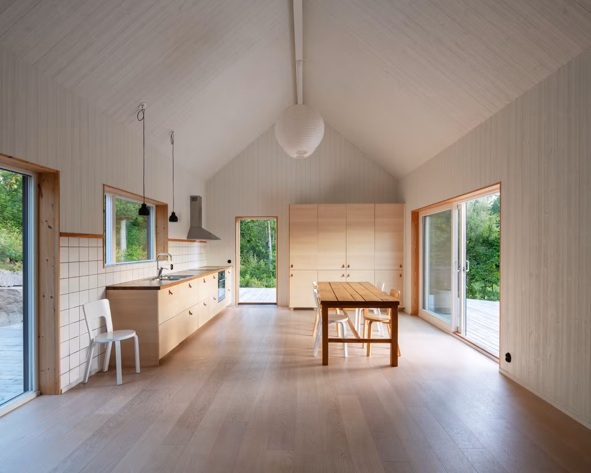 Praca z przyjaciółmi bywa ryzykowna, ale dla Heleny i Susanny była to idealna współpraca. "Możliwość współpracy z Susanną jako architektem była przywilejem," mówi Helena. "Znaliśmy jej styl, a fakt, że jest naszą przyjaciółką, pozwolił nam brać większy udział w procesie projektowym i angażować się bardziej. Spędzamy większość wakacji i wiele weekendów przez cały rok w domku—chodzimy na spacery z psem, pływamy łodzią, kąpiemy się, zbieramy grzyby i po prostu relaksujemy się."