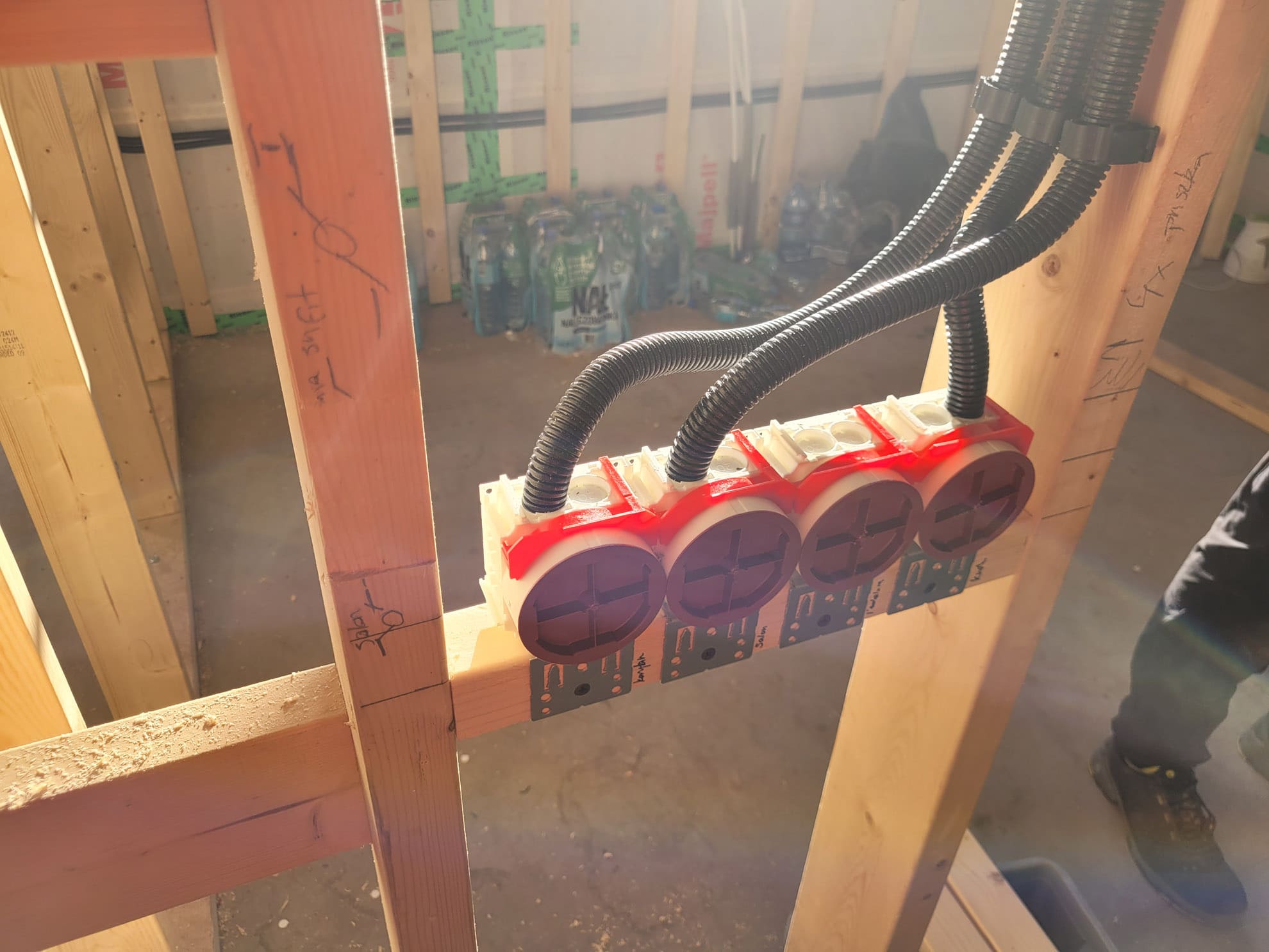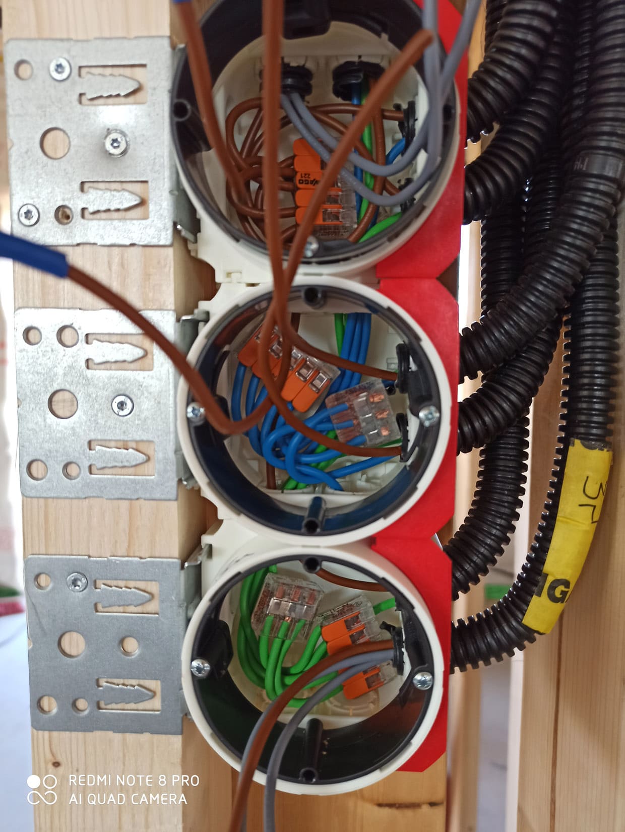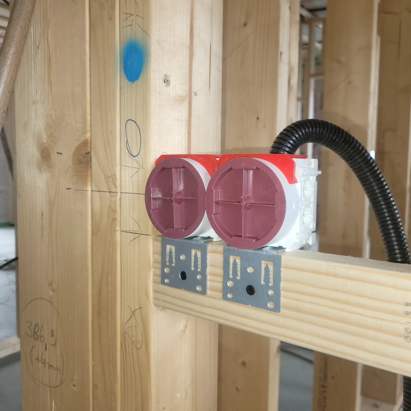 Odnośnie instalacji elektrycznej: stosujemy przewody typu „linka” w peszlach oraz skandynawskie puszki instalacyjne. Są one zamocowane bezpośrednio do elementów konstrukcyjnych budynku, co uniemożliwia ich wyrwanie w przeciwieństwie do typowych puszek dedykowanych do suchej zabudowy. Ponadto, peszle zakleszczają się w zapadkach, co również uniemożliwia wyrwanie ich z puszki.