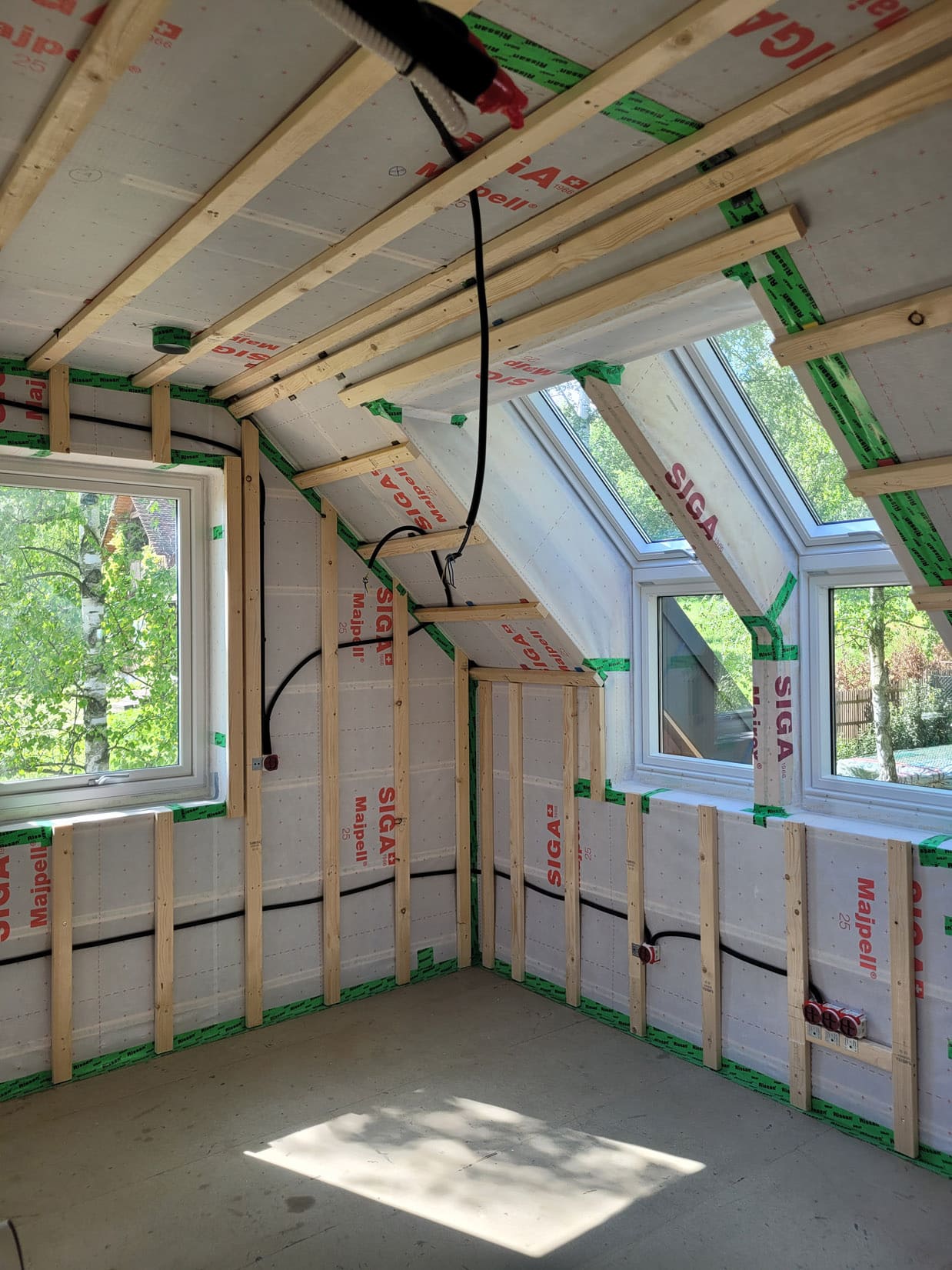 Na co muszą uważać? Przede wszystkim oczywiście na szczelność powietrzną. Tak więc trasy przebiegu elementów instalacyjnych należy dobrze przemyśleć, zminimalizować ilość kolizji z paroizolacją, powstałe kolizje starannie uszczelnić dedykowaną taśmą, i nie osłabić kluczowych elementów konstrukcyjnych budynku.