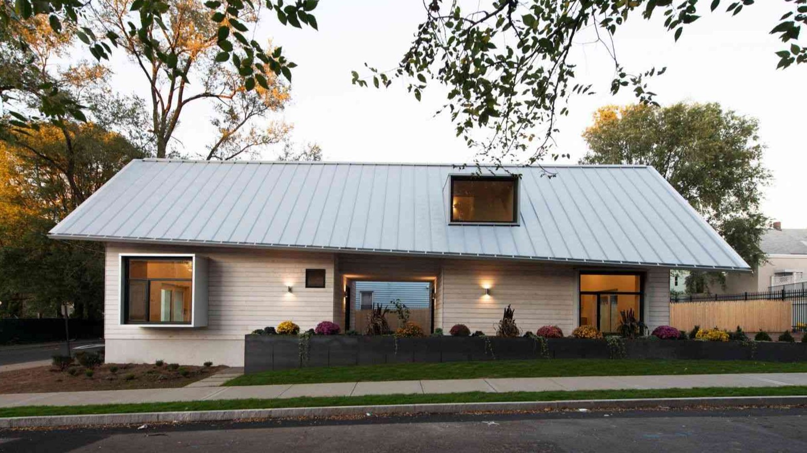 Absolwenci Uniwersytetu Yale ukończyli prefabrykowaną nowoczesną stodołę w New Haven, która mieści dwa mieszkania przeznaczone dla osób borykających się z problemem bezdomności. Dom o powierzchni 92 m² stanął na wąskiej działce miejskiej, został obity barwionym na biało drewnem cedrowym i przykryty stromym, dwuspadowym dachem. Wystające okna symbolizują równowagę między otwartością a prywatnością, a ich głębokość umożliwia wygodne siedzenie. Budynek mieści studio na parterze oraz dwie sypialnie zajmujące zarówno parter, jak i piętro. Wnętrza są jasne, mają wysokie sufity, betonowe i drewniane podłogi oraz wbudowane szafki z drewna, co zapewnia komfort i funkcjonalność mieszkań.