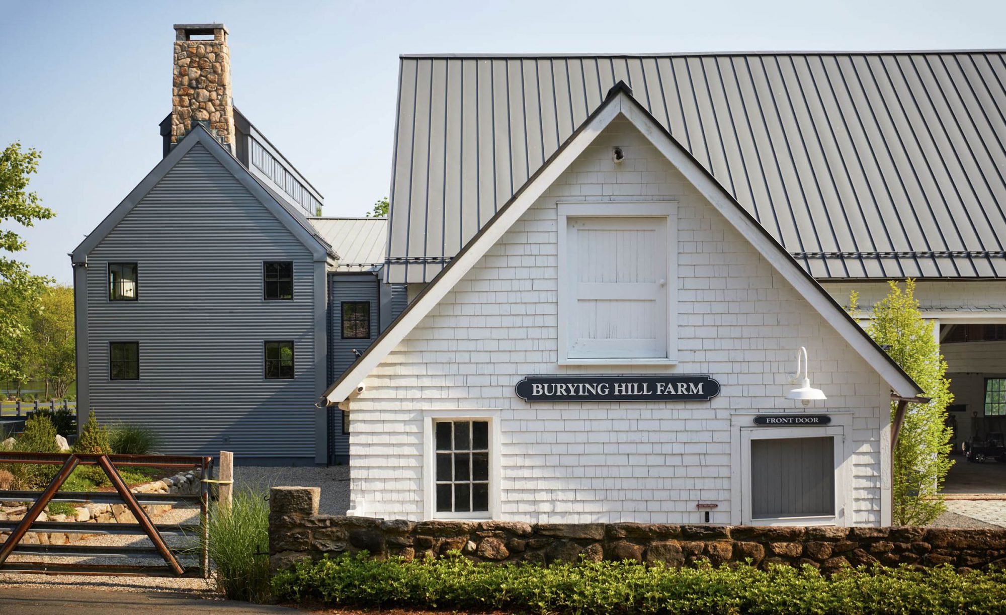 Burying Hall Farm w Greenwich, Connecticut to niezwykły projekt autorstwa Brooks & Falotico, który łączy zabytkową XVIII-wieczną architekturę z współczesnym stylem kalifornijskich winnic. Wszystko zaczęło się od przypadkowego odkrycia na Pintereście – przyszli właściciele, Tyler Mitchell i jego żona, zakochali się w jednym z projektów studia i szybko zaprosili architektów do współpracy.