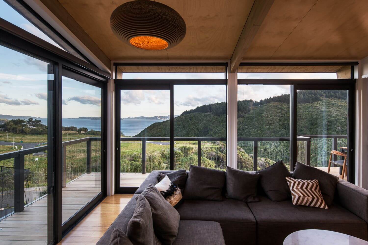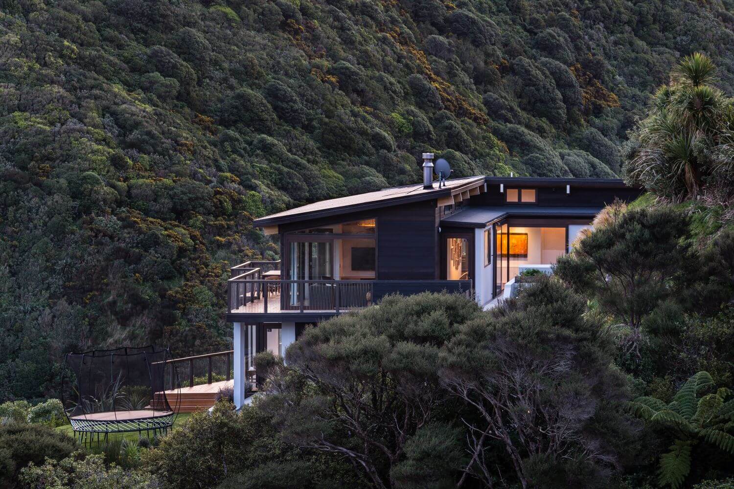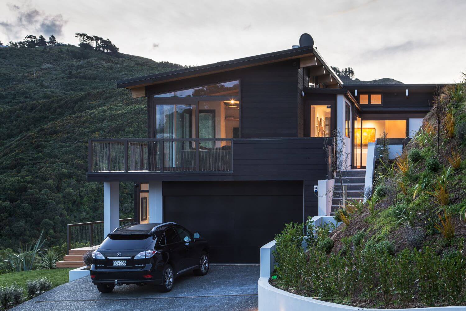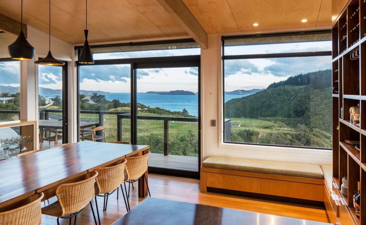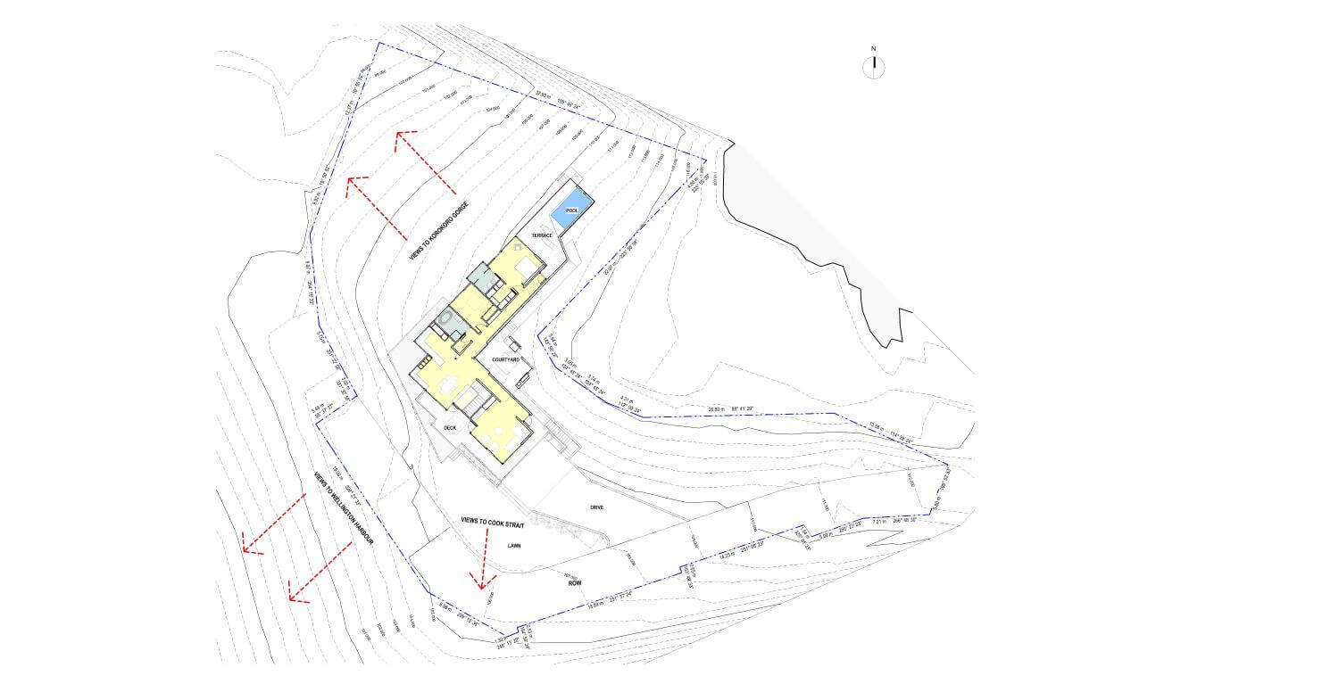 Dom, położony w sąsiedztwie obszaru chronionego, doskonale wykorzystuje swoje dramatyczne położenie, tworząc przestronną i harmonijną przestrzeń. Zorganizowano go wokół dwóch centralnych osi: jednej skierowanej na wąwóz Korokoro, a drugiej na Cieśninę Cooka. Budynek przyjmuje kształt litery L, schowany za rogiem stromo nachylonej części terenu. Taki prosty kształt umożliwił wyodrębnienie dwóch odrębnych obszarów: prywatnego skrzydła sypialni, zorientowanego na wąwóz, oraz bardziej publicznego skrzydła mieszkalnego, które oferuje spektakularne widoki na port Wellington.