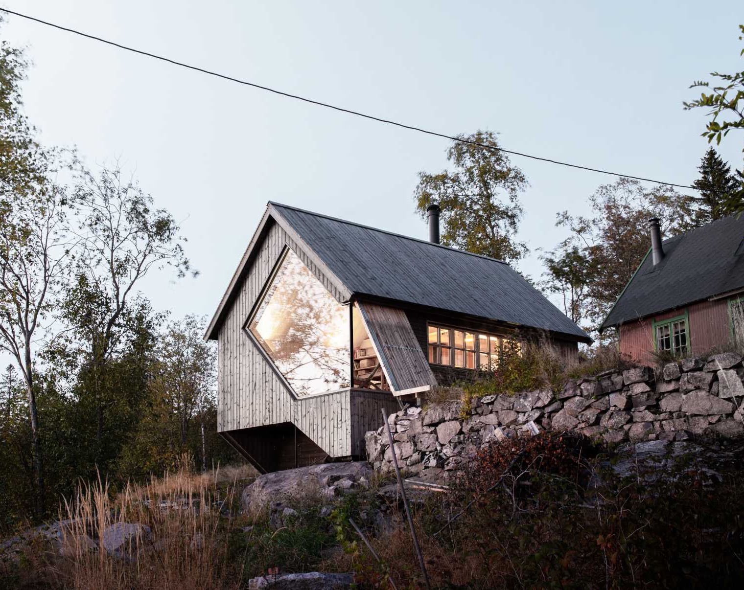 Ta niewielka kabina w Nordmarka, dzikiej okolicy w pobliżu Oslo, doskonale wpisuje się w tradycję schronisk „bolthole”. Zawiera wszystko, co niezbędne, ale nie więcej. Jest łatwa w utrzymaniu czystości i konserwacji. Jasna i otwarta, a jednocześnie intymna i przytulna. Poza praktycznością i przytulnością, główny nacisk położono na maksymalne wykorzystanie walorów lokalizacji, w tym na panoramiczny widok obejmujący zachód słońca, lasy i jeziora.