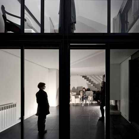 Wnętrze rezydencji zostało rozplanowane z myślą o komforcie i funkcjonalności. Na parterze znajdują się kluczowe strefy – przestronny salon, kuchnia oraz domowe studio, które korzystają z naturalnego światła wpadającego przez duże przeszklenia. Na górnym piętrze ulokowano dwie sypialnie, zapewniające prywatność i widok na otaczającą architekturę Sintry. Całość tworzy spójny, minimalistyczny projekt, który łączy stal, szkło i kamień, podkreślając charakterystyczny klimat portugalskiej architektury.