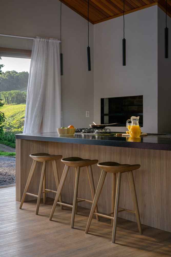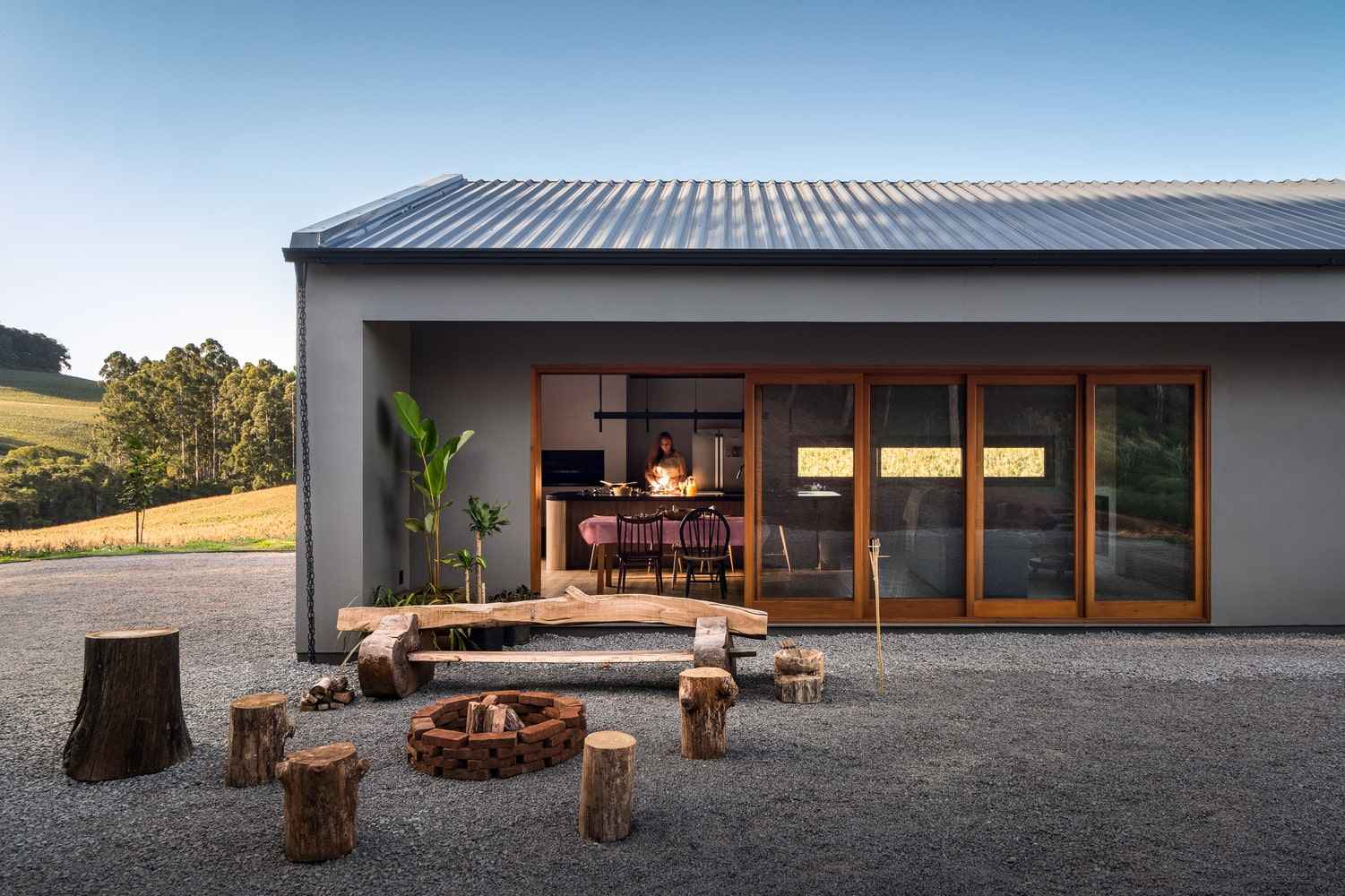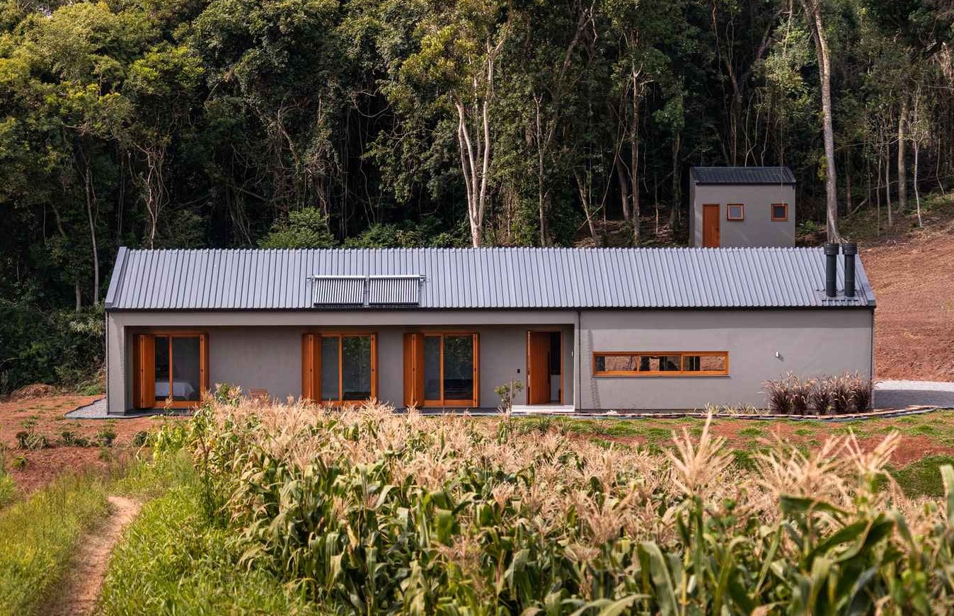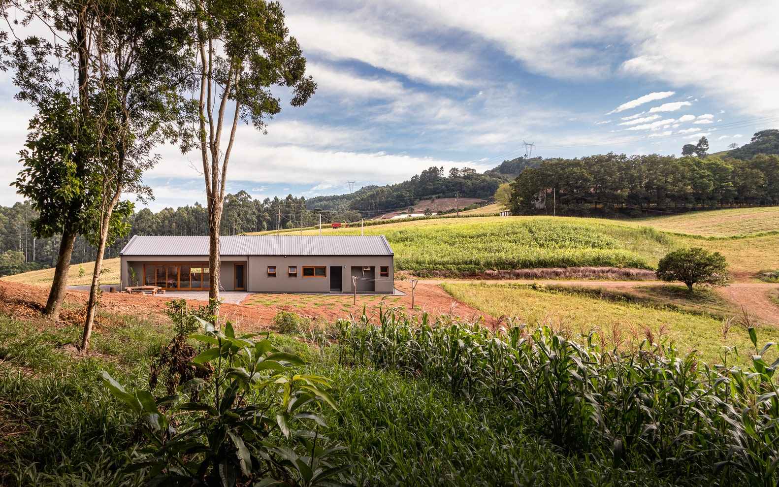Campestre House, zaprojektowany przez studio LEIVA arquitetura, to nowoczesny dom wiejski stworzony od podstaw na pustej działce w brazylijskim regionie Rio Grande do Sul. Architekci mieli pełną swobodę projektową, a jedynym wyznacznikiem było życzenie inwestorów, aby sercem domu była strefa towarzyska. Centralna część budynku skupia więc kuchnię, jadalnię i salon w układzie otwartym, naturalnie połączonym z resztą przestrzeni. Kluczowe dla projektu okazały się warunki klimatyczne – prostokątna bryła z elewacją skierowaną na północ zapewnia efektywne doświetlenie, a południowe przeszklenia otwierają dom na ogród i las, jednocześnie chroniąc wnętrze przed nadmiernym nagrzewaniem.