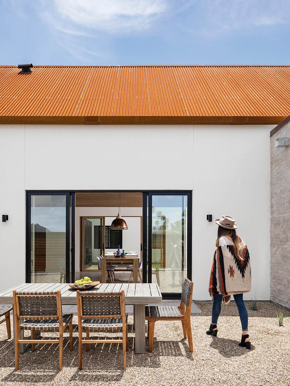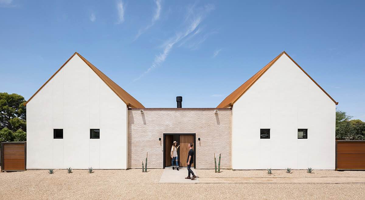 Zamiast „lśniącego pudełka”, architekci zaproponowali ciepły, organiczny dom, który nawiązuje do lokalnego klimatu i historii miejsca. Projekt odwołuje się do tradycyjnego południowo-zachodniego układu z dziedzińcem, sprawdzonego w surowych warunkach pustyni Arizony, łącząc go z prostą, łatwą w utrzymaniu formą i przyjaznym, naturalnym wnętrzem.