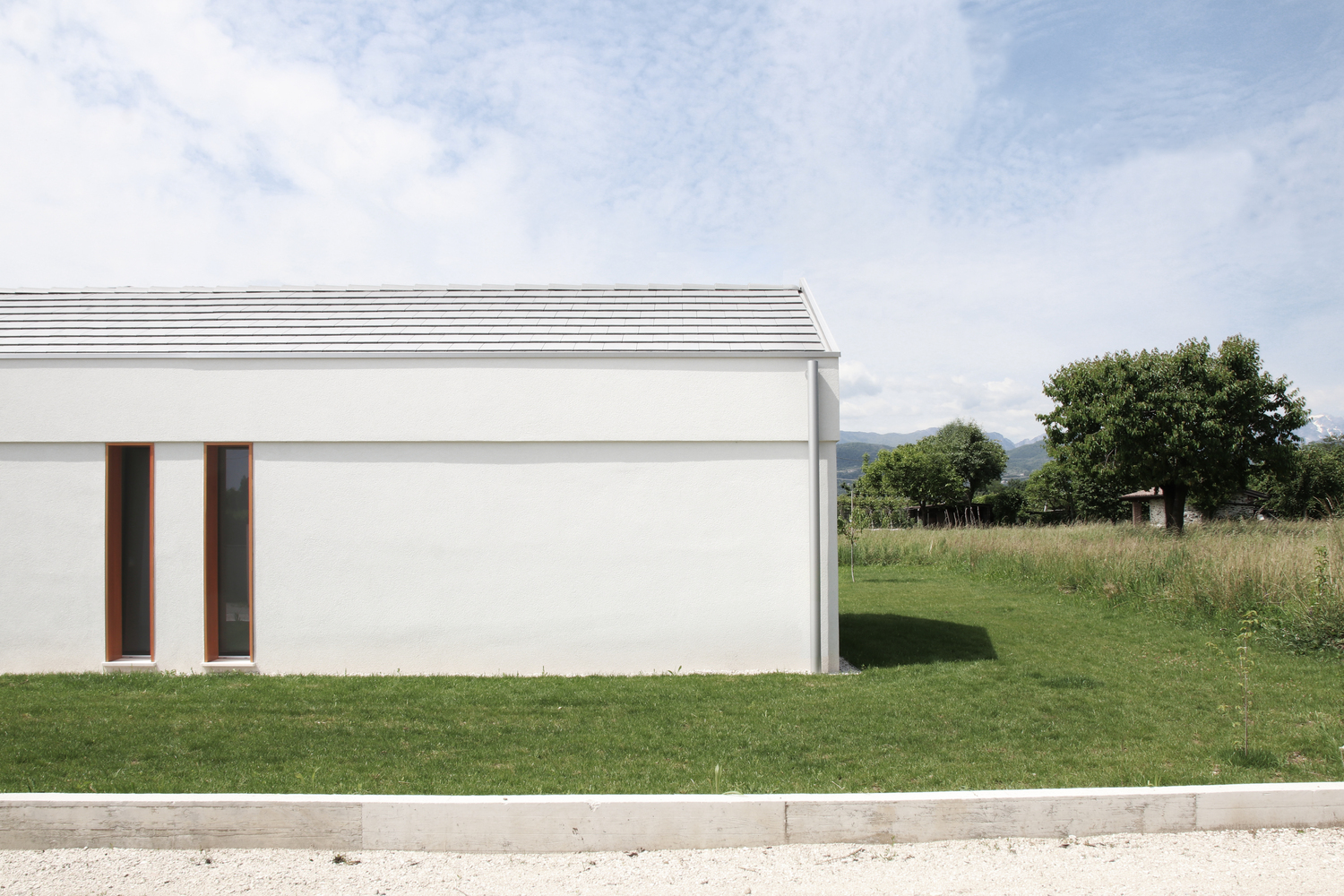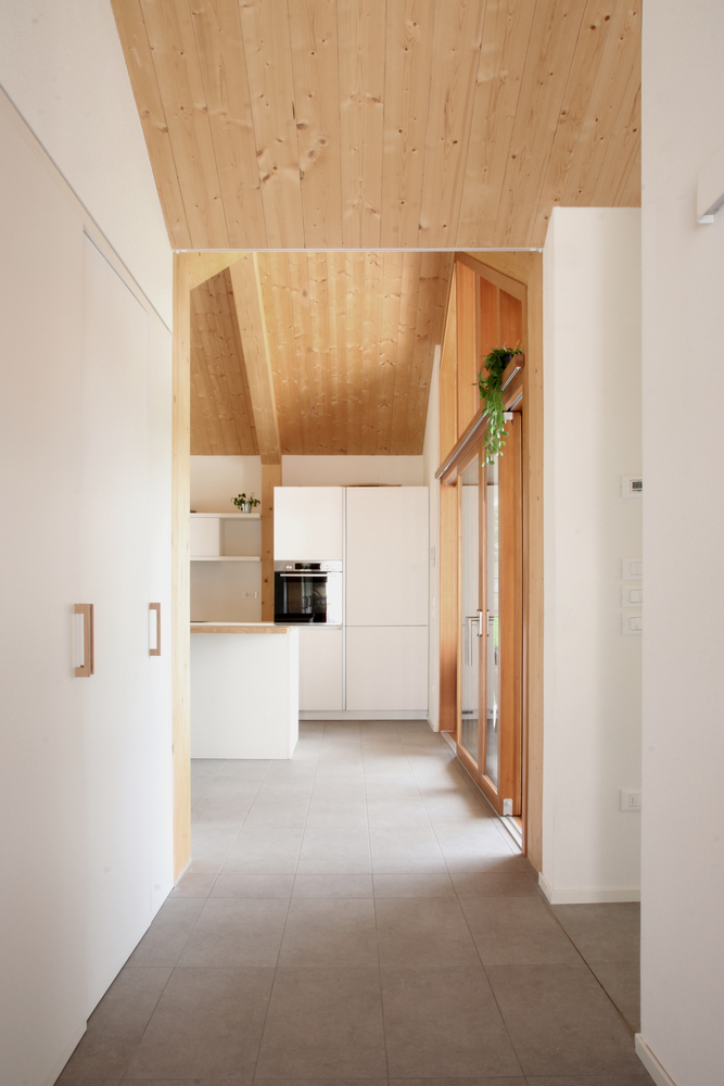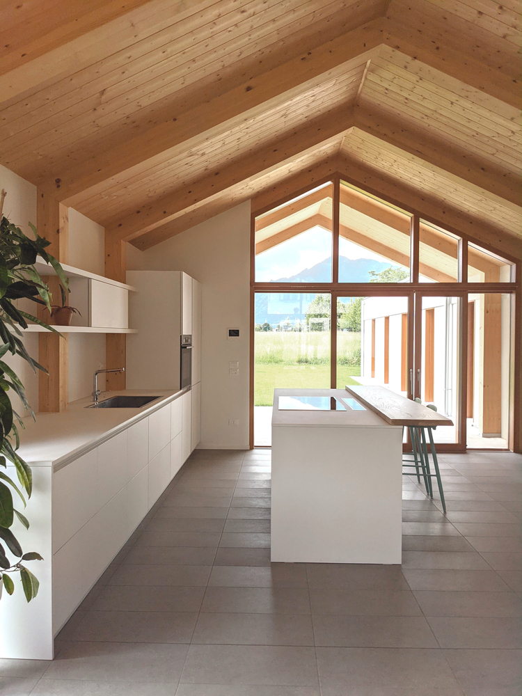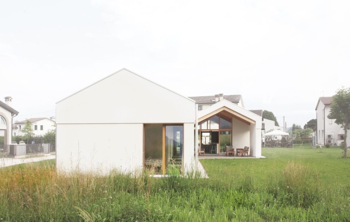 Casa AF to projekt, który łączy nowoczesną architekturę z tradycyjną formą stodoły. Zlokalizowany w wyjątkowym miejscu między wsią a miastem, z widokiem na Piccole Dolomiti, dom składa się z dwóch równoległych brył z dwuspadowymi dachami, tworząc harmonijną przestrzeń między wnętrzem a otaczającą przyrodą. Dom zaprojektowano z uwzględnieniem relacji wizualnych z krajobrazem. Pierwsza bryła zawiera część sypialną i pomieszczenia techniczne, natomiast druga, otwarta, mieści przestrzeń dzienną z dużymi oknami wychodzącymi na ogród. Ganek północny chroni przestrzeń przed wiatrem i zapewnia intymność, a ganek południowy kontroluje nasłonecznienie latem, tworząc komfortowy klimat wewnętrzny.