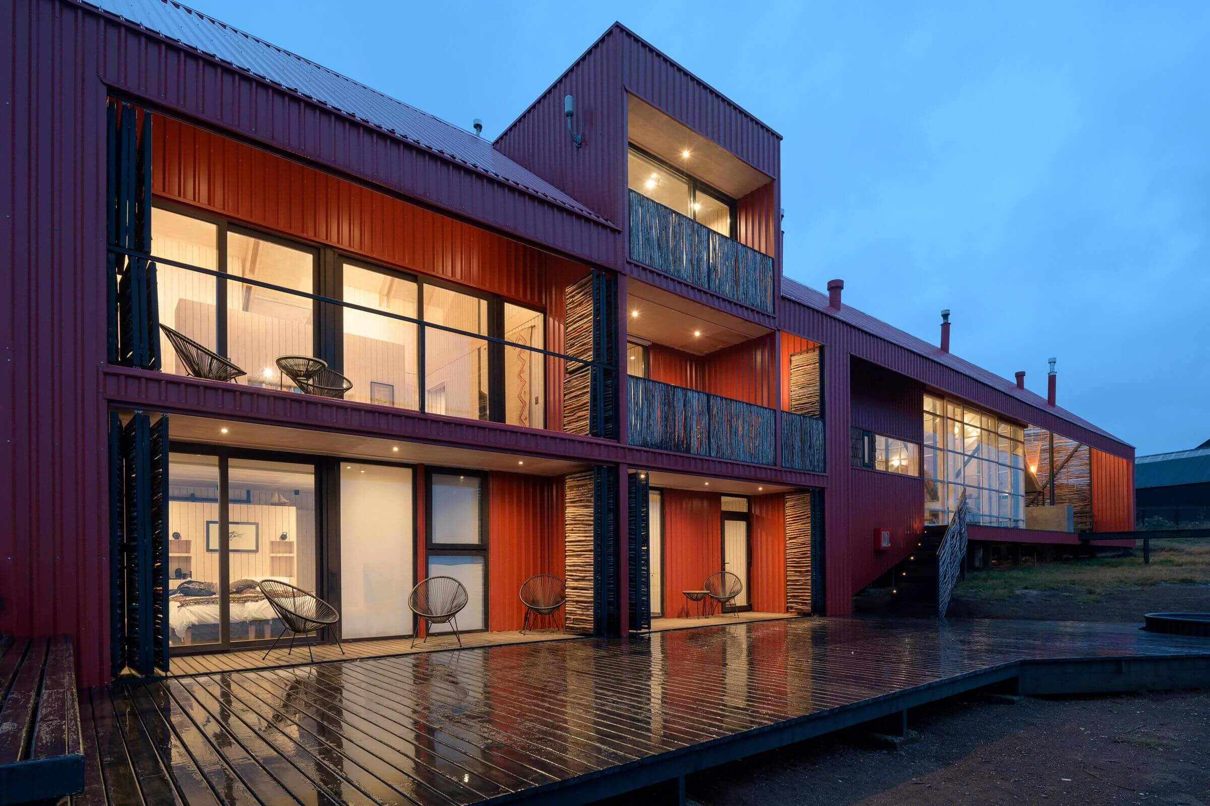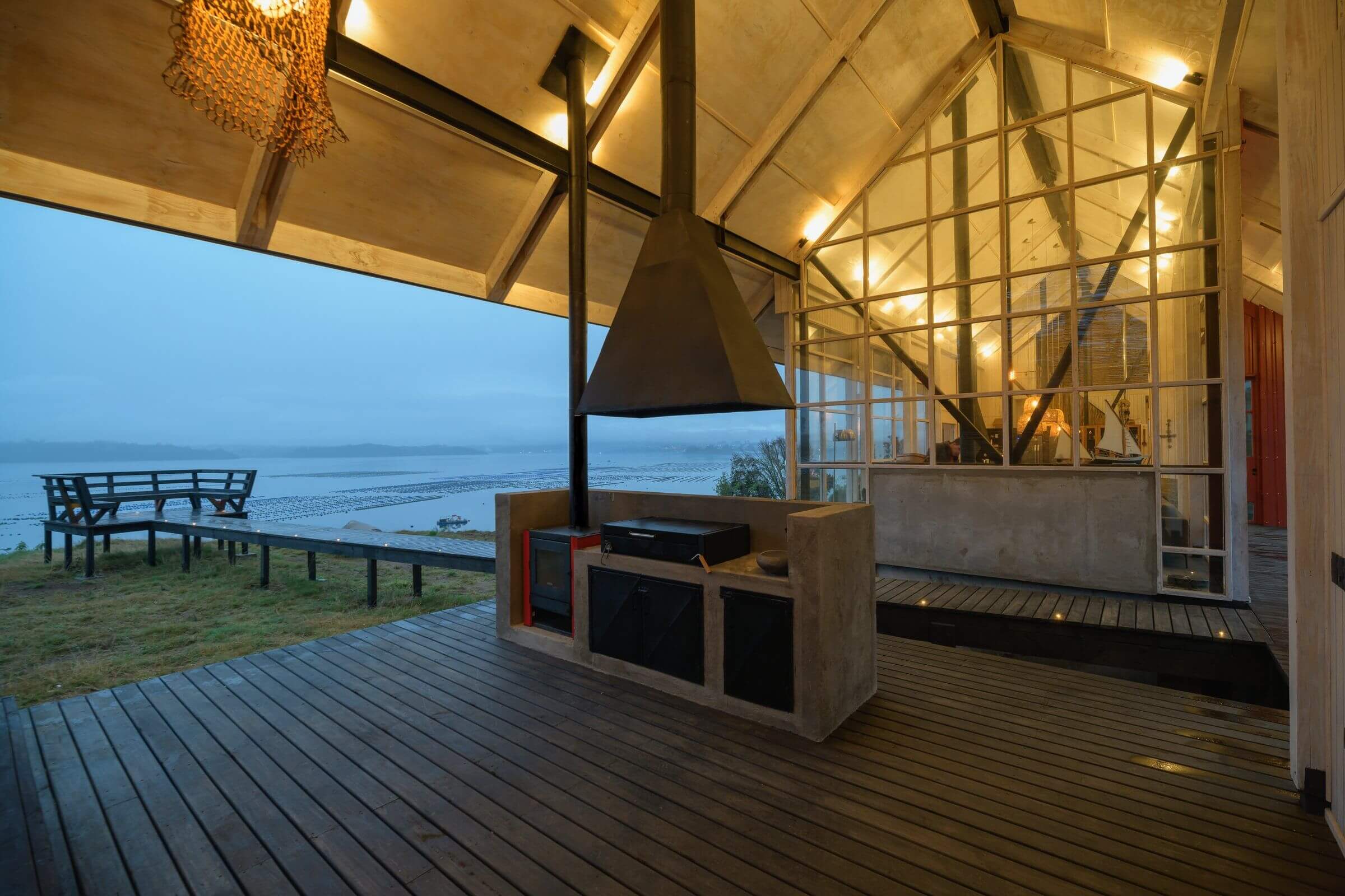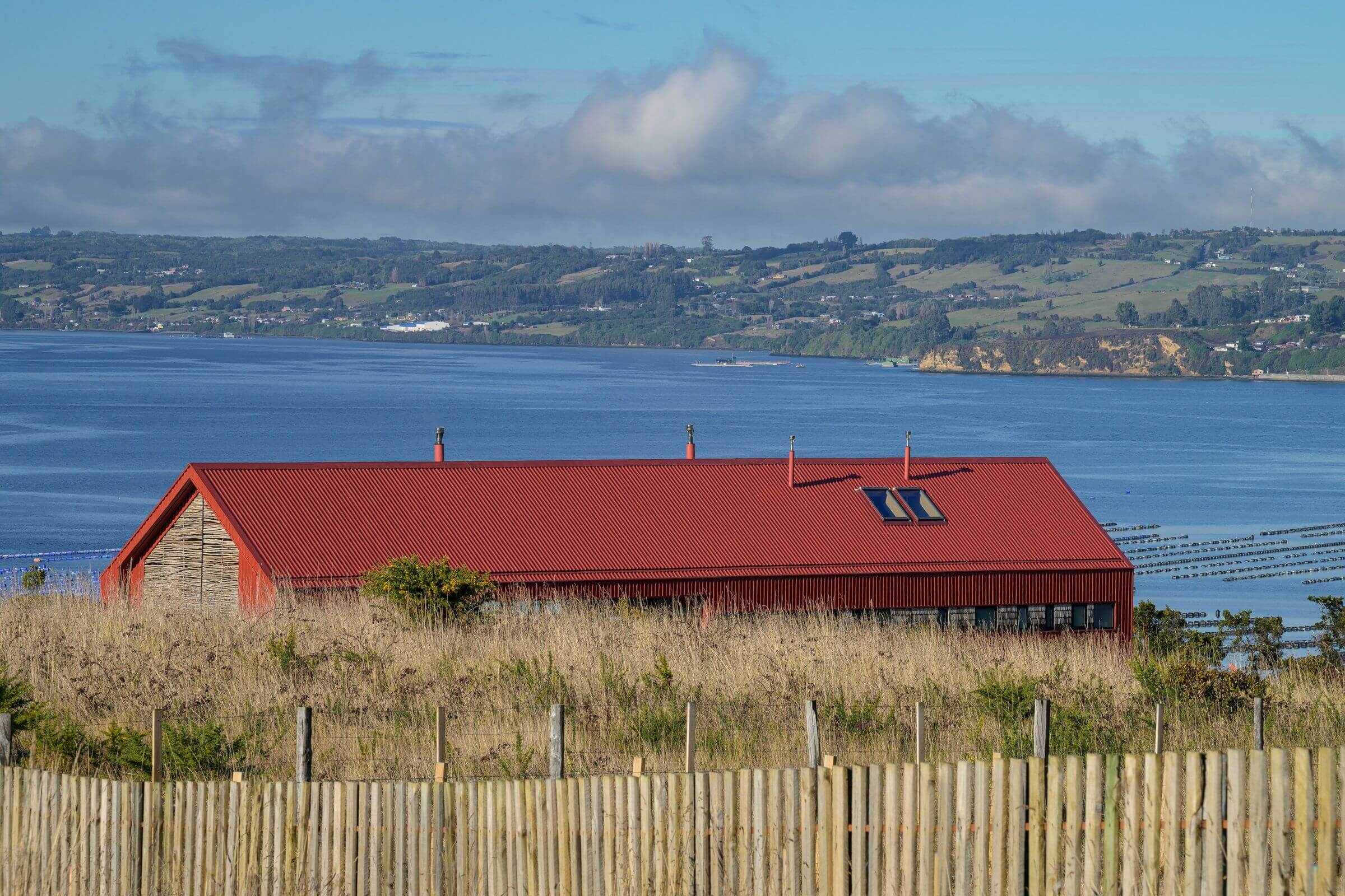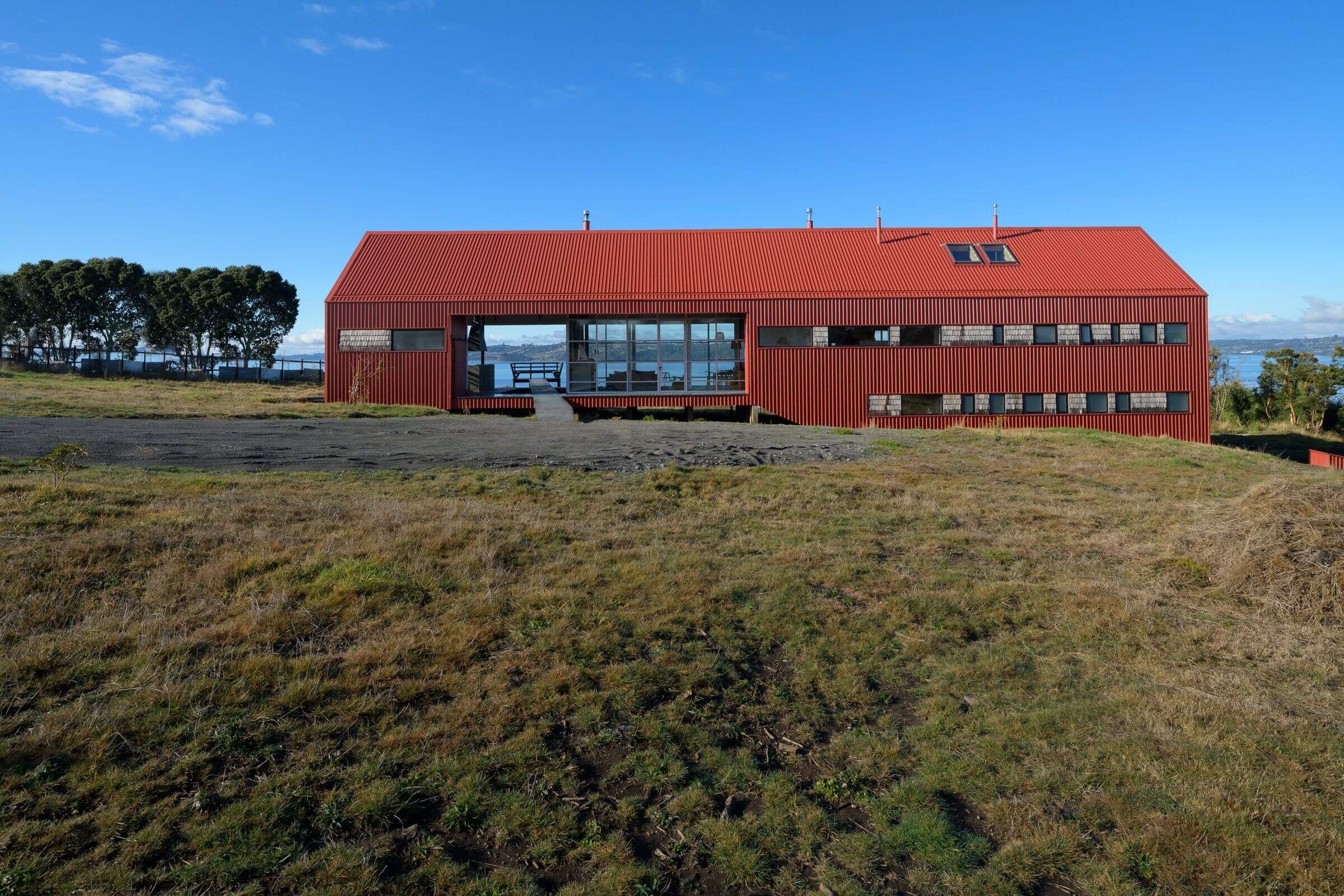 „Casa Chiloe” to nowoczesna stodoła usytuowana na malowniczej wyspie Chiloé w południowym Chile. Dom zaprojektowano równolegle do zbocza, tworząc jednolitą, długą bryłę z dużym frontem, który maksymalnie wykorzystuje piękne widoki. Kubatura budynku została podzielona na półpiętra: część sypialna znajduje się na dwóch poziomach, a przestrzeń publiczna została umieszczona na poziomie pośrednim, co pozwoliło na zwiększenie jej wysokości.
