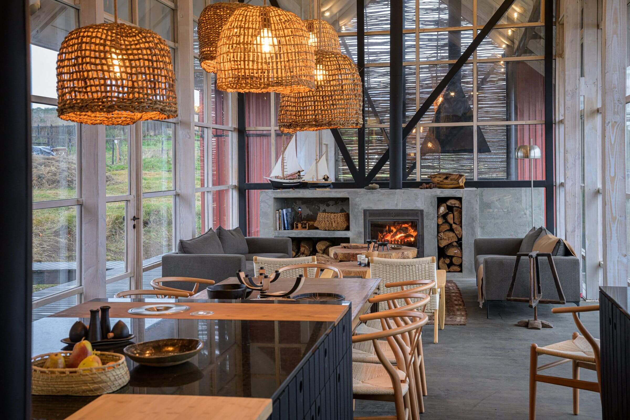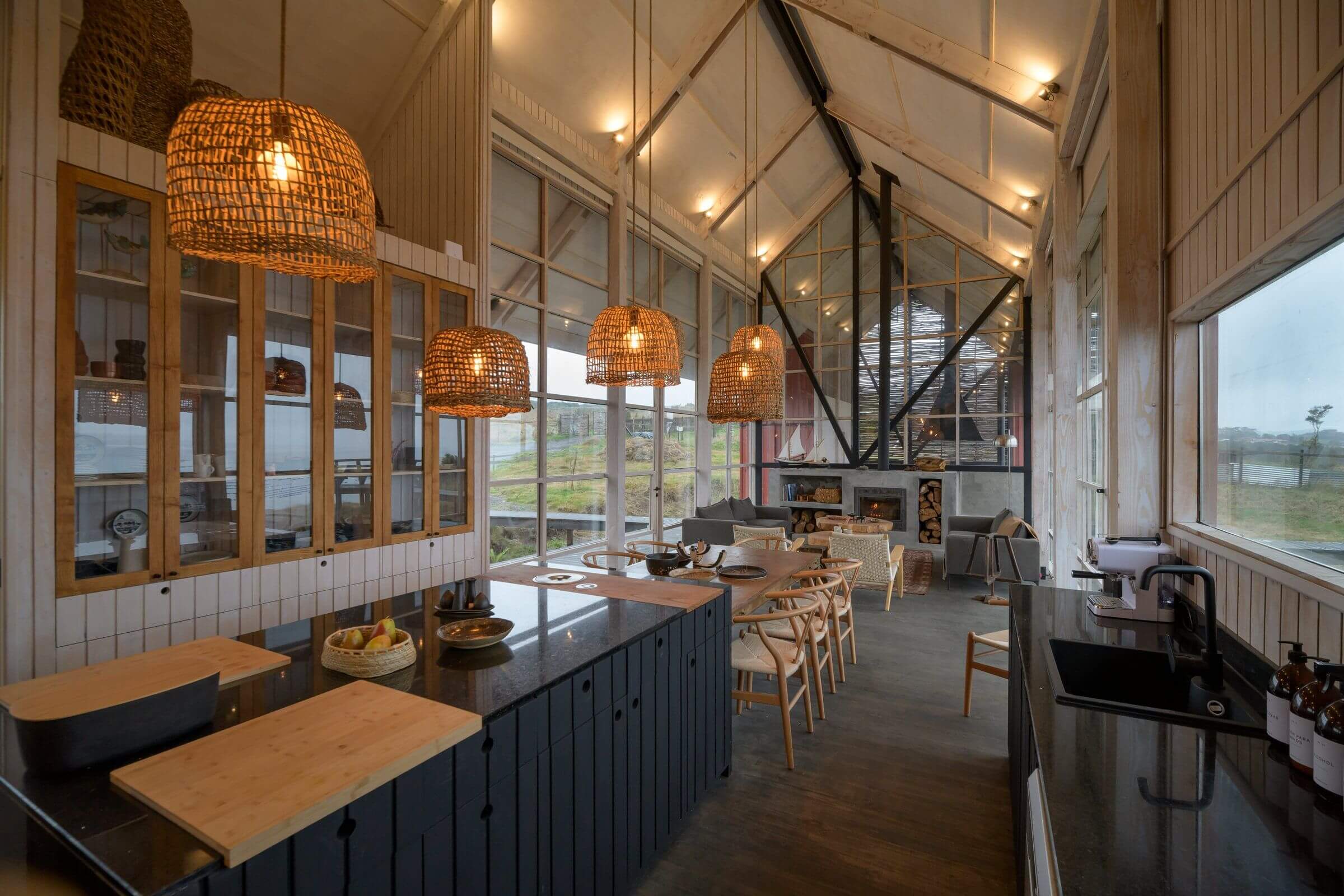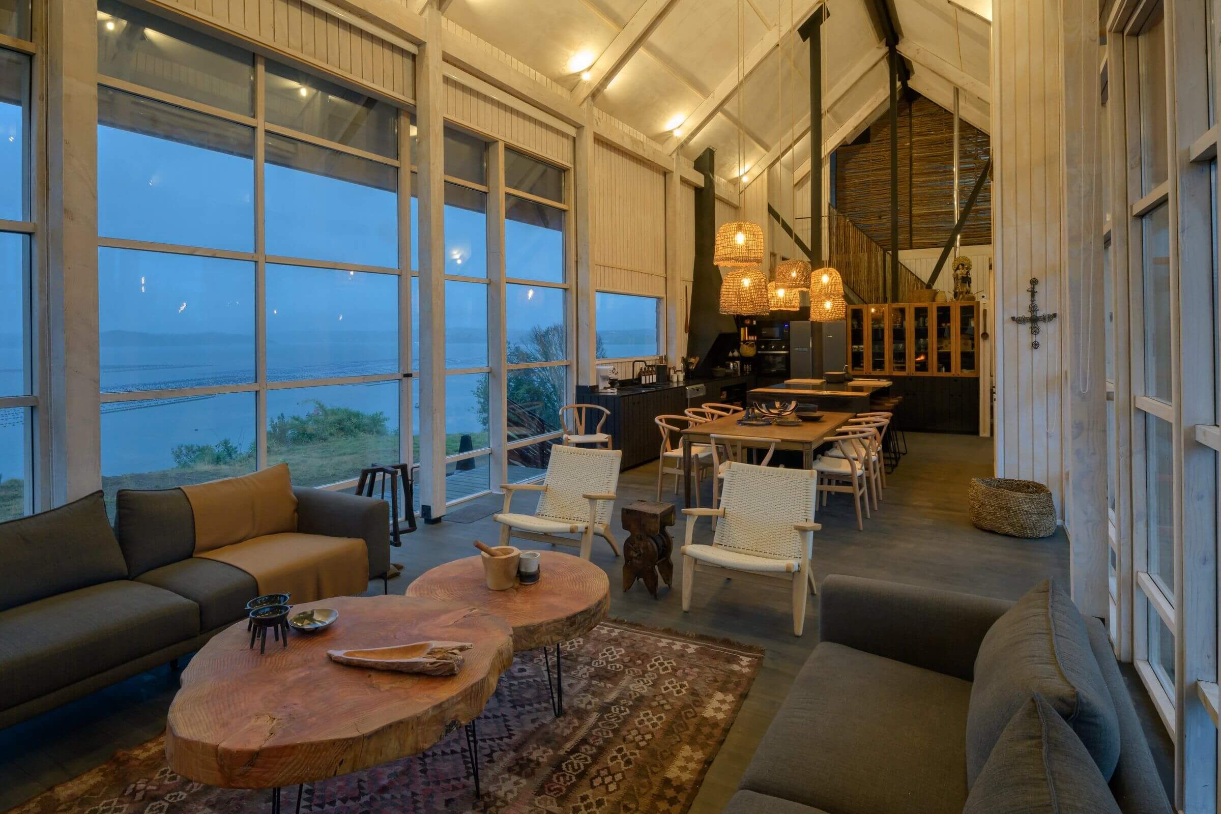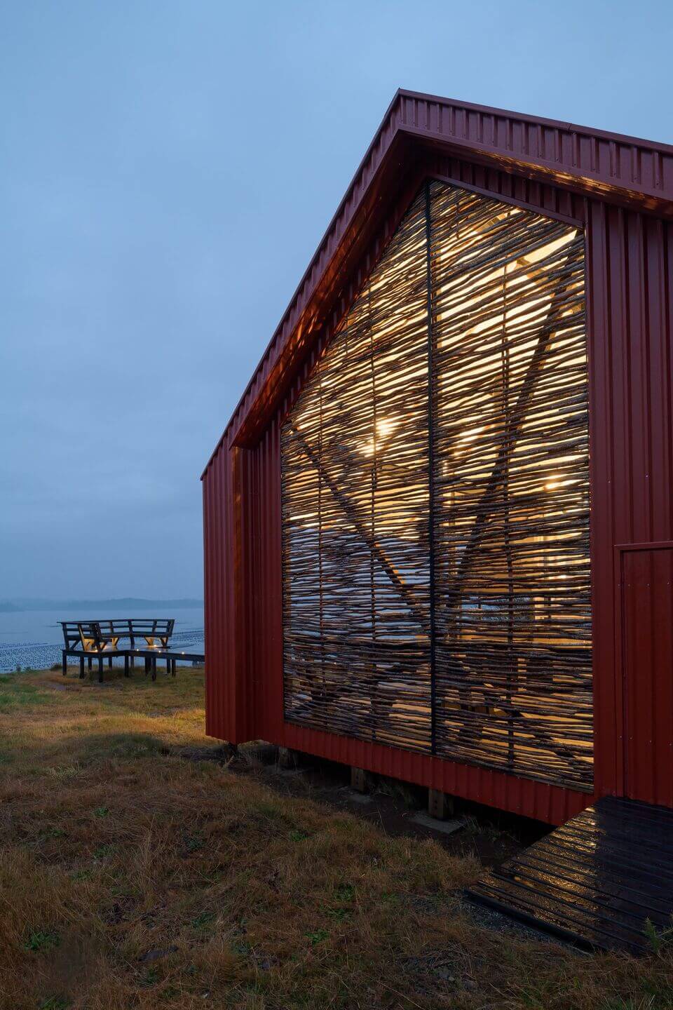 „Casa Chiloe” to nowoczesna stodoła usytuowana na malowniczej wyspie Chiloé w południowym Chile. Dom zaprojektowano równolegle do zbocza, tworząc jednolitą, długą bryłę z dużym frontem, który maksymalnie wykorzystuje piękne widoki. Kubatura budynku została podzielona na półpiętra: część sypialna znajduje się na dwóch poziomach, a przestrzeń publiczna została umieszczona na poziomie pośrednim, co pozwoliło na zwiększenie jej wysokości.