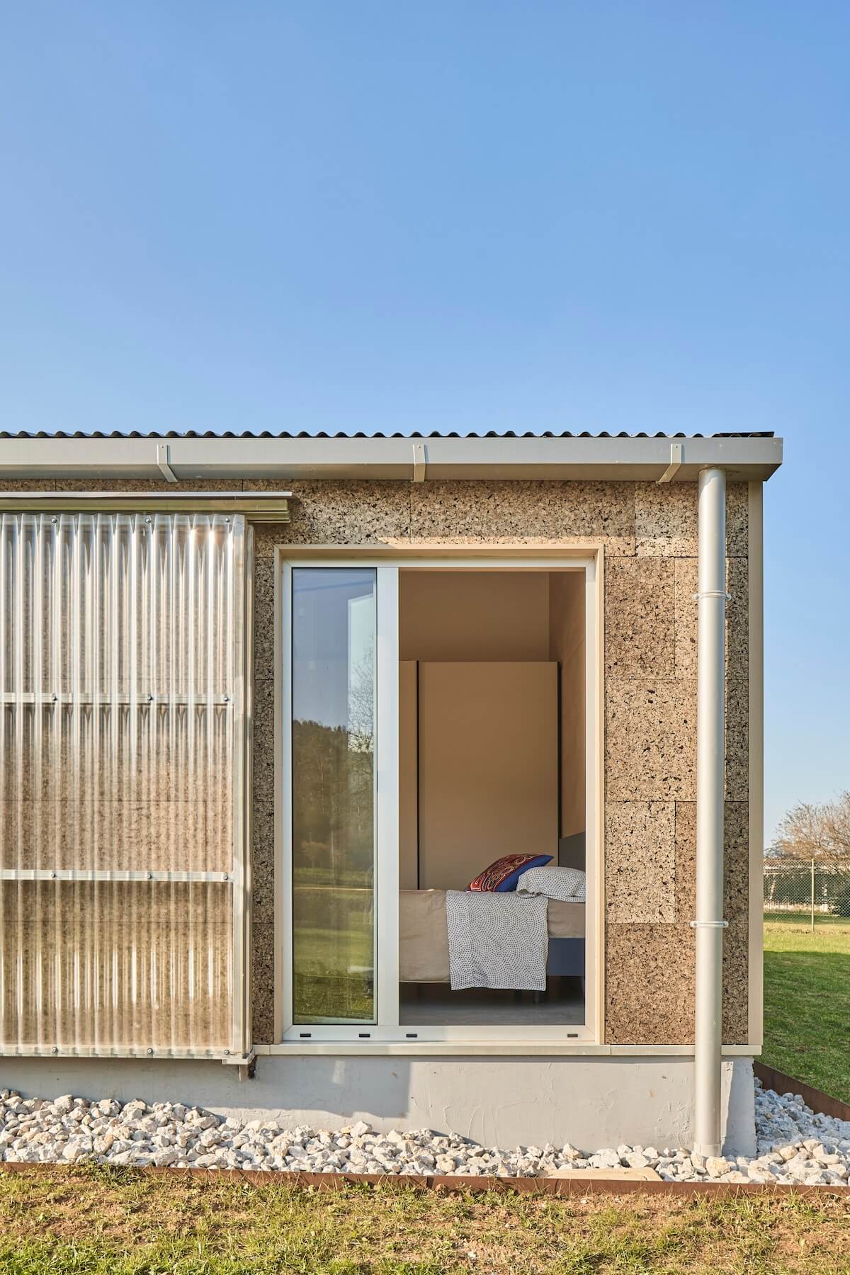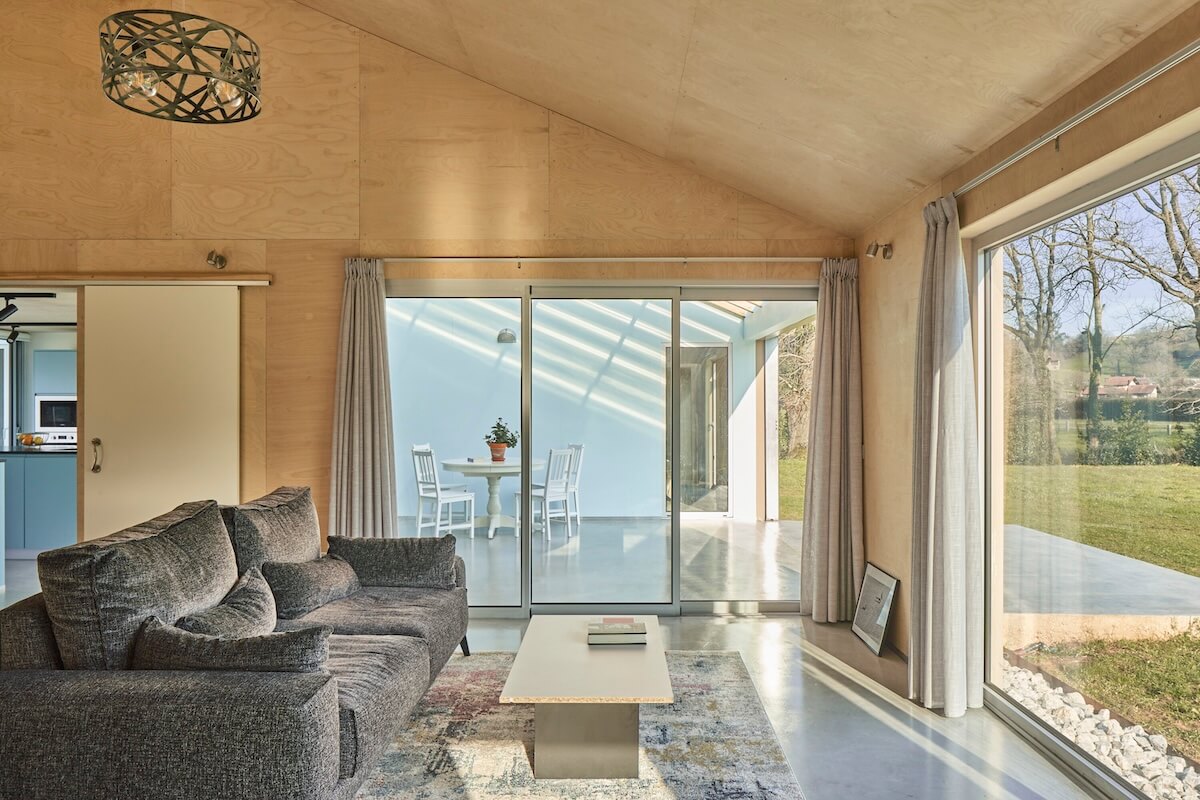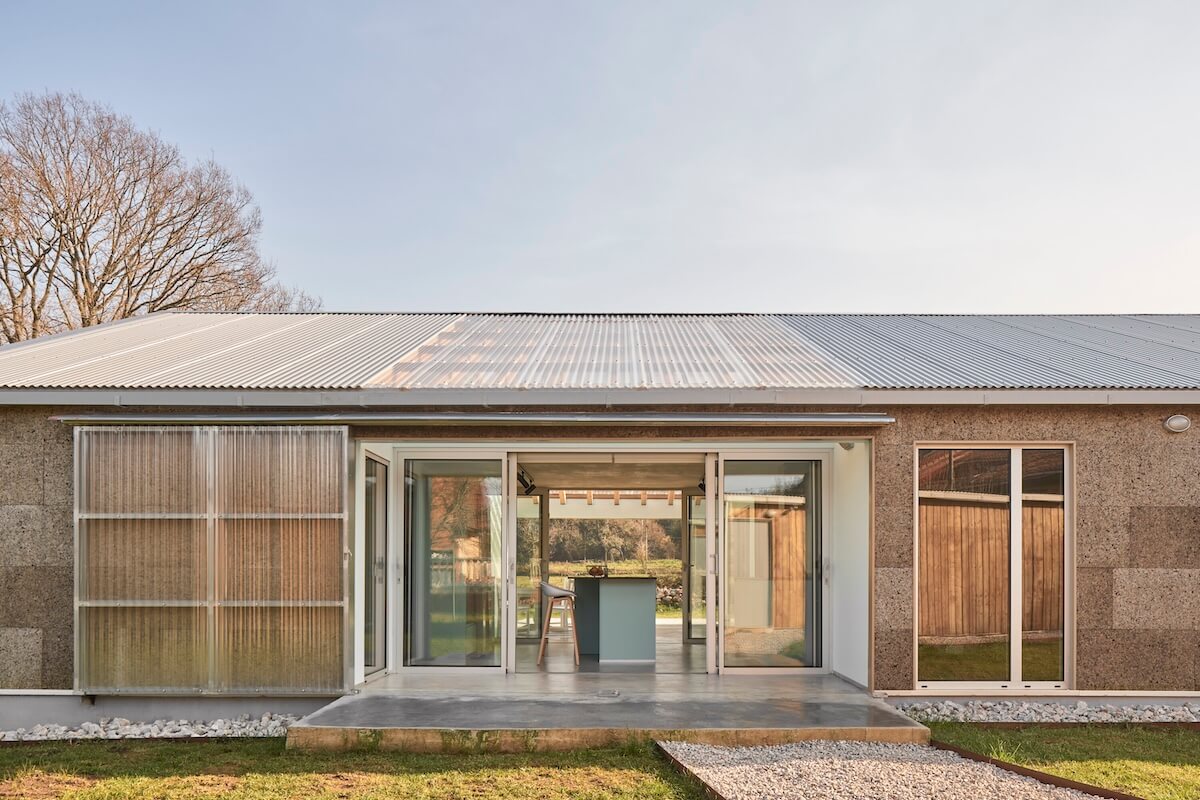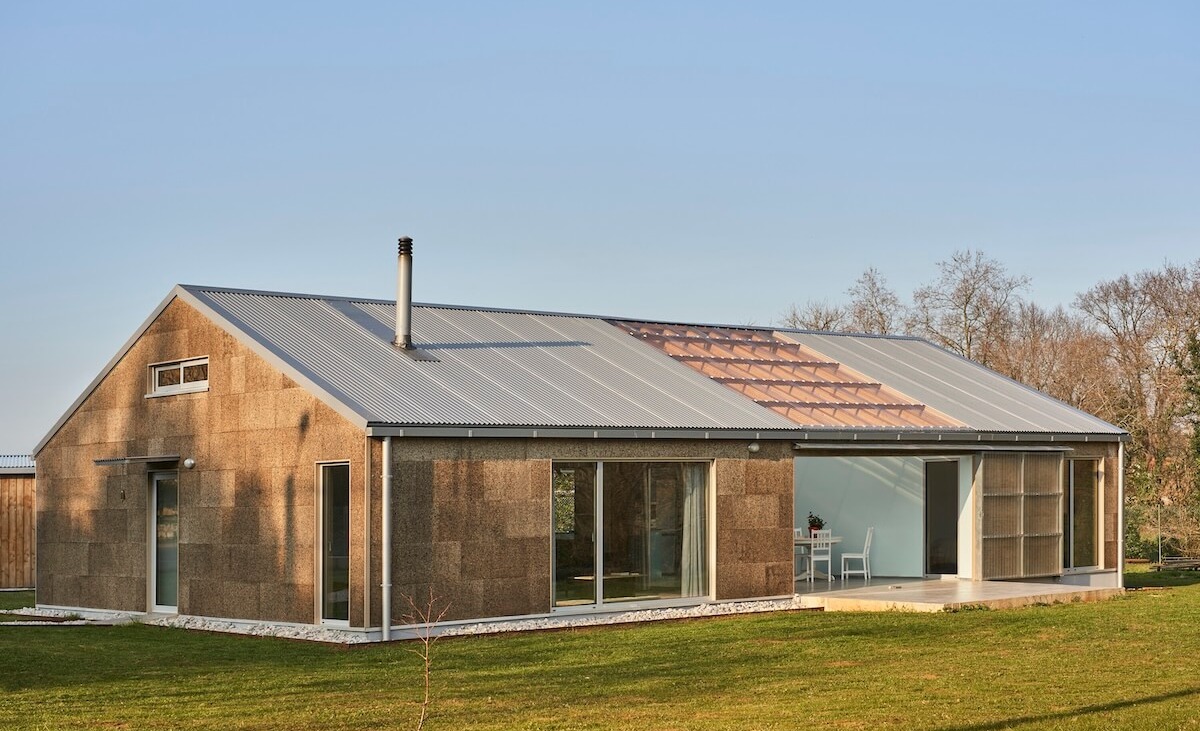 Zastosowanie uprzemysłowionych systemów budowlanych pozwoliło na znaczną redukcję czasu budowy, śladu węglowego oraz zapotrzebowania na energię. Konstrukcję z laminowanych ram drewnianych wykonano w warsztacie, a elementy zostały przetransportowane na miejsce, gdzie zmontowano je w zaledwie tydzień. Drobne prace wykończeniowe i detale zostały wykonane przez właścicieli. Dzięki tym innowacyjnym rozwiązaniom, ten dom osiąga niemal zerowe zużycie energii, a jego konstrukcja doskonale wpisuje się w ideę sustainability i nowoczesnej architektury wiejskiej. To przykład domu bioklimatycznego, który łączy estetykę, funkcjonalność i ekologiczne podejście do budownictwa.