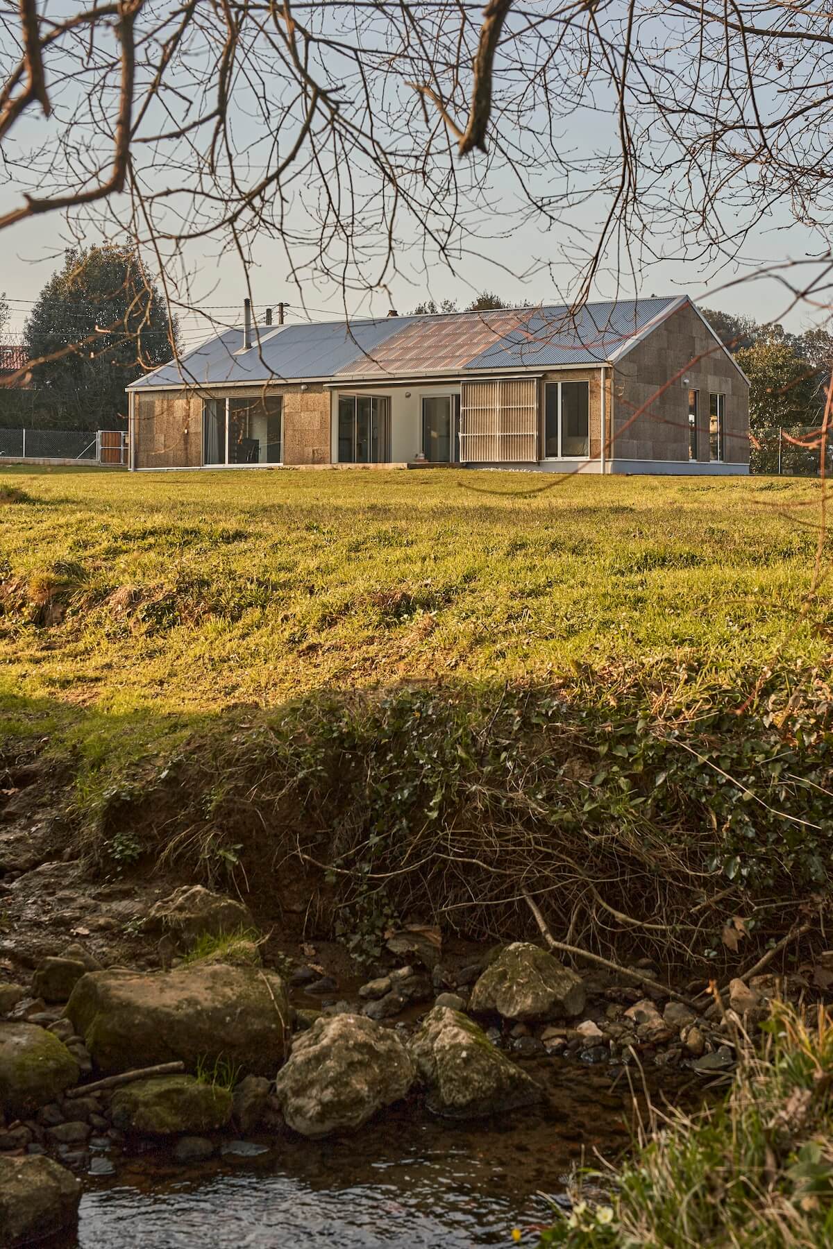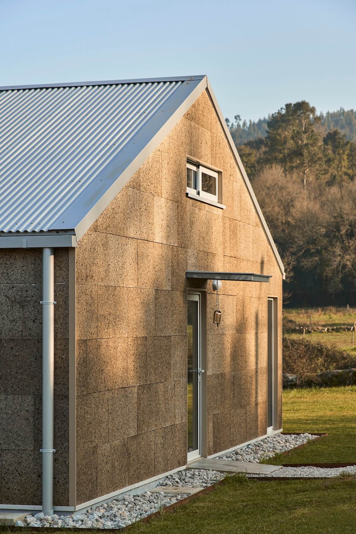 Projekt łączy abstrakcyjną strukturę z minimalistycznym podejściem, gdzie prosta bryła i nowoczesny styl stanowią kontrast do złożonego układu przestrzennego wewnątrz. Fasada domu została zaprojektowana z naturalnych materiałów, takich jak korek i drewno, które harmonijnie wpasowują się w krajobraz, a zastosowanie drewna laminowanego w konstrukcji pozwala na precyzyjny montaż prefabrykowanych elementów. Dach z blachy falistej, inspirowany zmiennym klimatem Kantabrii, dopełnia całość.