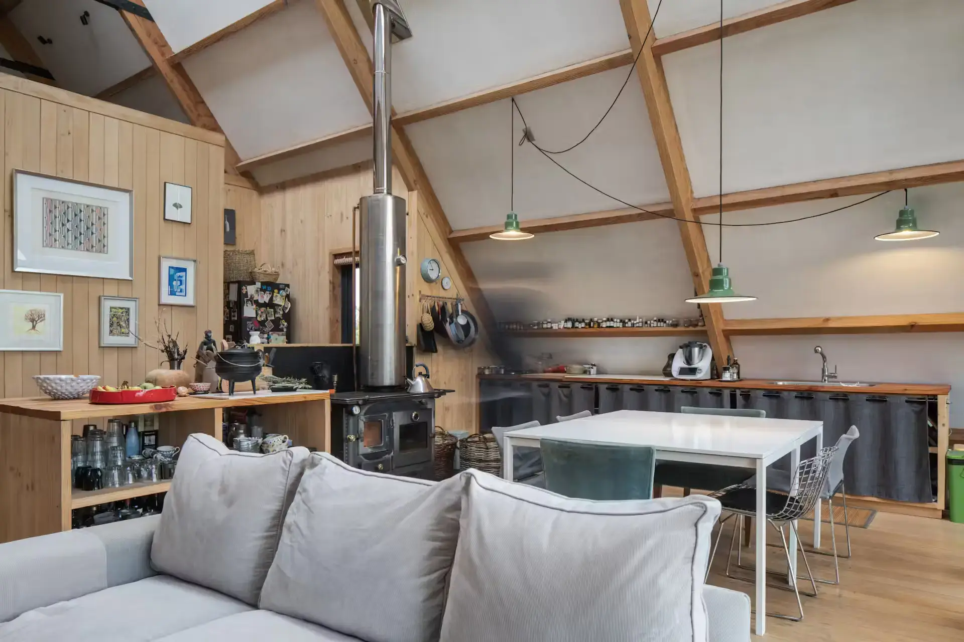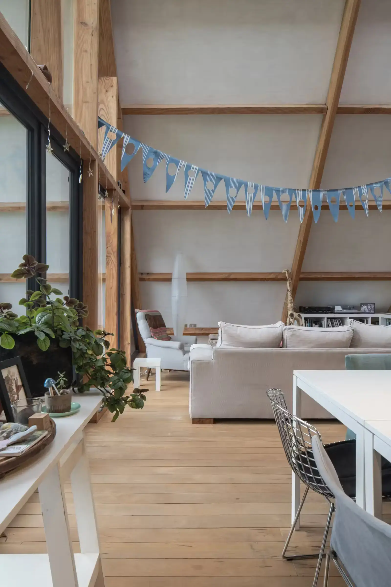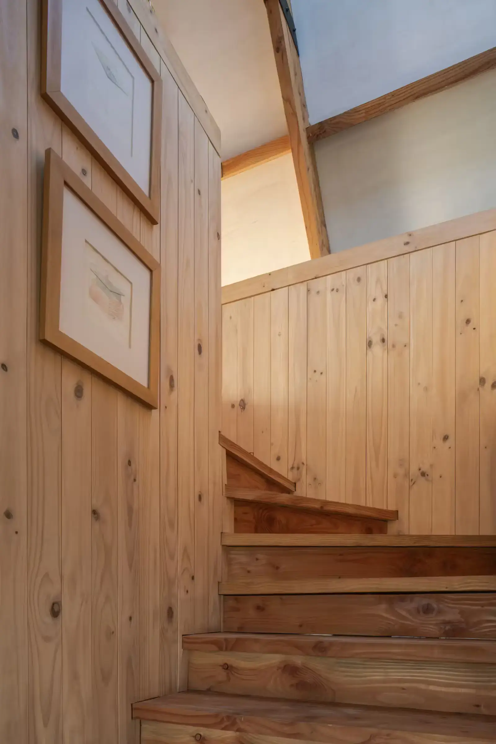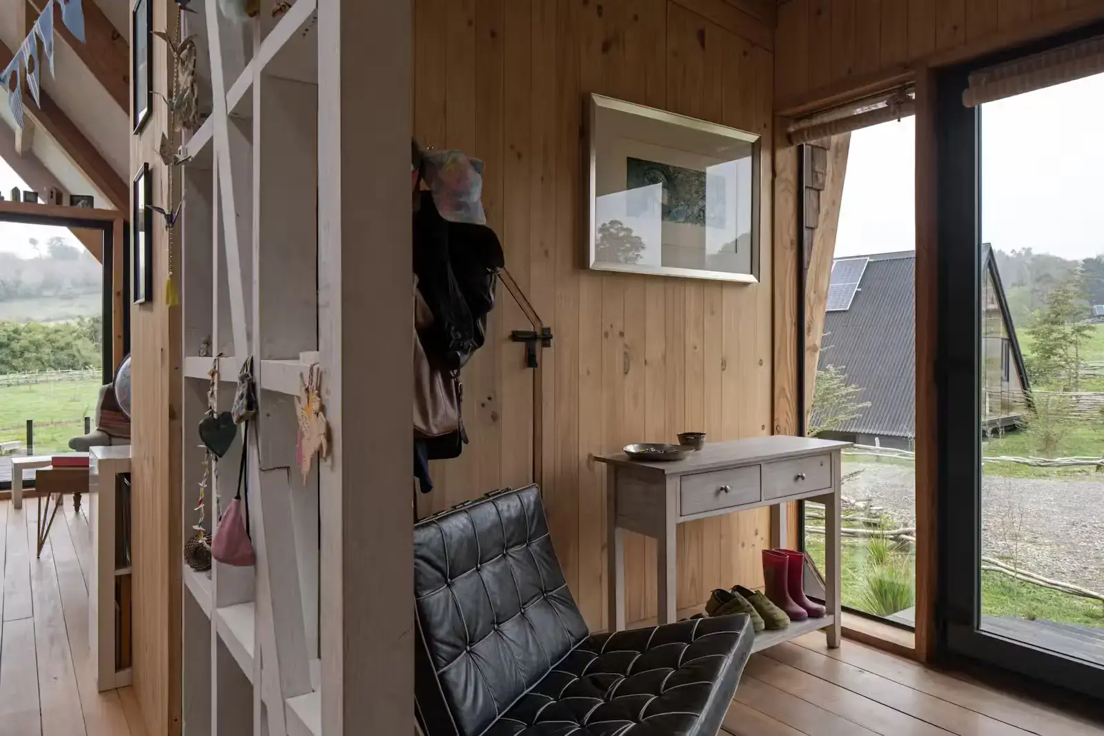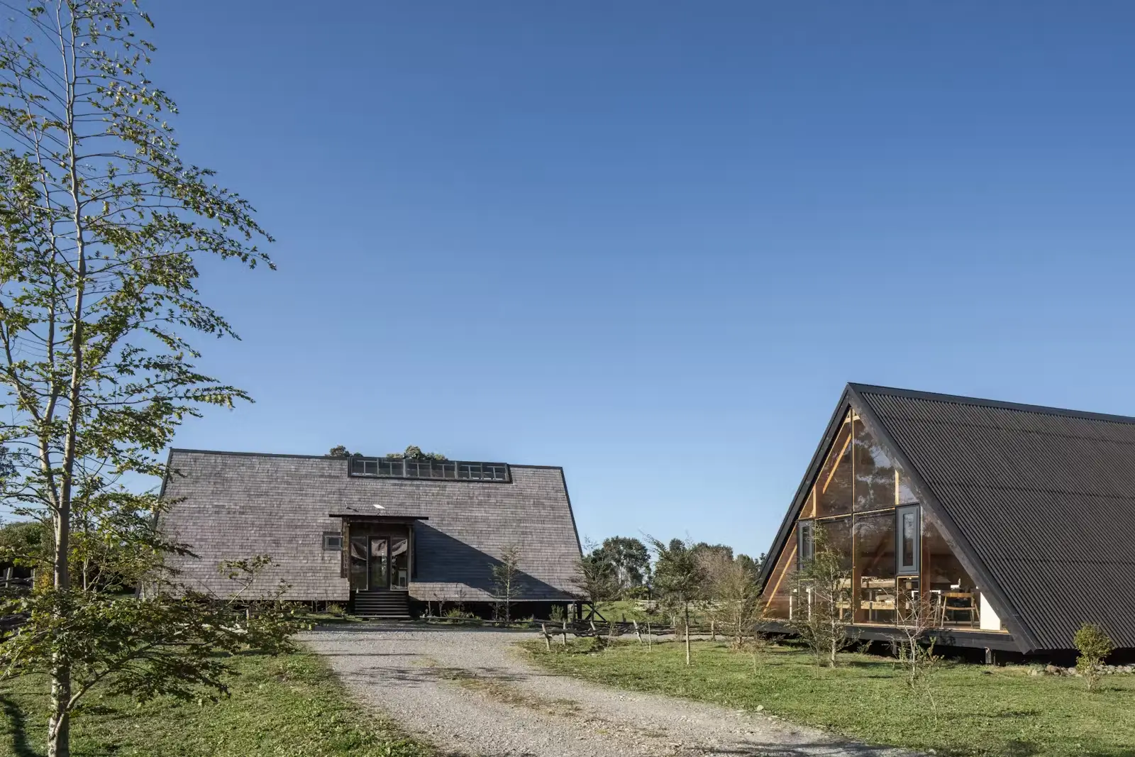 W Chile pogoda zmienia się gwałtownie w ciągu dnia. Nic więc dziwnego, że koncepcja refugio – domu jako schronienia – była na pierwszym planie. Zarówno Maximiliano, jak i Alejandra dorastali na nartach, więc przytulny, inspirowany alpejskim stylem A-frame wydawał się idealną formą do osiągnięcia tego uczucia ukrycia się przed światem. Trójkątny kształt można skutecznie ogrzać, a także tworzy przyjemną dwoistość: wysokie sufity i poczucie kojącego zamknięcia.