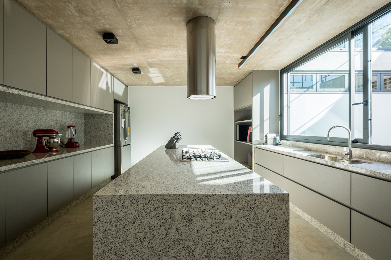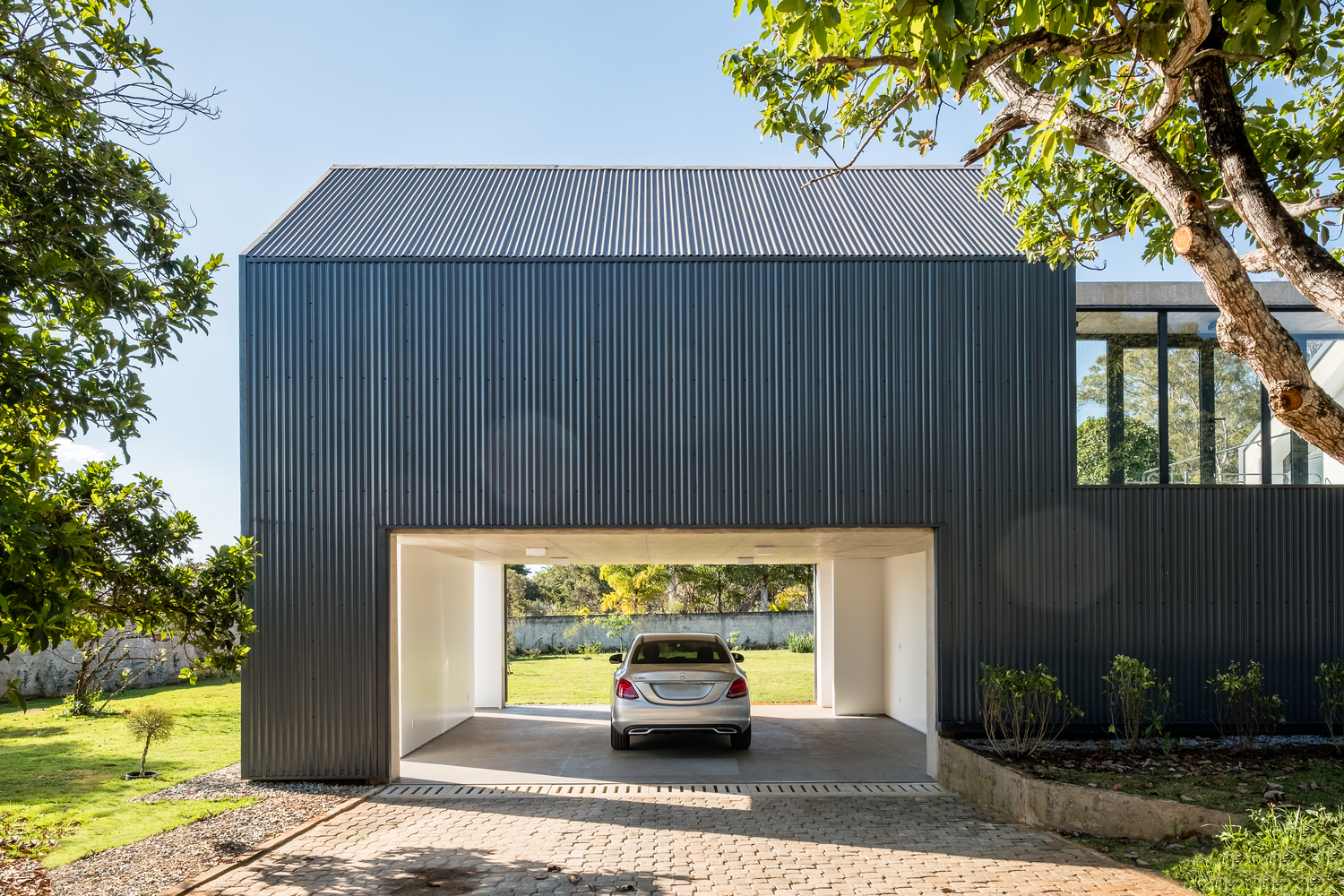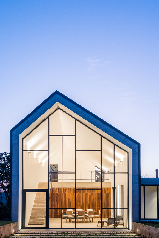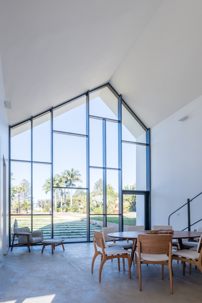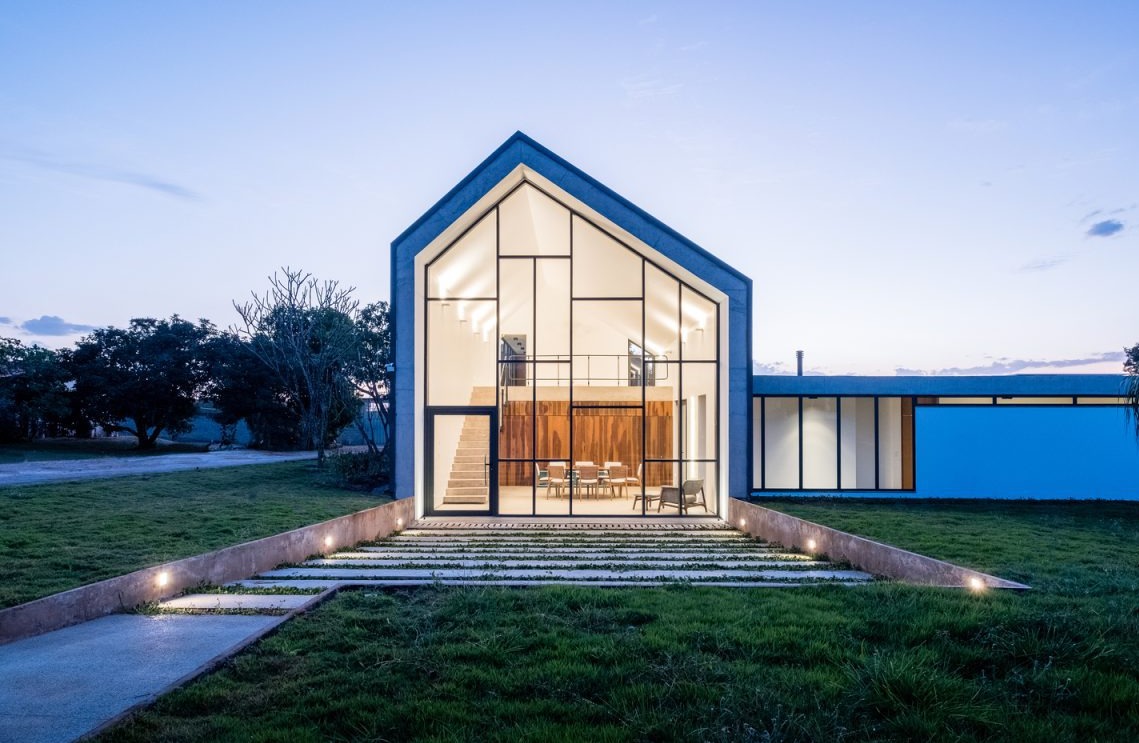 Casa Groba to projekt, który wpisuje się w charakterystyczne równiny Brasílii, tworząc dialog między dwiema odrębnymi bryłami. Główny pawilon o geometrycznej formie odchodzi od konwencjonalnej morfologii mieszkaniowej, otwierając przestrzeń na fuzję stref publicznych i prywatnych, oddzielonych jedynie szklaną płaszczyzną. Drugi, mniejszy blok – inspirowany horyzontalnym krajobrazem Brasílii – mieści prywatne pomieszczenia, z ograniczoną liczbą otworów i silnym związkiem z zielenią działki.