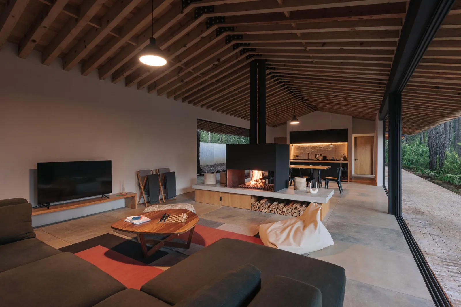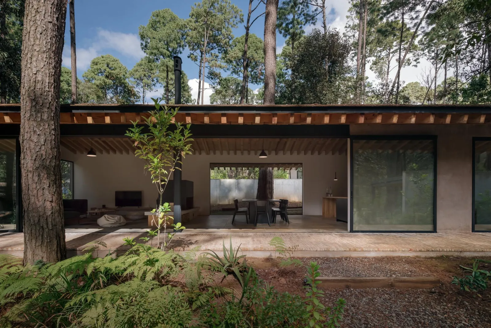 Estudio Atemporal przeprowadziło szczegółowy analizę terenu, aby uniknąć ingerencji w istniejący ekosystem. Dom został umieszczony w naturalnym otwarciu wśród drzew, zapewniając panoramiczne widoki i maksymalne doświetlenie. Użyto naturalnych materiałów, takich jak drewno i dachówka płaska, które doskonale współgrają z otoczeniem, nadając budynkowi ciepło i trwałość.