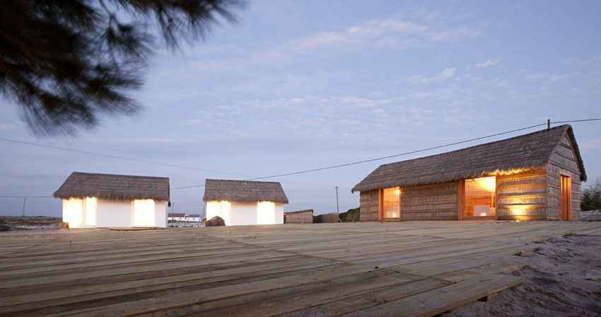 Cały projekt powstał z myślą o połączeniu estetyki z praktycznością. Pawilony drewniane i segmenty murowane tworzą spójną kompozycję, a naturalne materiały, takie jak piasek i drewno, nadają wnętrzom autentyczny charakter. Budynek zachowuje tradycyjny styl, jednocześnie oferując wyjątkowe doświadczenie mieszkalne i kontakt z przyrodą.