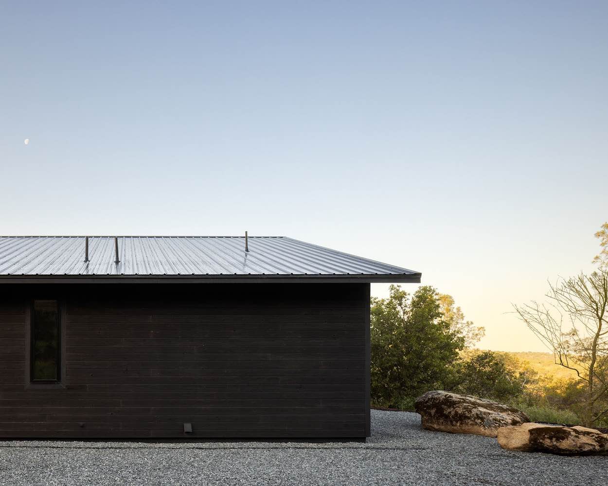Bryła budynku została zaprojektowana w ścisłym dialogu z ukształtowaniem terenu. Nachylenie połaci dachowej odpowiada spadkowi górskiego zbocza, dzięki czemu dom wydaje się naturalnym przedłużeniem krajobrazu. Ta decyzja formalna sprawia, że architektura nie dominuje nad otoczeniem, lecz harmonijnie się w nie wpisuje, podkreślając jego surowe piękno.