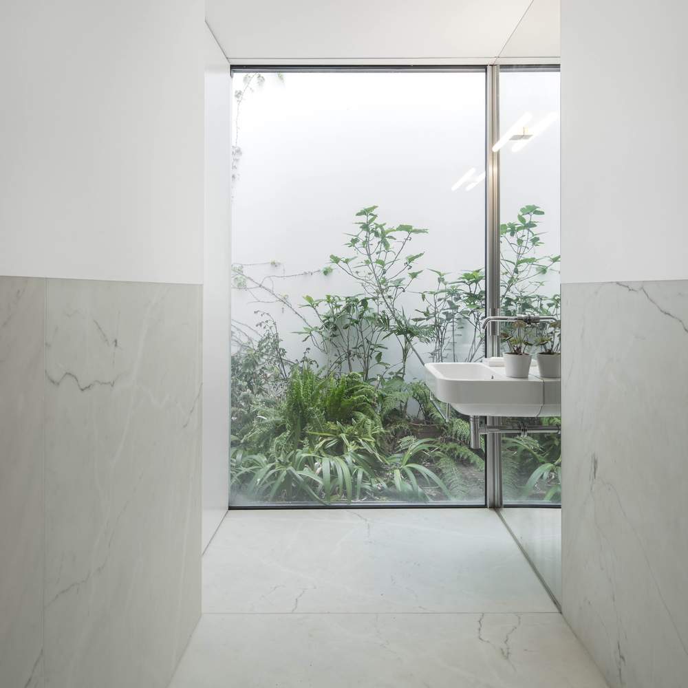 Zachowanie sadu stanowiło kluczowy punkt wyjścia do projektowania nowoczesnej stodoły. Utrzymanie istniejącego budynku oraz kubatury było konieczne, aby zintegrować projekt z otoczeniem. W efekcie dwie elewacje nie posiadają okien, co pozwoliło na zachowanie prywatności w stosunku do sąsiednich działek. Natomiast w zachodniej elewacji, skierowanej w stronę sadu, znajduje się 14-metrowe okno, które łączy wnętrze z naturą. Narożnik domu wypełnia dziedziniec, który wpuszcza światło do najciemniejszych zakamarków.