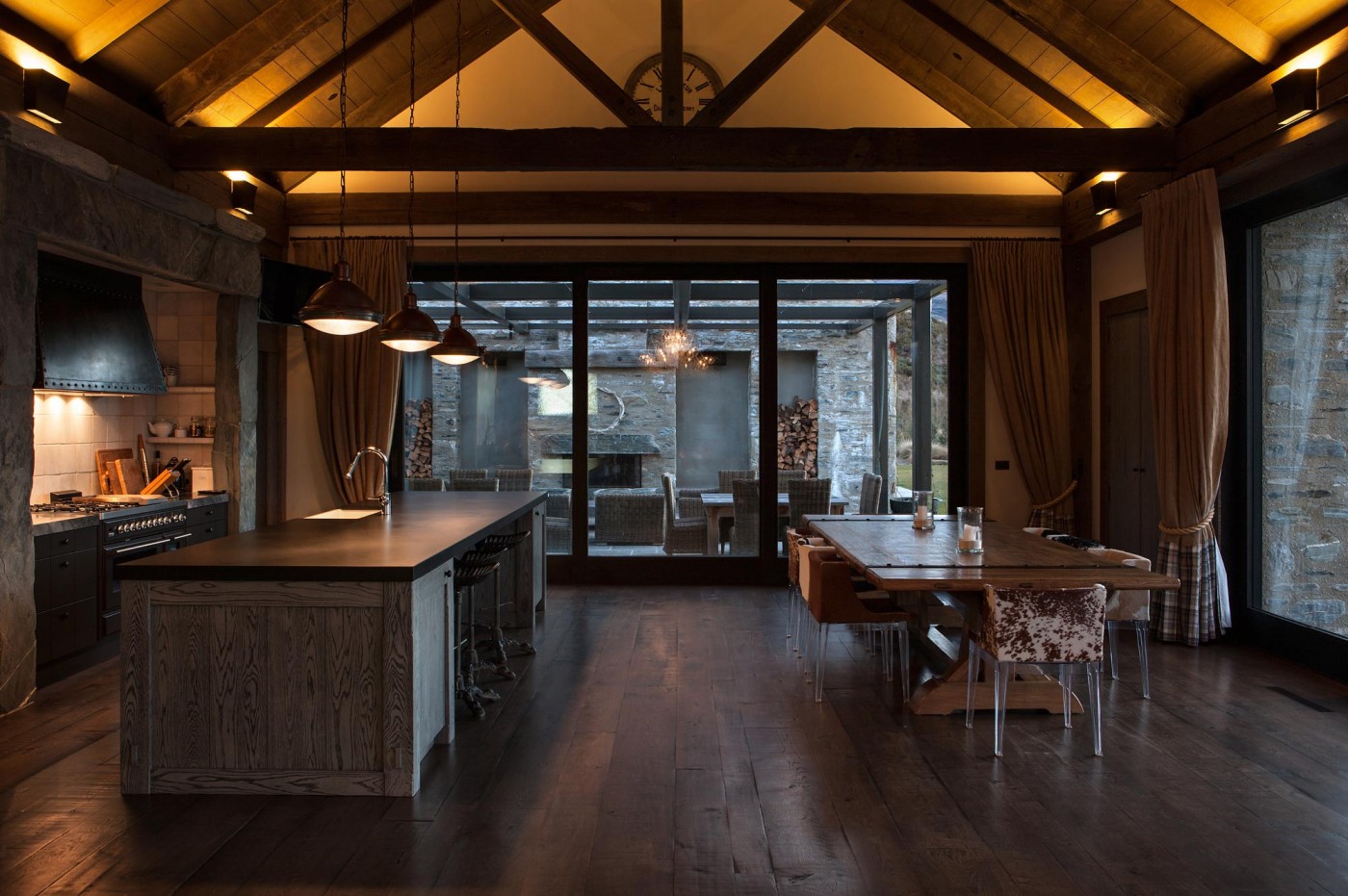 Central Otago House to nowoczesna stodoła zlokalizowana w oszałamiającej, odległej lokalizacji Nowej Zelandii, z zapierającym dech w piersiach widokiem na Alpy Południowe oraz majestatyczny szczyt Mount Aspiring. Ten dom w górach powstał w odpowiedzi na wymagające uwarunkowania przestrzenne oraz szczególny charakter działki. Znaczna część budynku została zagłębiona w ziemię, aby zminimalizować ingerencję w naturalny krajobraz i zapewnić wizualną harmonię z otoczeniem.