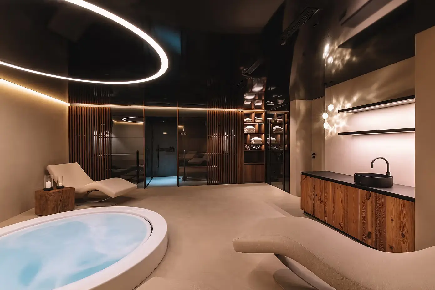 Hotelowe spa z jacuzzi i prywatną sauną to oaza odmłodzenia. Ale na tym luksus się nie kończy. Taras, z którego roztacza się panoramiczny widok na majestatyczny Matterhorn, stanowi wspaniałe tło do relaksu i kontemplacji. W głównej sypialni spokój spotyka się z luksusem. Spokojny wystrój i przemyślane udogodnienia tworzą oazę spokoju. Pokoje dziecięce, tętniące życiem i pomysłowe, oferują przytulne schronienie młodszym gościom, czyniąc Chalet Nirvana rajem na rodzinne wypady.