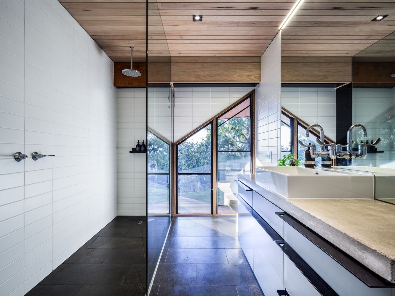 Chamfer House to przebudowa domu z 1977 roku autorstwa Kevina Borlanda, położonego w ogrodzie na australijskim Wzgórzu Oliwiera, z widokiem na zatokę Port Phillip. Projekt zachowuje charakterystyczną drewnianą konstrukcję i wysokie sufity, jednocześnie wprowadzając współczesne elementy, które odpowiadają potrzebom młodej rodziny. Dzięki przemyślanej strategii delikatnego przenikania, dom stał się harmonijną kombinacją historycznej estetyki późnego modernizmu z nowoczesnym designem, tworząc elegancką nowoczesną stodołę pełną naturalnego światła i przestrzeni.