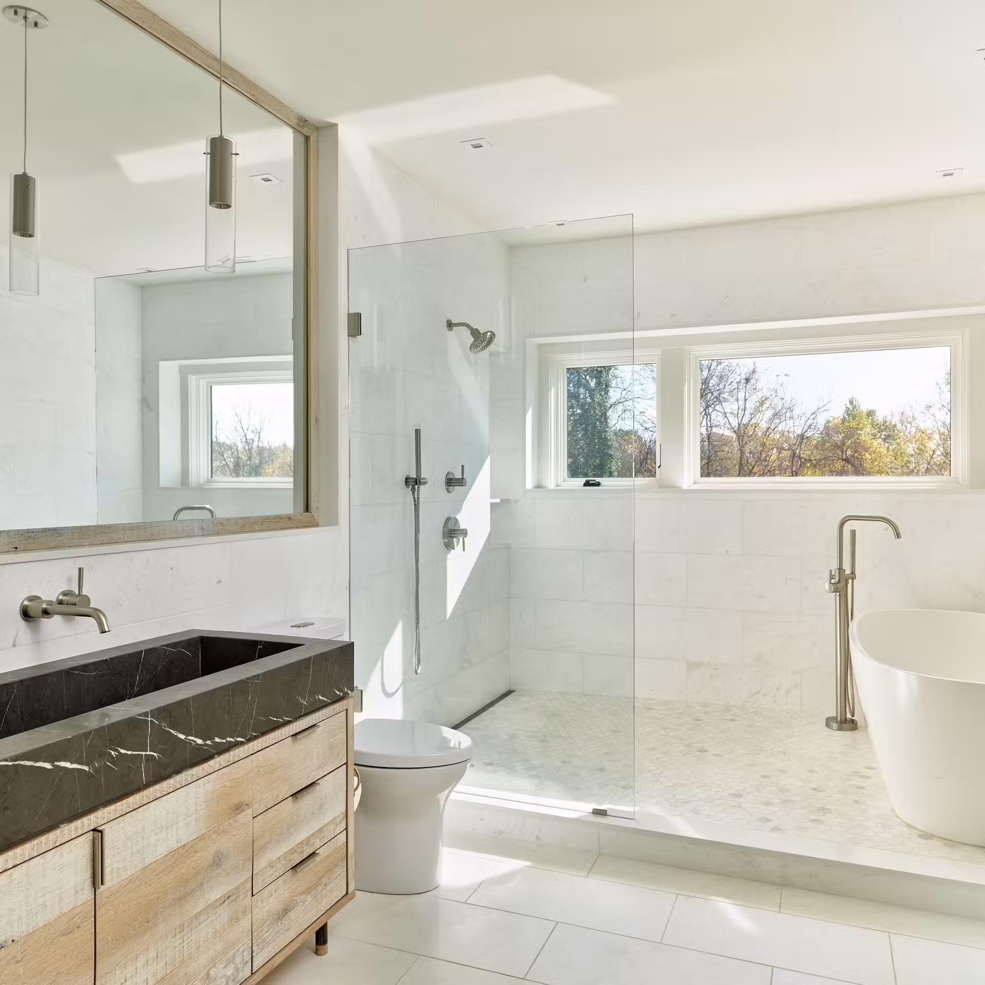 Dom został zaprojektowany tak, aby stopniowo odkrywać piękno krajobrazu. Od strony wejścia dominują niewielkie, rytmiczne otwory okienne, które zapewniają intymność. Dopiero we wnętrzu ukazują się duże przeszklenia i drzwi tarasowe, otwierające dom na widoki łąk i doliny Brandywine. Dzięki temu mieszkańcy doświadczają otoczenia w rytmie zaplanowanej sekwencji przestrzeni.