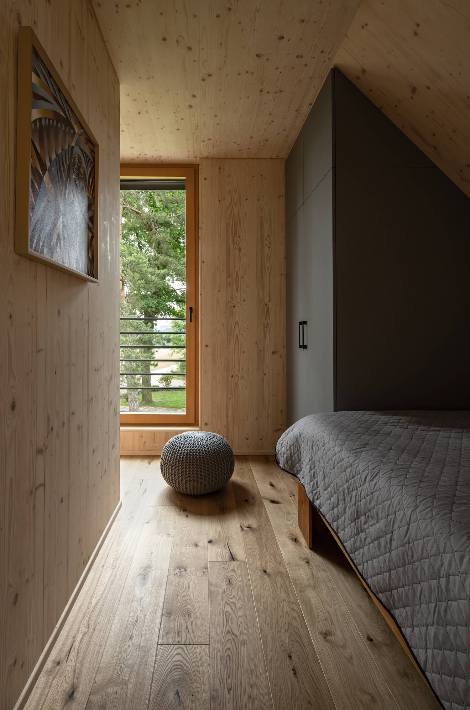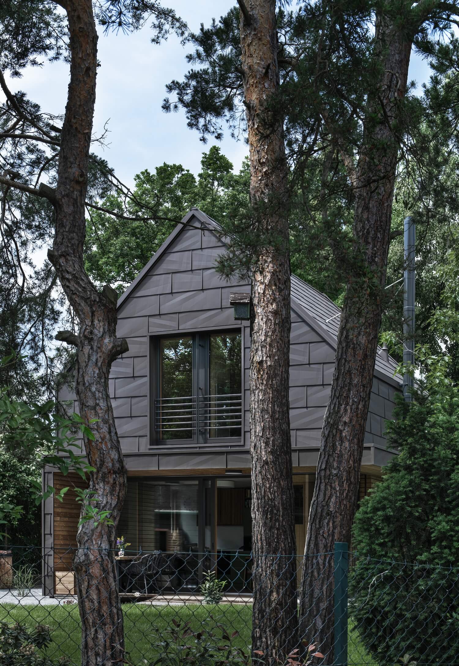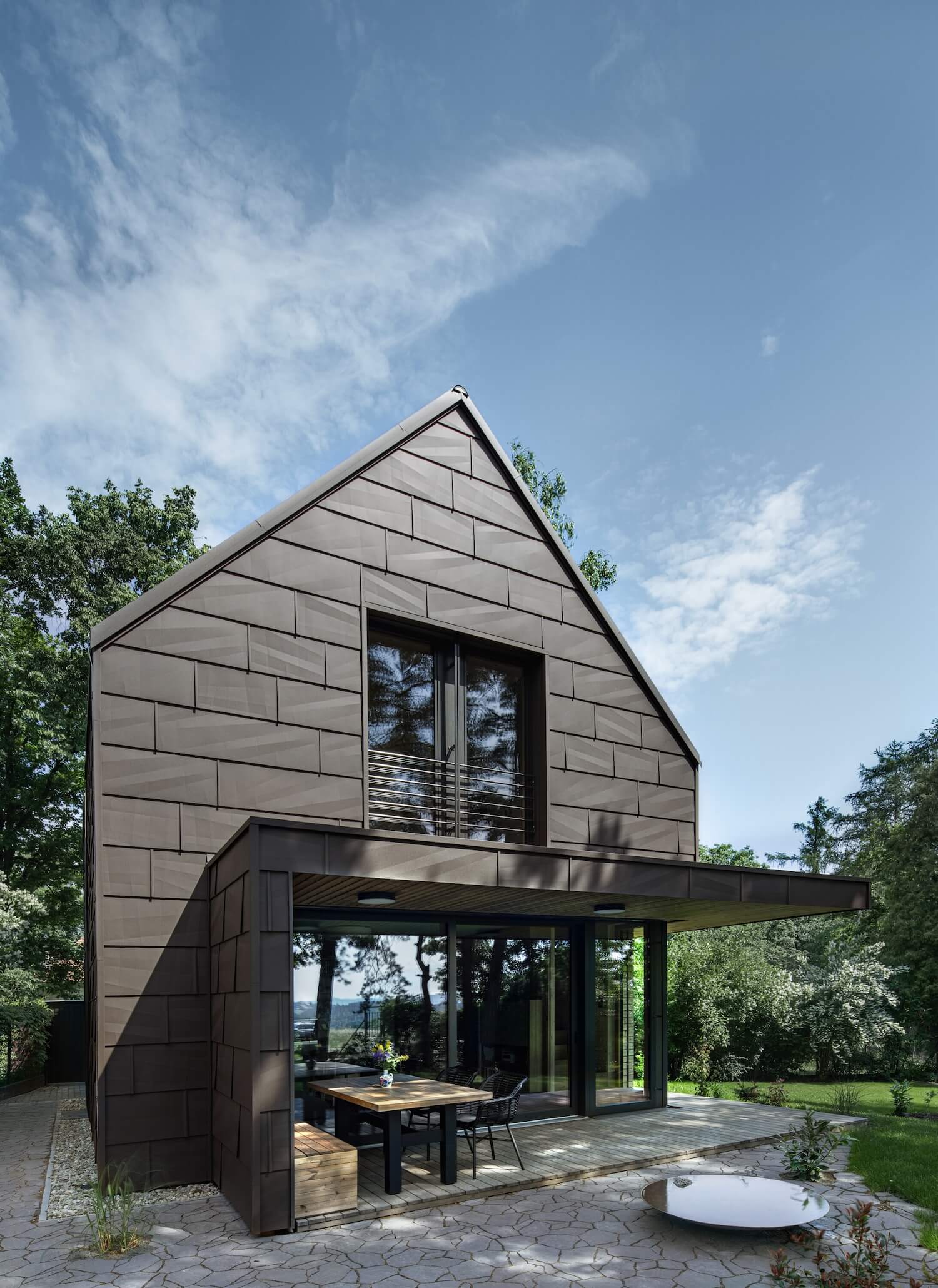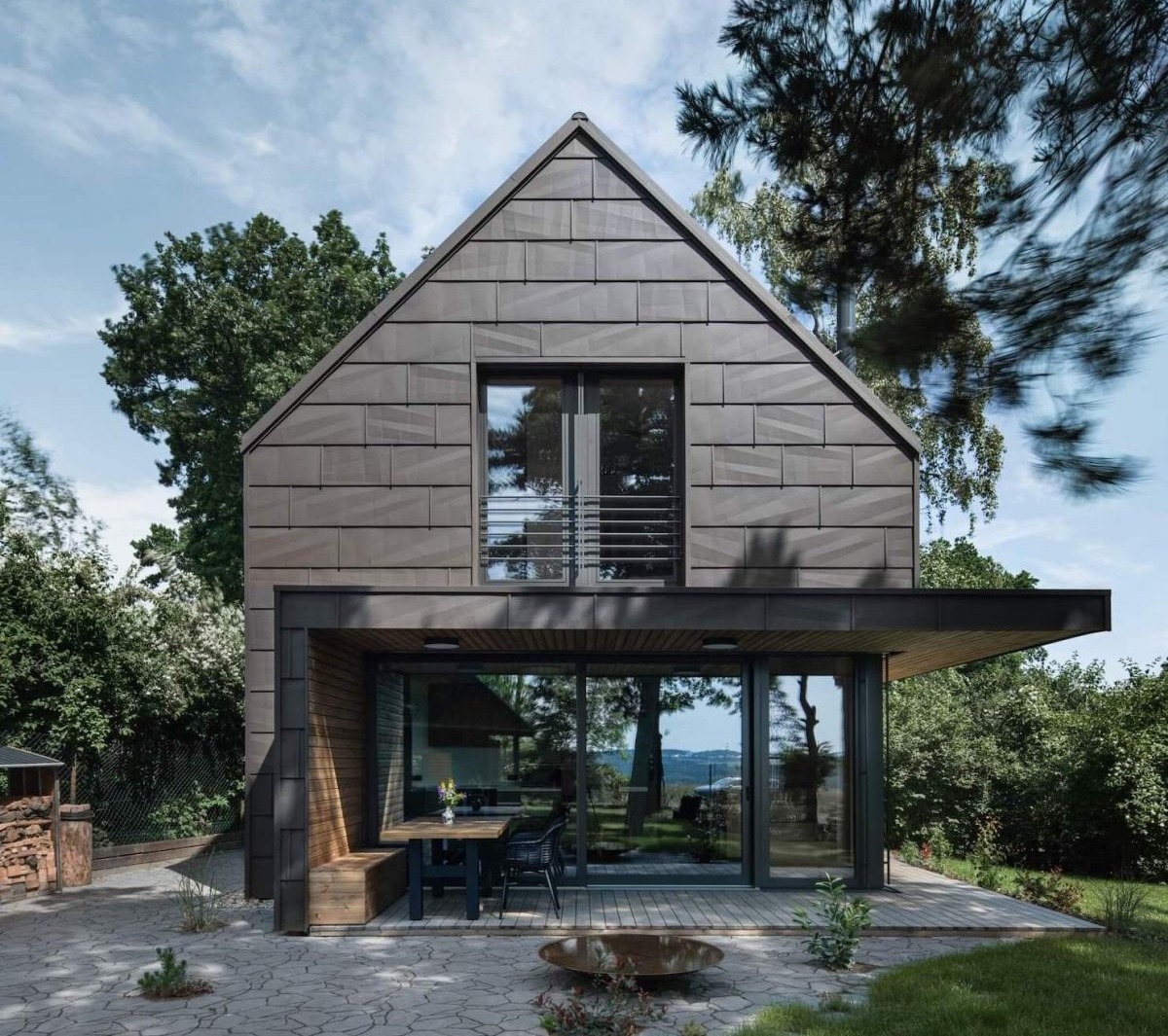 Wiosną 2020 roku do jednej z czeskich pracowni architektonicznych zgłosiła się para marząca o własnym azylu – niewielkim domu wakacyjnym, który pozwoli im oderwać się od zgiełku codzienności i cieszyć się spokojem, jaki daje natura. Ich wizją był skromny, ale wyjątkowy dom, harmonijnie wpisany w otaczający krajobraz, z dala od miasta, z widokiem na wysokie, majestatyczne drzewa iglaste. Lokalizacja, którą wybrali, miała wyjątkowy klimat – intymna, cicha i otoczona przyrodą, od razu zainspirowała architektów.