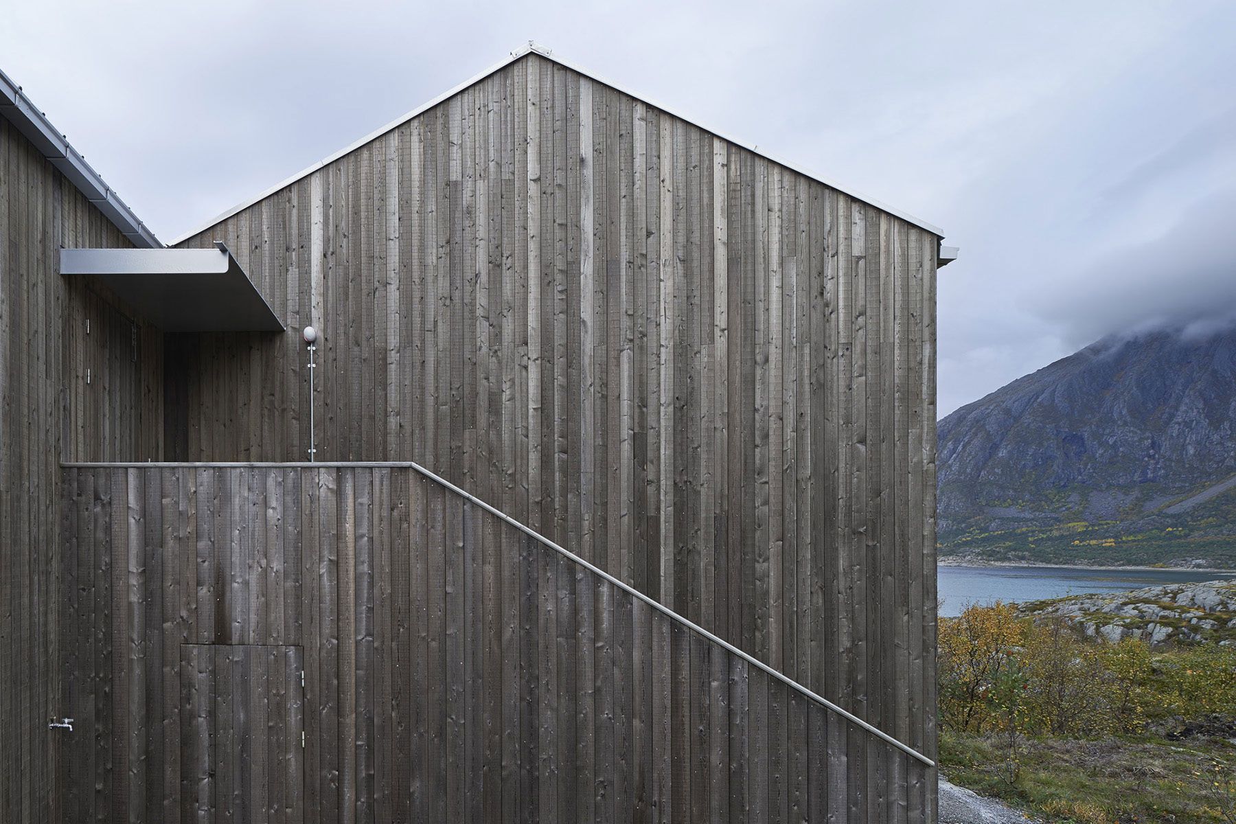 Miejsce wyróżnia wspaniały i trudny krajobraz typowy dla północy, okraszony pięknymi panoramami Morza Norweskiego i postrzępionych szczytów górskich. W pobliżu tego miejsca, blisko brzegu oceanu, znajduje się grupa tradycyjnych chat nadmorskich, zwanych po norwesku „Naust”, które swą formą i zastosowanymi do budowy materiałami odzwierciedlają wiele lat doświadczenia związanego z budowaniem w tych trudnych warunkach. Chata krańcowa chroni te, które znajdują się za nią – chatki ułożone pod dziwnym kątem, częściowo ze względu na topografię, a częściowo przez przypadek.Bezokienny front budynku wykonany jest z prostego i solidnego drewna. "Wierzymy bowiem, że najlepsze budynki wywołują skojarzenia z życiem codziennym, zachowując przy tym charakter ciekawy, sugestywny i zdecydowany. Chcieliśmy stworzyć nowoczesny „Naust”, który będzie miał wyróżniający się charakter i cechy miejscowej architektury" mówią architekci.