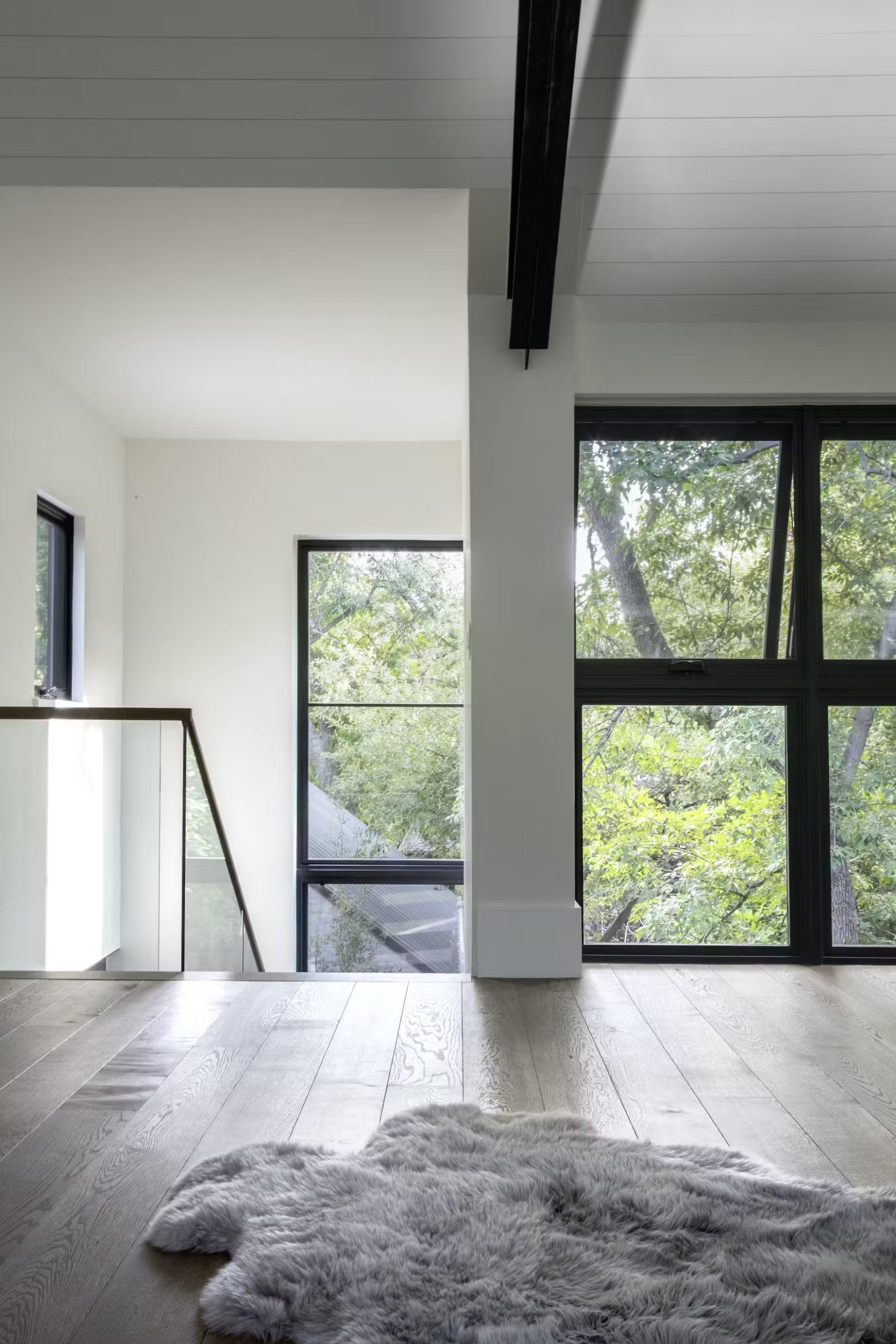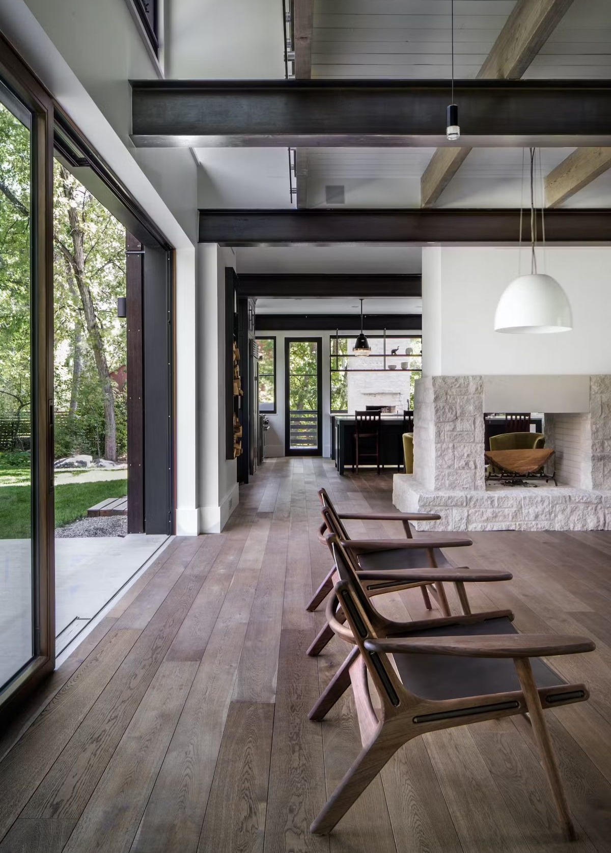 Wnętrze Chickadee zostało zaprojektowane w sposób funkcjonalny, co sprawia, że jest to idealne miejsce dla rodziny. Struktura domu łączy główną sypialnię z sypialniami dzieci na piętrze, tworząc wygodną przestrzeń do wspólnego życia. Naturalne materiały, takie jak drewno i szkło, a także prosta koncepcja wnętrza, sprawiają, że Chickadee to nowoczesna stodoła, która nie tylko jest energooszczędna, ale także spełnia oczekiwania wymagających rodzin.