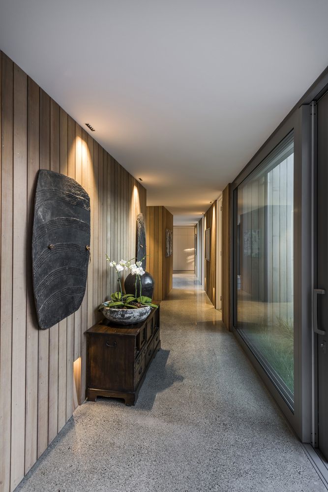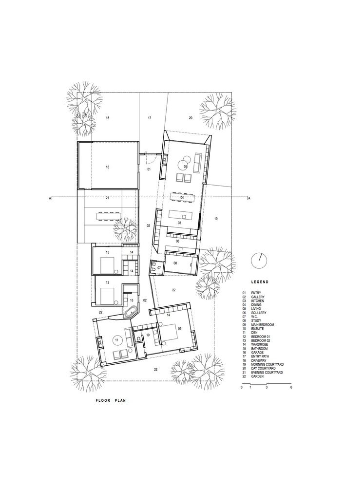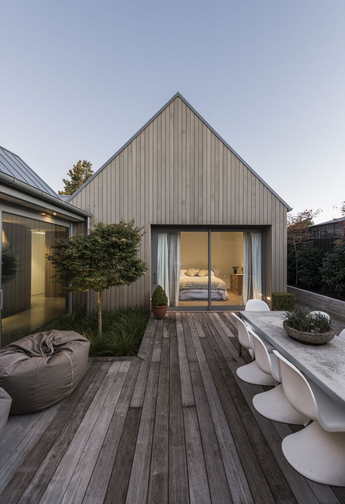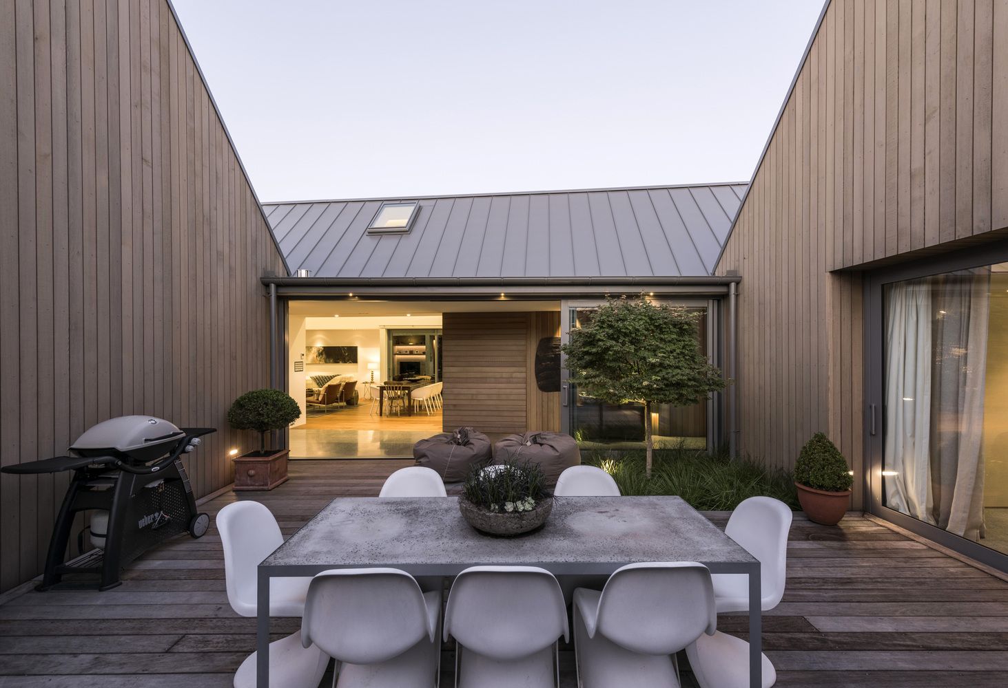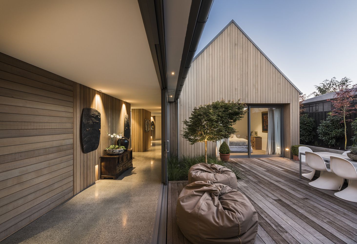 Analizując historię miasta Christchurch, odkryto, że jest ona mocno zakorzeniona w rolnictwie. Postanowiono zatem zaprojektować miejską wersję typowego angielskiego domu z dwuspadowym dachem, jaki kojarzymy z zabudowaniami rolniczymi. Dom składa się z czterech połączonych ze sobą budynków, które tworzą serię przestrzeni z dziedzińcami pomiędzy poszczególnymi budynkami. Każdy z tych czterech „pawilonów” łączy się z kolejnym budynkiem przeszklonym przejściem o płaskim dachu. Miejsca te są pełne światła i otwarte na widoki.