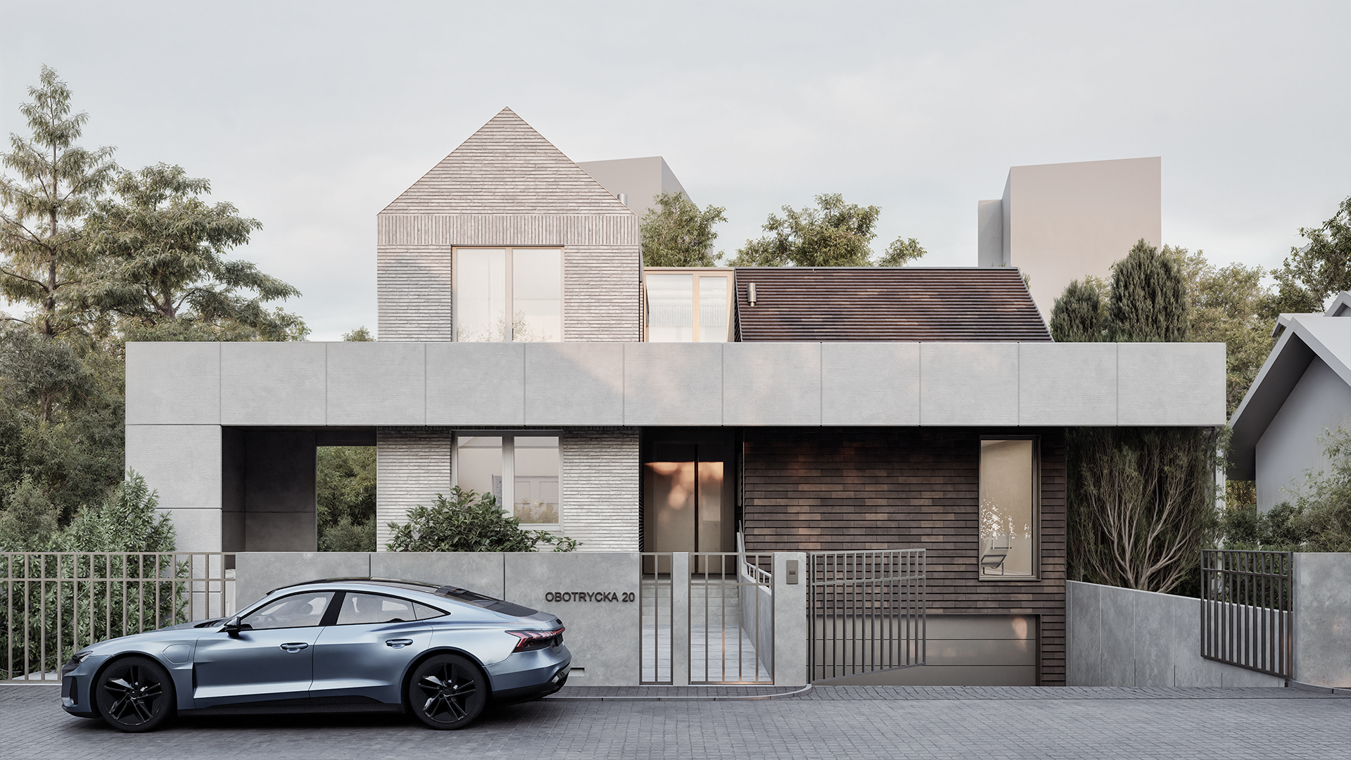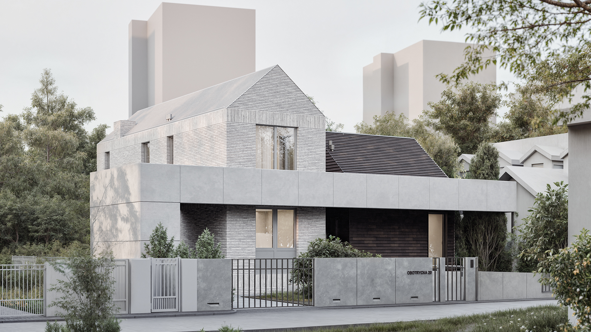 Całość wpisuje się w kameralny kontekst Oliwy, zajmując 270 m² powierzchni zabudowy na działce o wielkości 509 m².