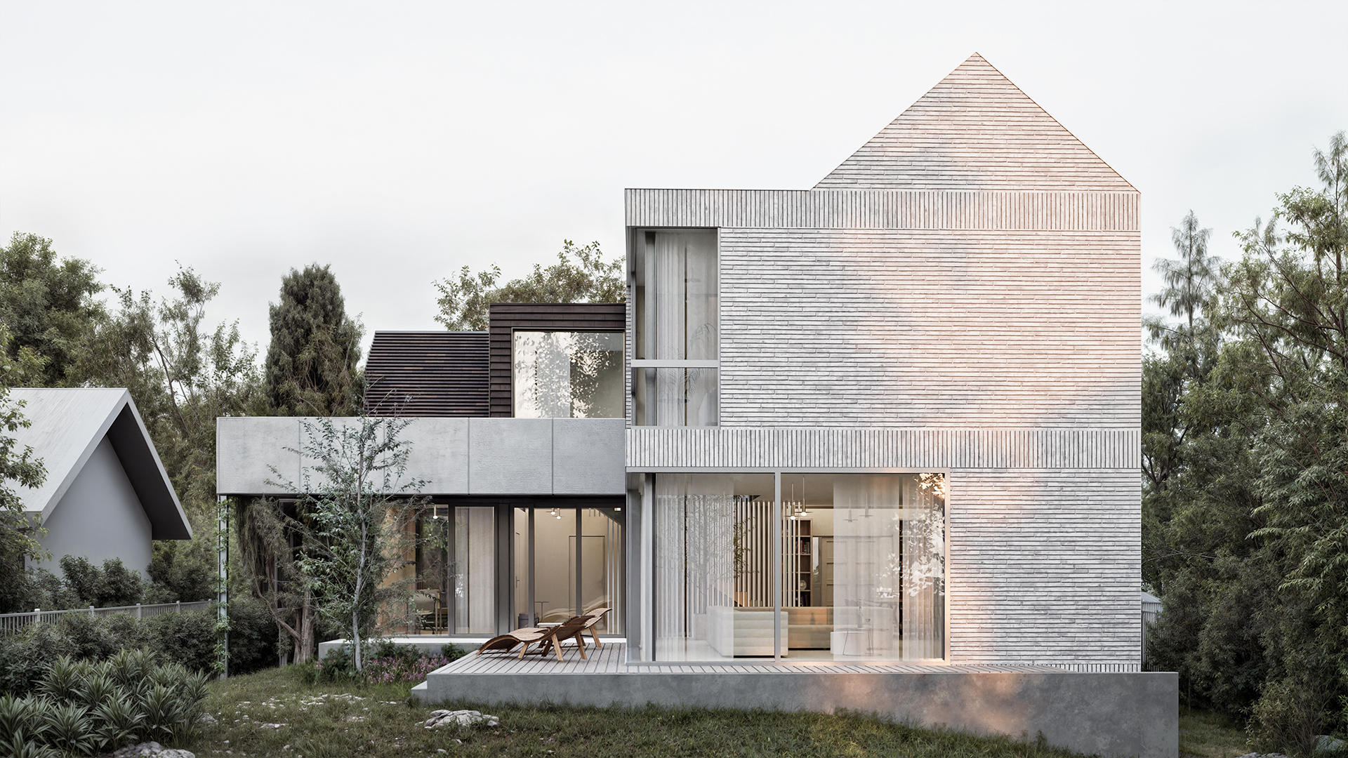 Architektura reaguje na te zmienne poprzez strukturę bryły, która nie tylko dostosowuje się do kontekstu, ale sama staje się jego częścią – filtruje światło, kadruje widoki i współtworzy relacje przestrzenne.