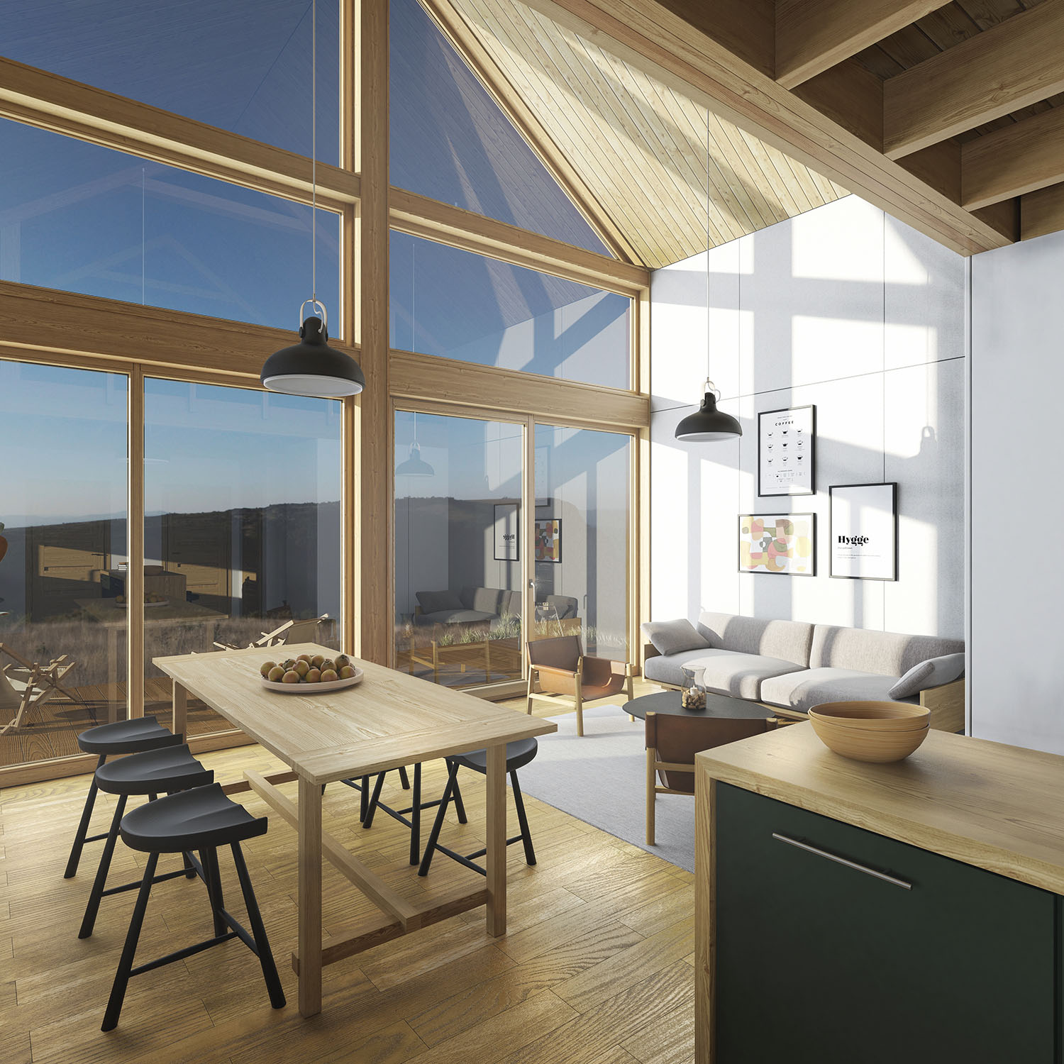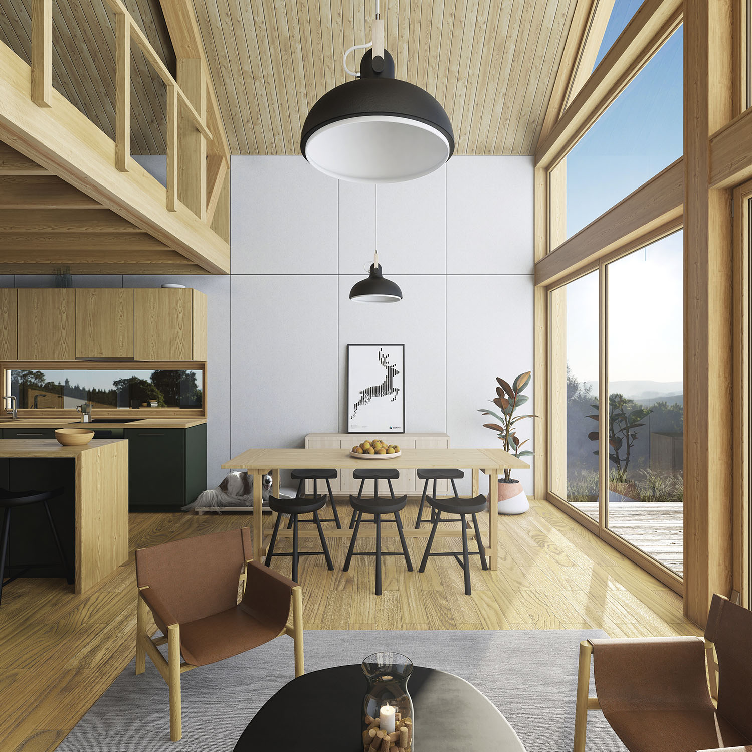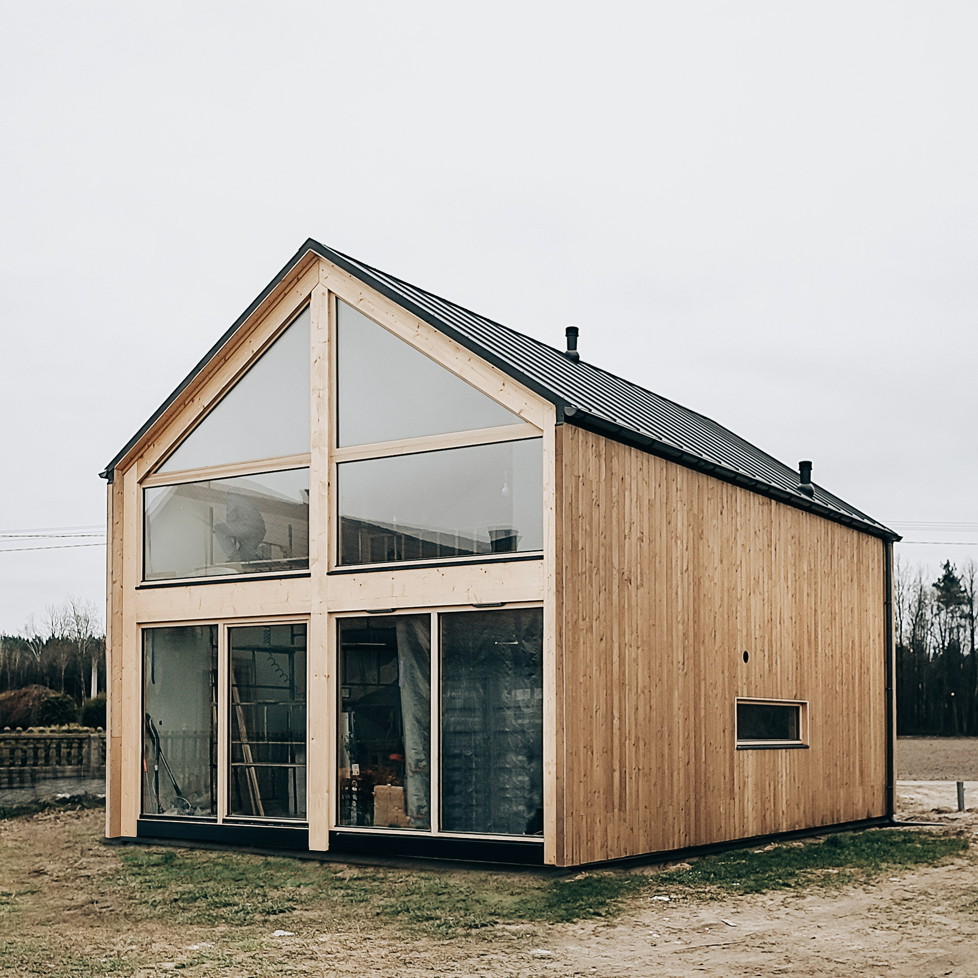 Hauk to przytulny azyl do pracy, odpoczynku i życia w rytmie slow. Elegancką bryłę z w stylu nowoczesnej stodoły charakteryzuje prostota i duże przeszklenia – naturalnie wpisujące się w otoczenie i doświetlające wnętrza. Skandynawska estetyka spotyka się z funkcjonalnością, a każde rozwiązanie – od konstrukcji po ogrzewanie – wspiera ideę komfortu bez nadmiaru sprzętów.